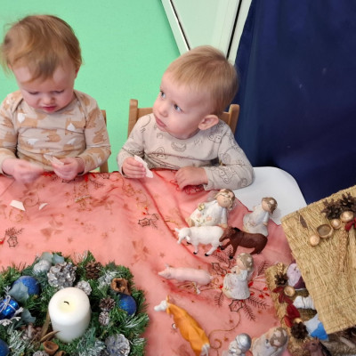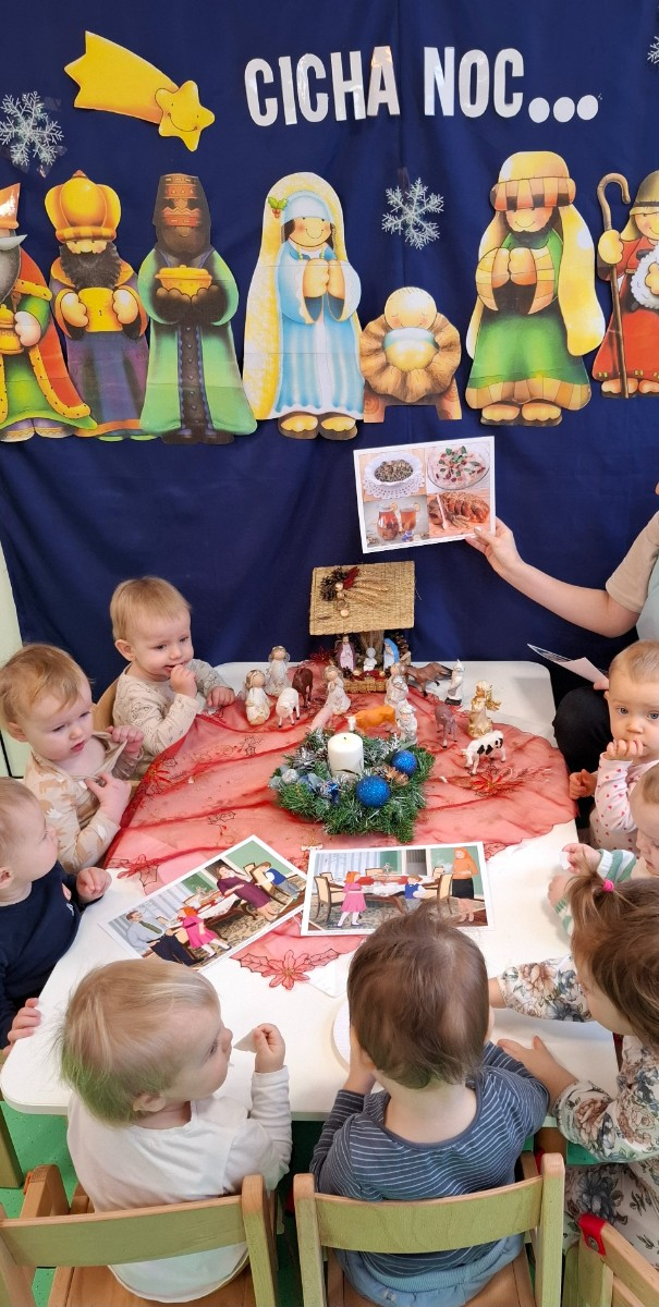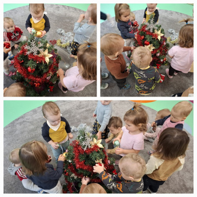 Zbliżające się Święta Bożego Narodzenia to wyjątkowy czas w którym oczekujemy na narodziny Jezusa. W ramach przygotowań do tych świąt dzieci z naszej grupy pomagały w ubieraniu choinki oraz poznały zwyczaje oraz tradycje świąteczne tj. ubieranie choinki , wspólna wigilia , śpiewanie kolęd itp. Podczas tych przygotowań nasze maluszki wspólnie kolędowały śpiewając kolędy oraz pastorałki oraz grały na instrumentach muzycznych.