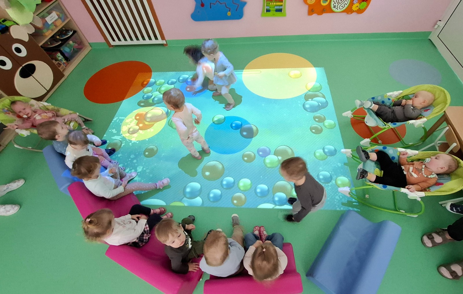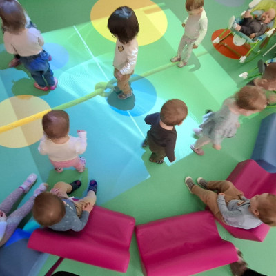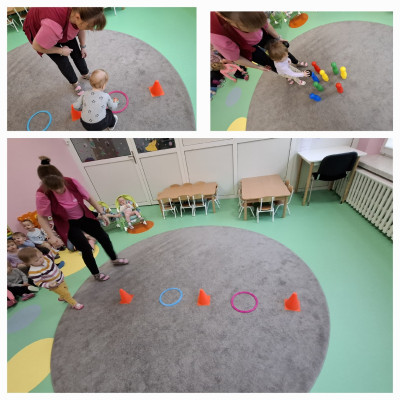 Zdjęcie przedstawia dzieci biorące udział w zajęciach ruchowych.