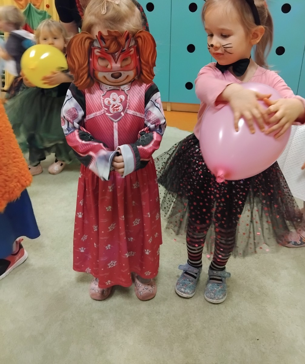 Zdjęcie przedstawia dzieci bawiące się na balu karnawałowym