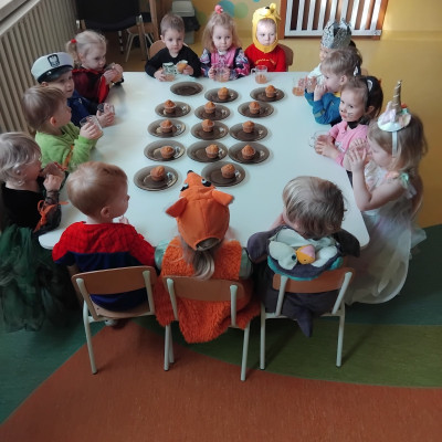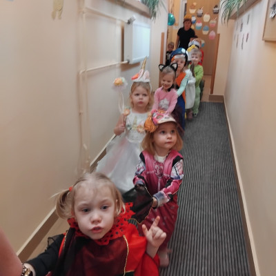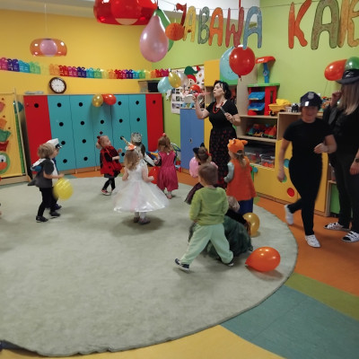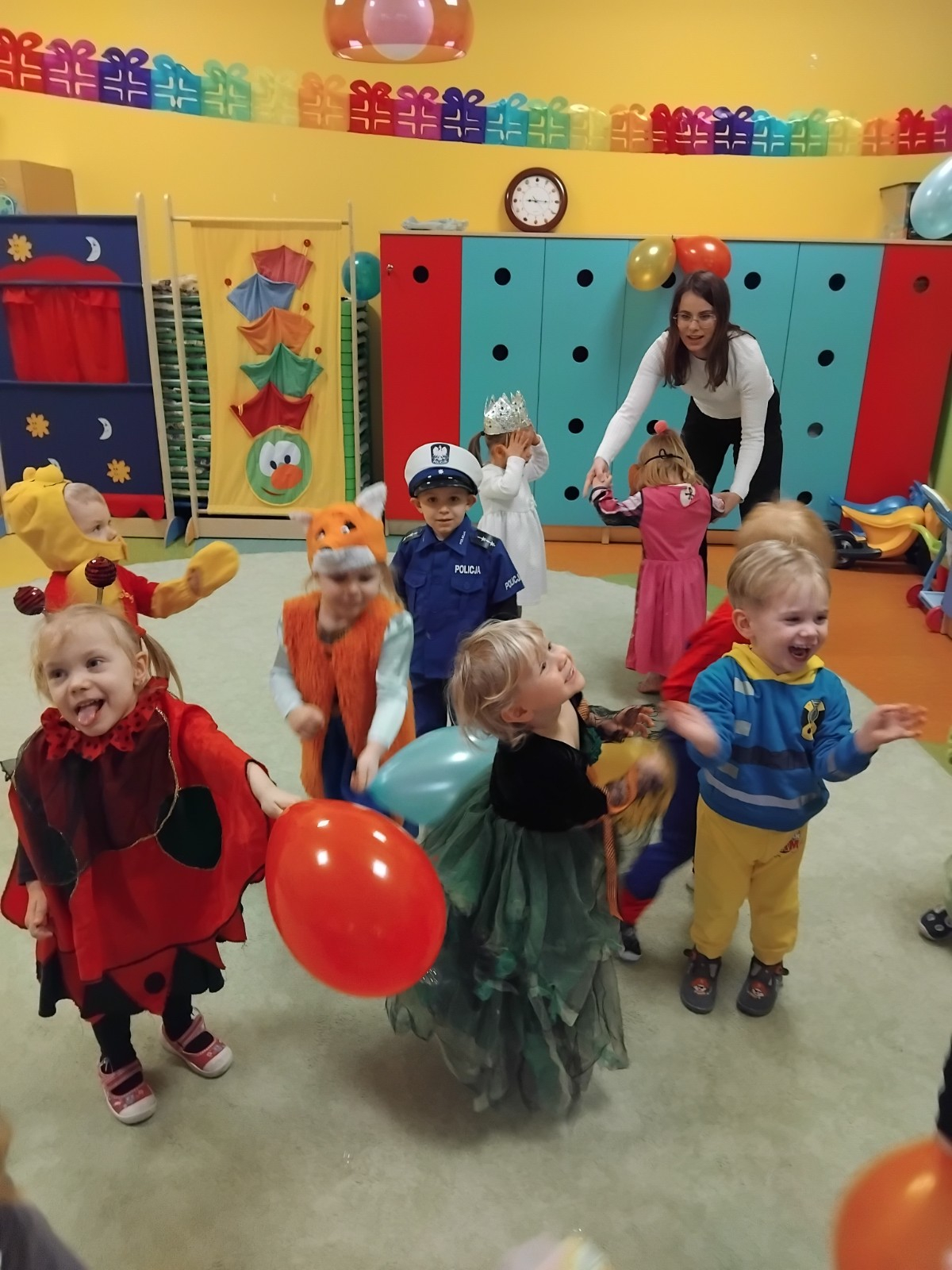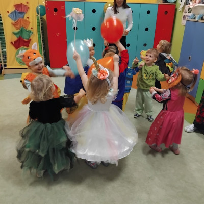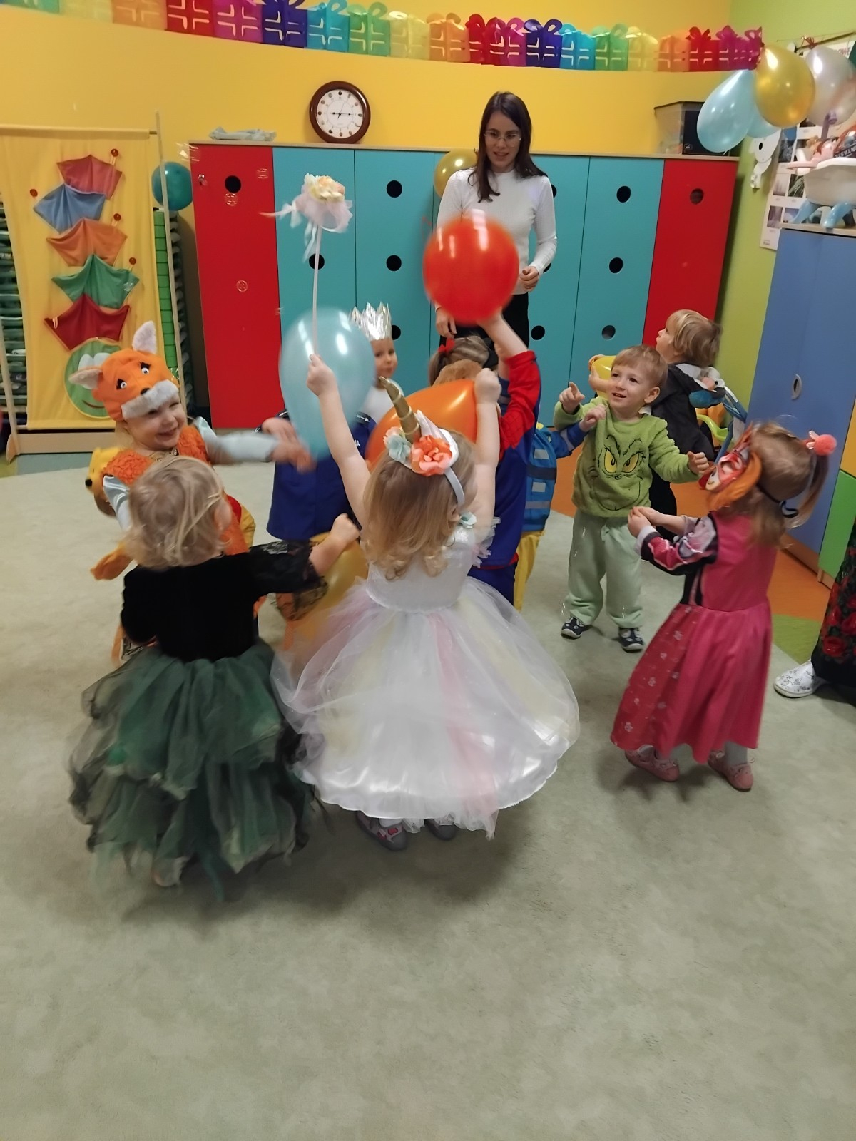 24 stycznia 2025 roku w naszym żłobku odbył się Bal Karnawałowy. Nasze Rybki już od rana z dumą prezentowały karnawałowe stroje. Dzieci przebrane były za wróżki, księżniczki,motylki,policjantów strażaków oraz inne bajkowe postacie. Przebierańcy świetnie się bawili z ochotą uczestnicząc w różnych konkurencjach między innymi: tańca w parach z balonem, tańca na gazecie oraz w konkursie z krzesełkami. W czasie przerwy na odpoczynek na dzieci czekał pyszny poczęstunek. Na koniec zabawy uczestnicy wybrali króla i królową balu. Dzieci bawiły się doskonale a wystrój sali i wesoła muzyka zachęcały do tańca. Na twarzach naszych Rybek malował się uśmiech, który nie znikał pomimo zmęczenia. Wszyscy bawili się wspaniałe. Ach, cóż to był za bal!!!