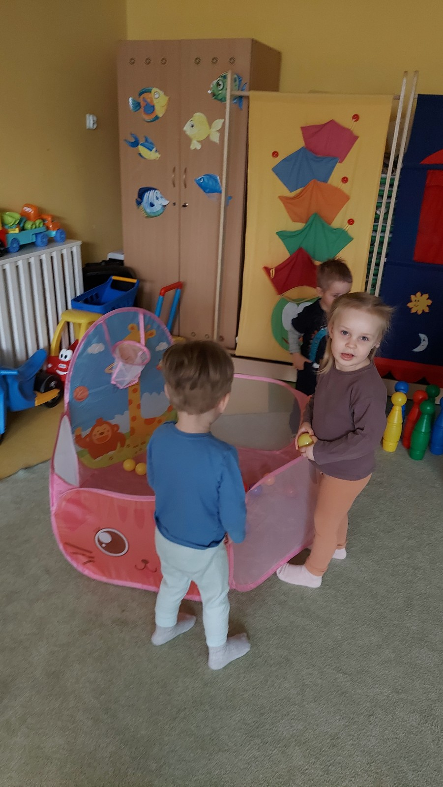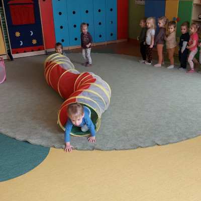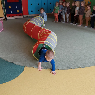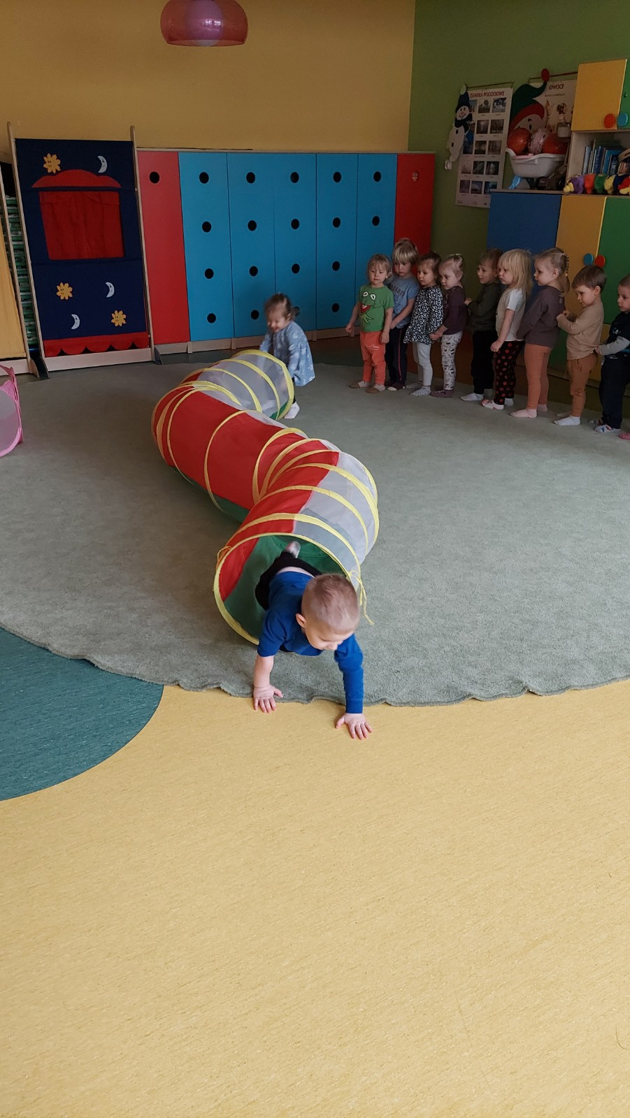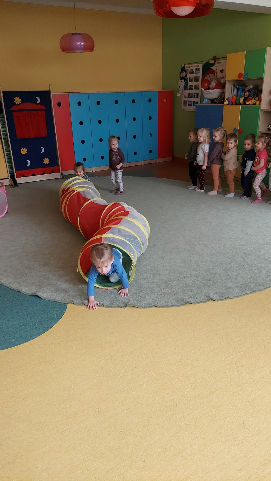 Ruch jest ważnym elementem rozwoju małego dziecka. Dlatego dzieci z grupy Rybki dzielnie pokonywały kolejne etapy toru przeszkód, który miał na celu rozwijać motorykę dużą, koordynację ruchową, wspierać ich zdrowie i sprawność fizyczną. Podczas zajęć było dużo zabawy a, na twarzach naszych rybek malował się uśmiech I nutka rywalizacji. Dzieci zdobywały nowe umiejętności w naturalny i radosny sposób. Była to najlepsza forma nauki oraz zabawy.