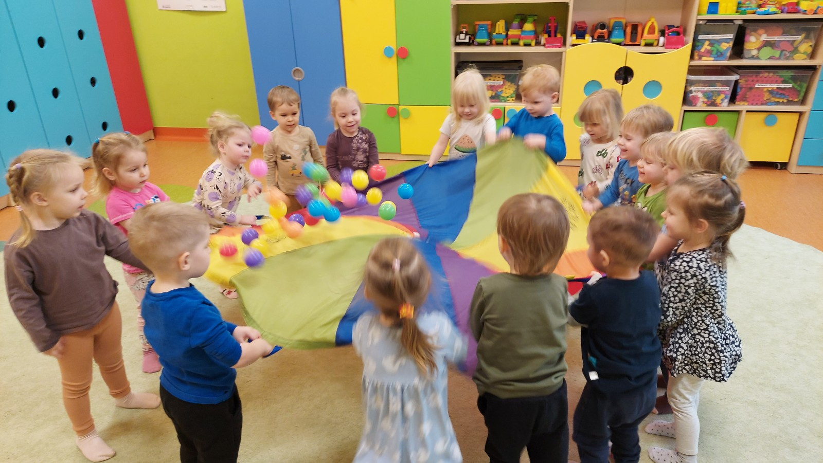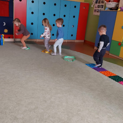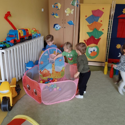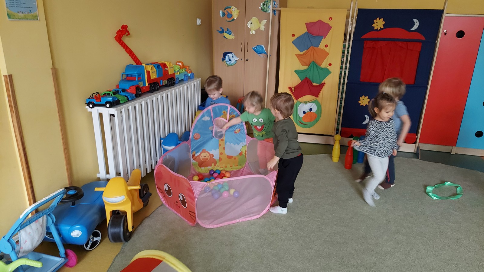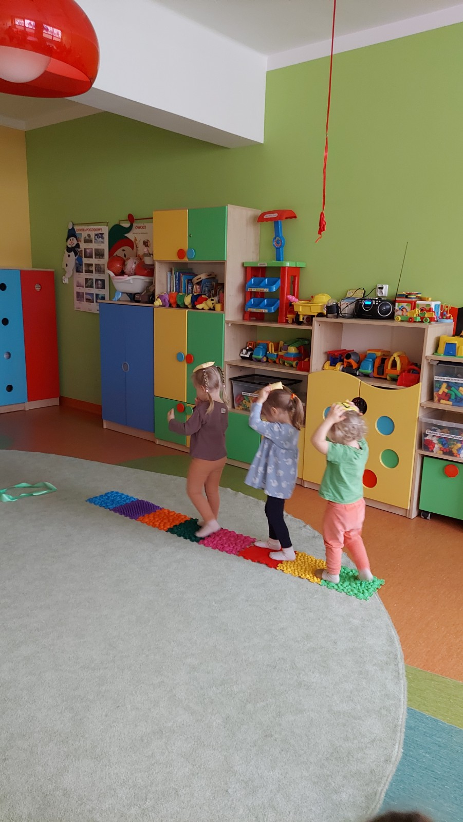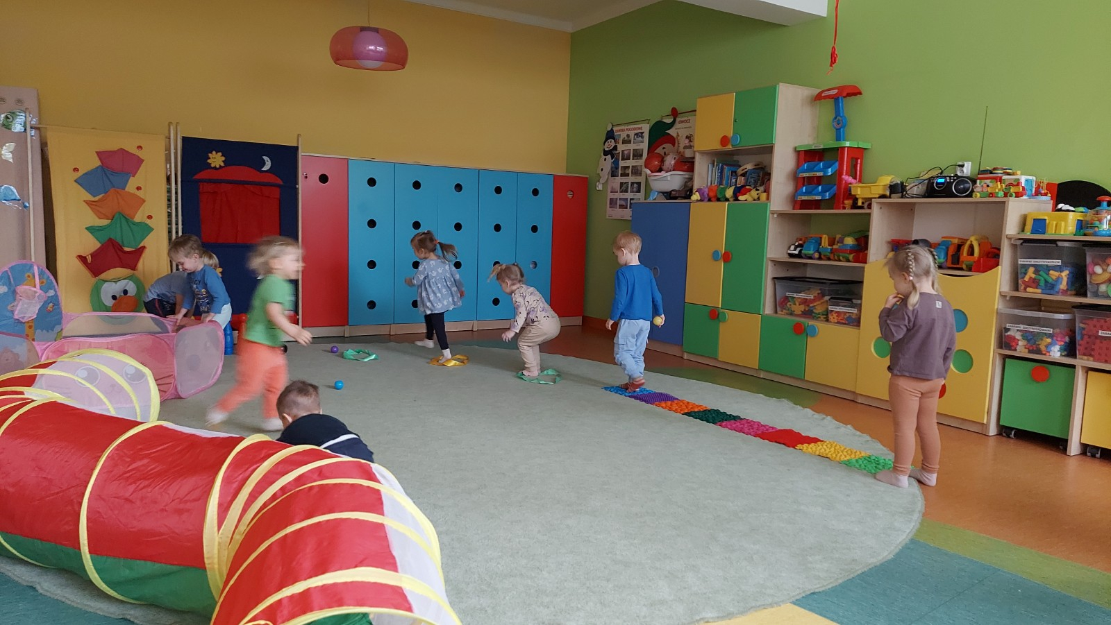 Ruch jest ważnym elementem rozwoju małego dziecka. Dlatego dzieci z grupy Rybki dzielnie pokonywały kolejne etapy toru przeszkód, który miał na celu rozwijać motorykę dużą, koordynację ruchową, wspierać ich zdrowie i sprawność fizyczną. Podczas zajęć było dużo zabawy a, na twarzach naszych rybek malował się uśmiech I nutka rywalizacji. Dzieci zdobywały nowe umiejętności w naturalny i radosny sposób. Była to najlepsza forma nauki oraz zabawy.