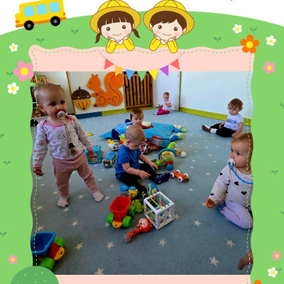 Zdjęcia przedstawiają dzieci podczas adaptacji w żłobku