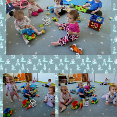 Choć jesteśmy w żłobku najmniejsi to jesteśmy najdzielniejsi i odważnie wkroczyliśmy w nasz nowy świat, a czas nam mija teraz radośnie i wesoło.