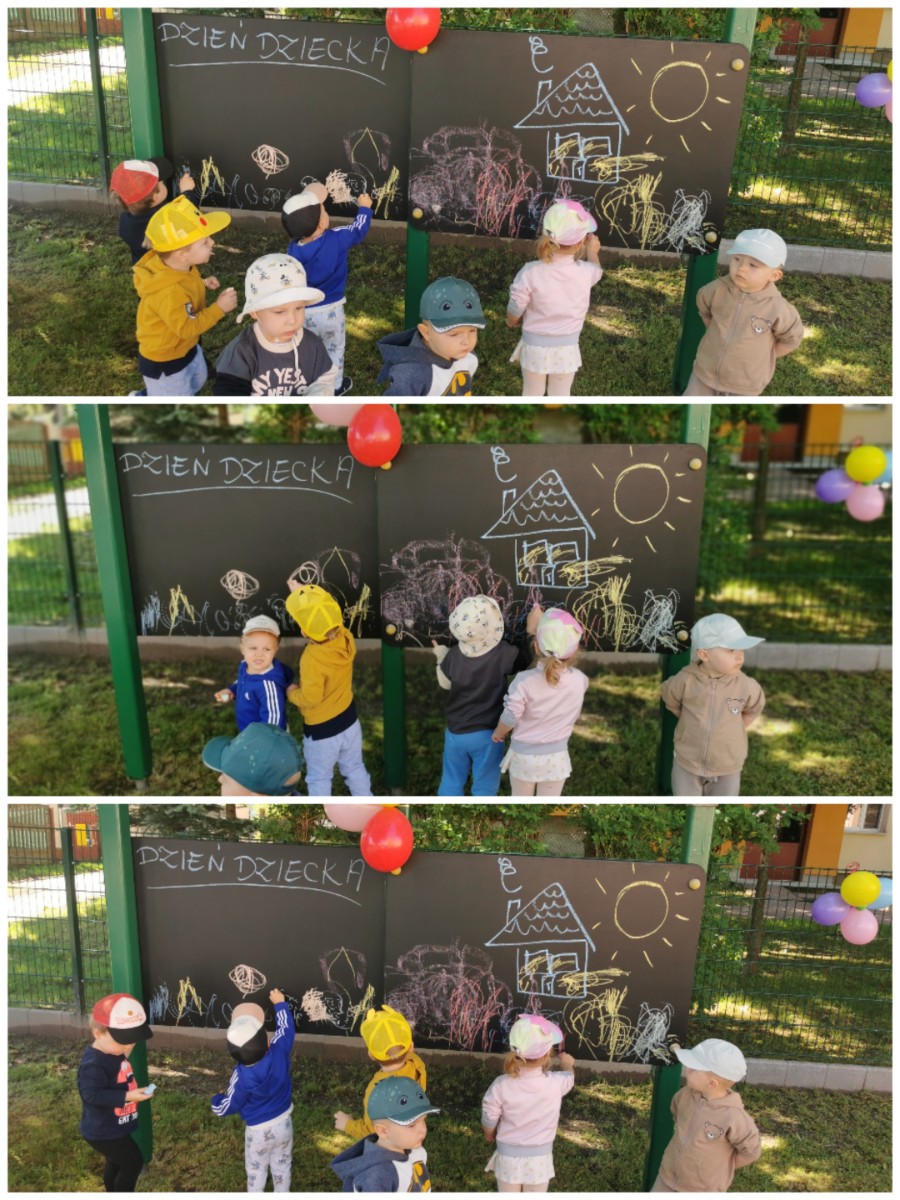 CZdjęcie przedstawia dzieci świętujące Dzień Dziecka.
