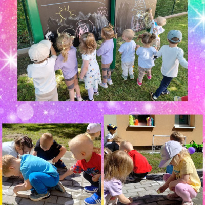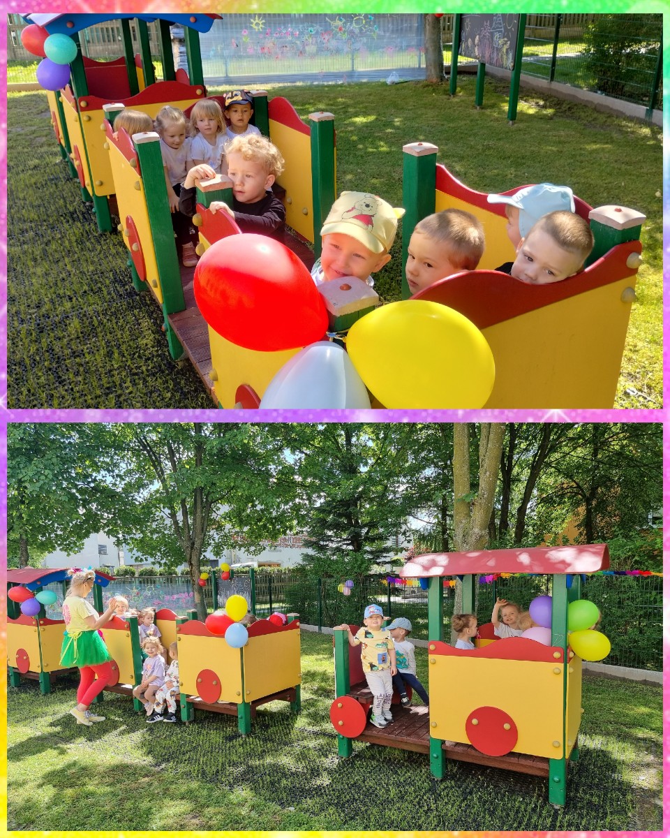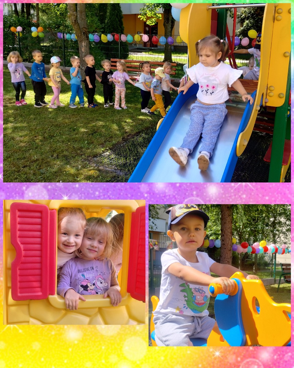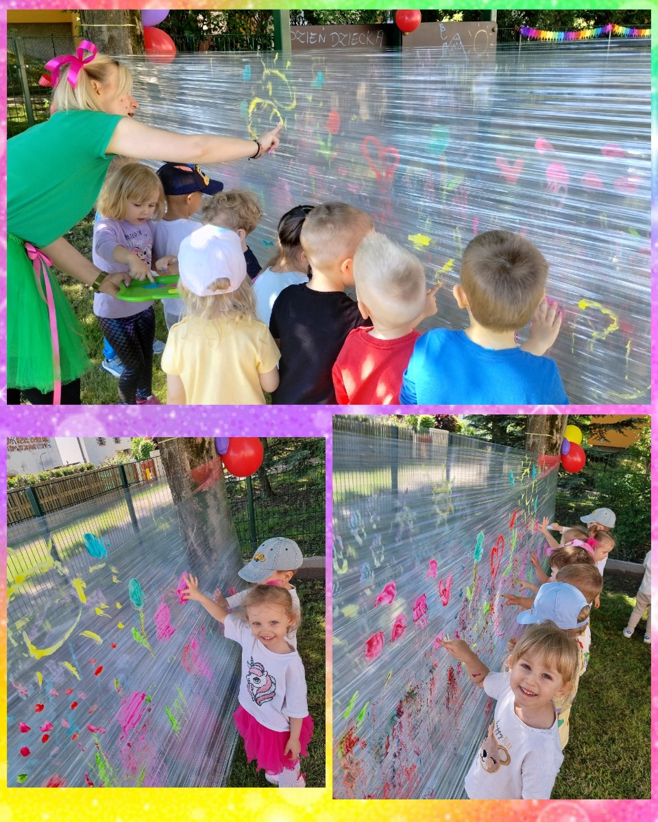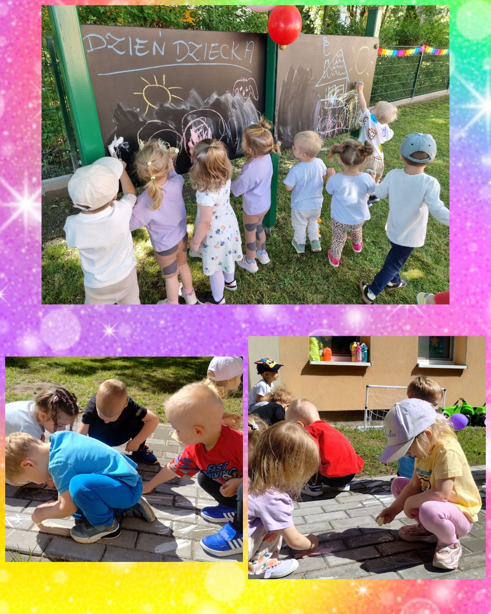 Zdjęcia przedstawiają dzieci świętujące Dzień Dziecka.