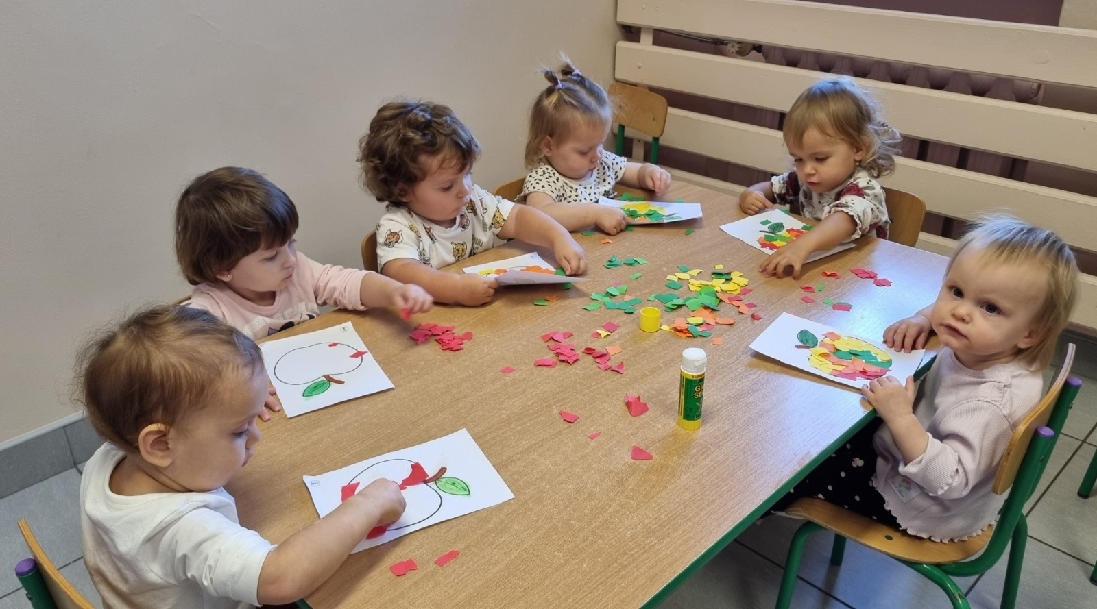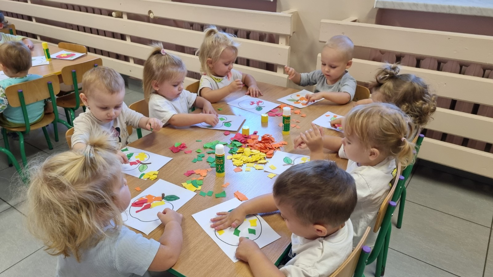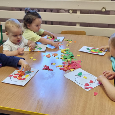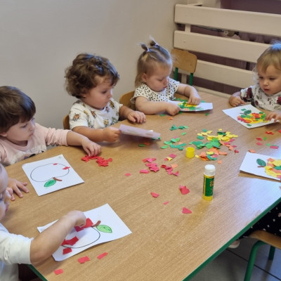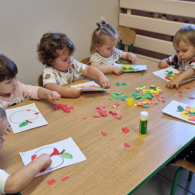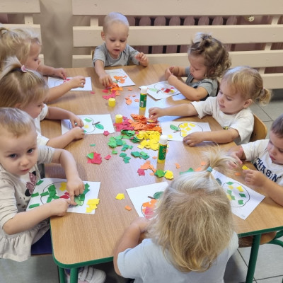 Zdjecia przedstawiają dzieci wykonujące prace plastyczne