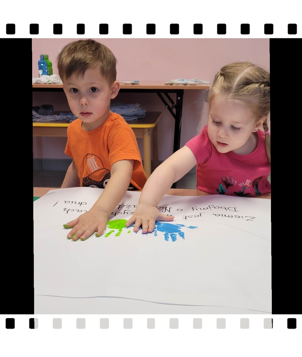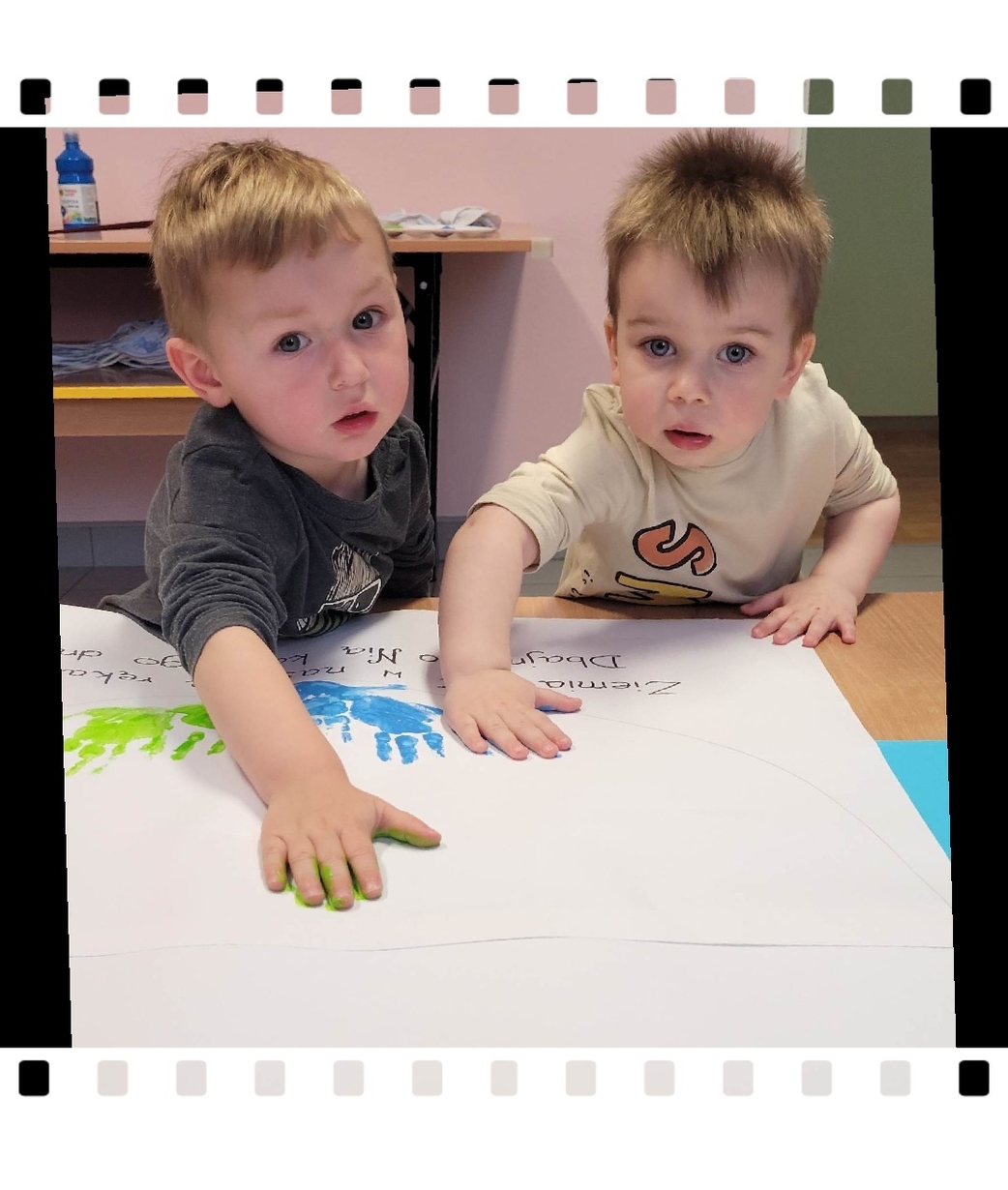 22 kwietnia obchodzony jest Dzień Ziemi i nasze małe Biedroneczki również zechciały uczcić to święto. Z tej okazji wykonaliśmy wspólnie plakat przedstawiający naszą Planetę, głoszący, że jej los leży w naszych rękach. To od nas zależy czy Nasza Planeta będzie czysta i zadbana, czy zanieczyszczona. Dzieci odbijały na plakacie kolorowymi farbami swoje rączki co symbolizowało fakt, że Ziemia jest w naszych rękach. Dbajmy o dobro Ziemi a co za tym idzie nasze wspólne.