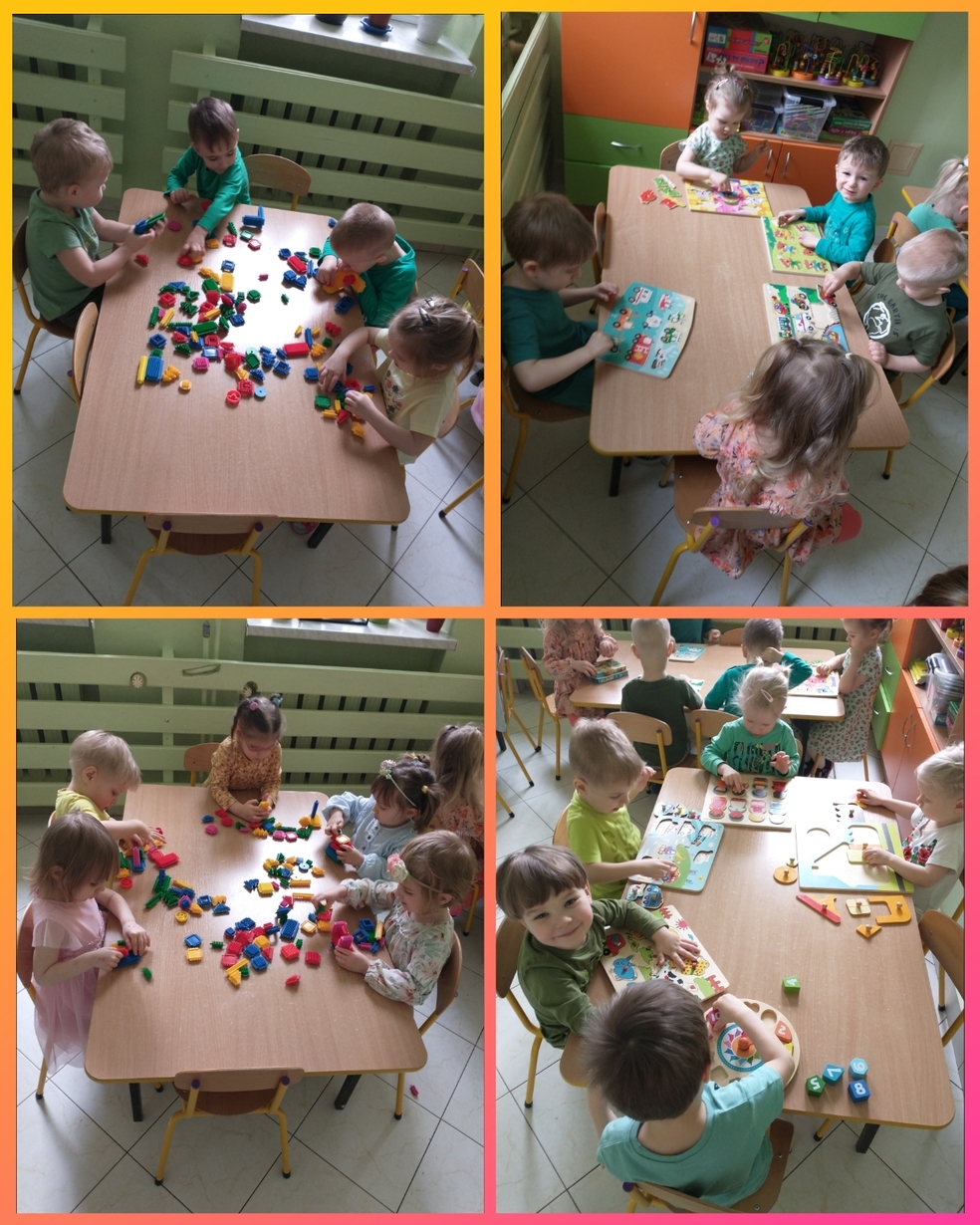 Nasi podopieczni ćwiczyli również koordynację ręka-oko, dopasowując otrzymane elementy układanek do pustych miejsc które po nich zostały.