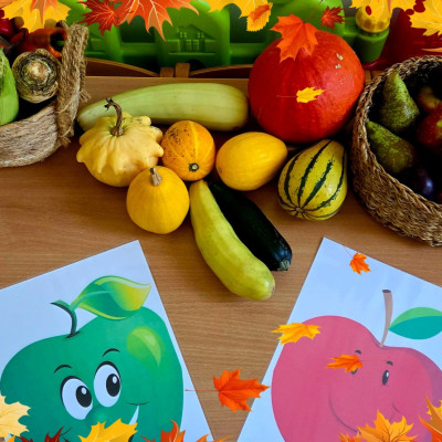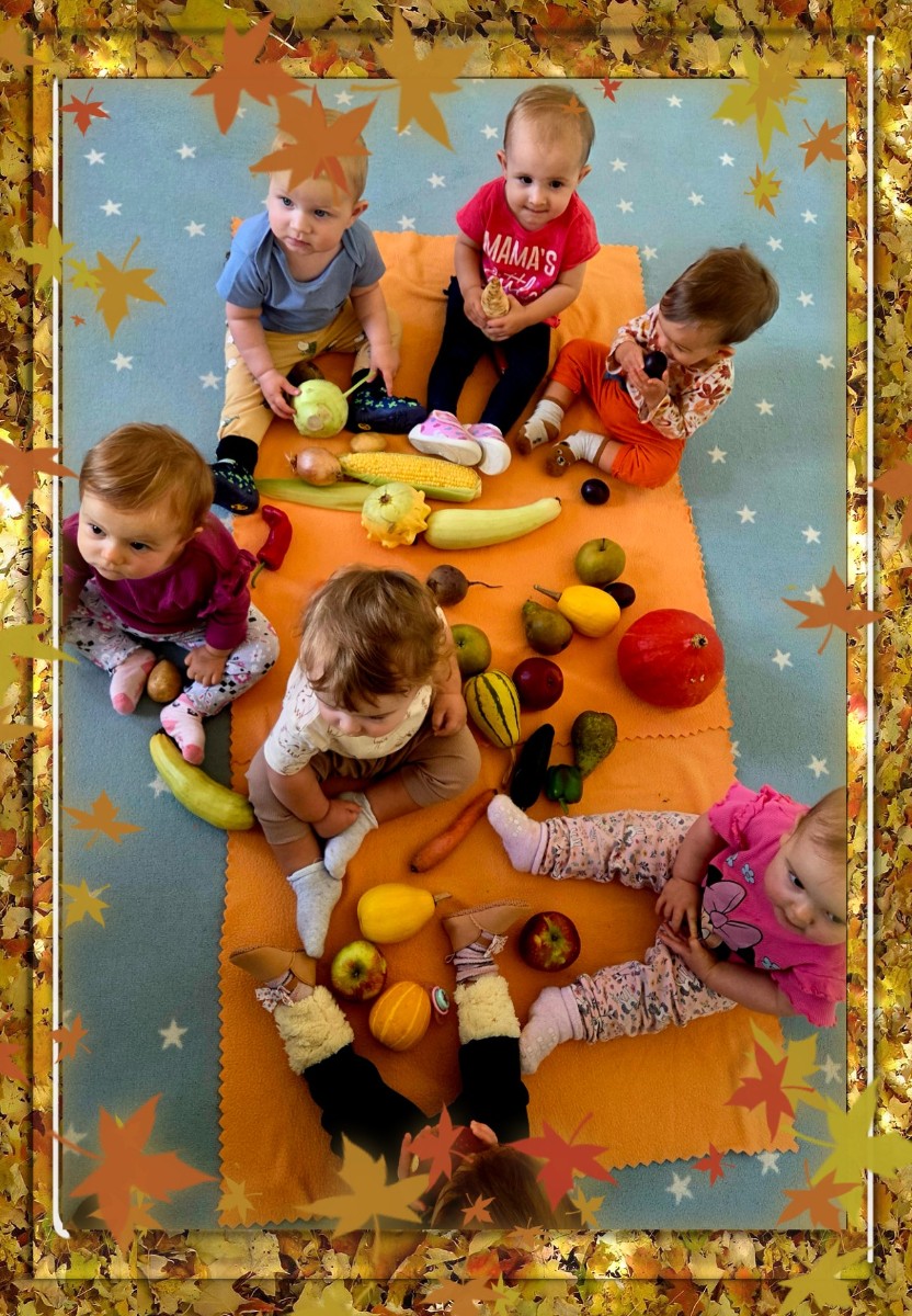 Maluszki brały udział w zajęciach, na których poznawały dary jesieni. Z ogromnym zainteresowaniem oglądały jesienne  warzywa i owoce rosnące w naszych ogródkach.