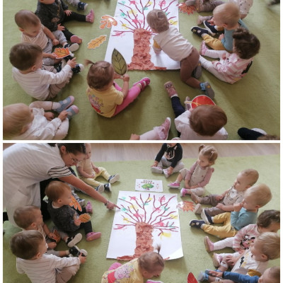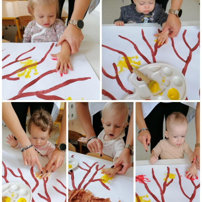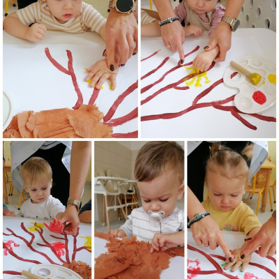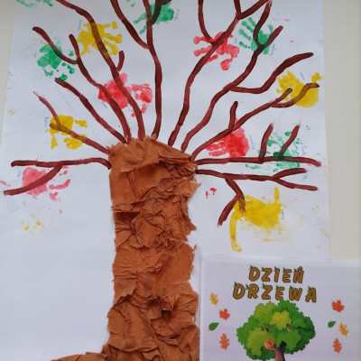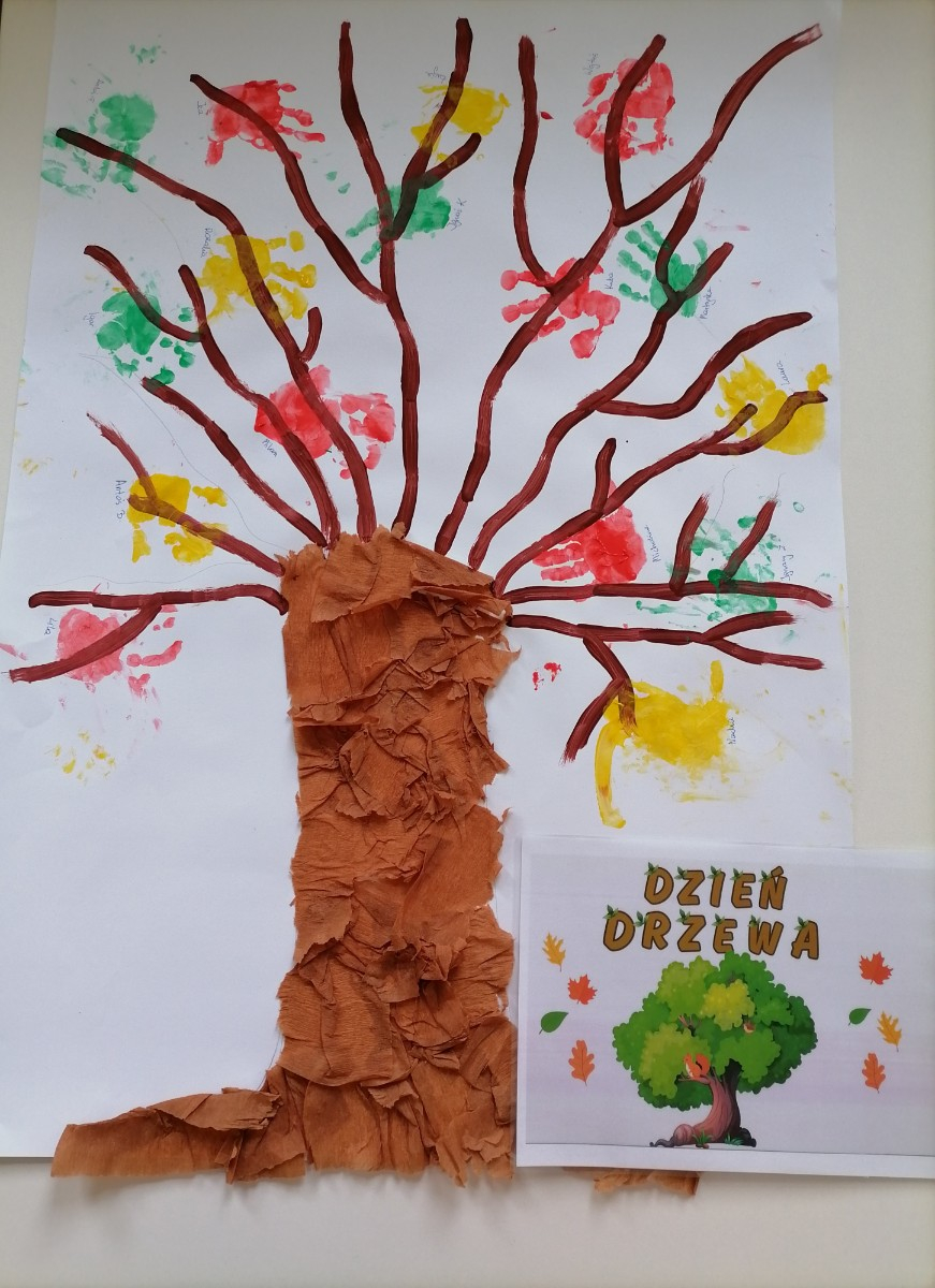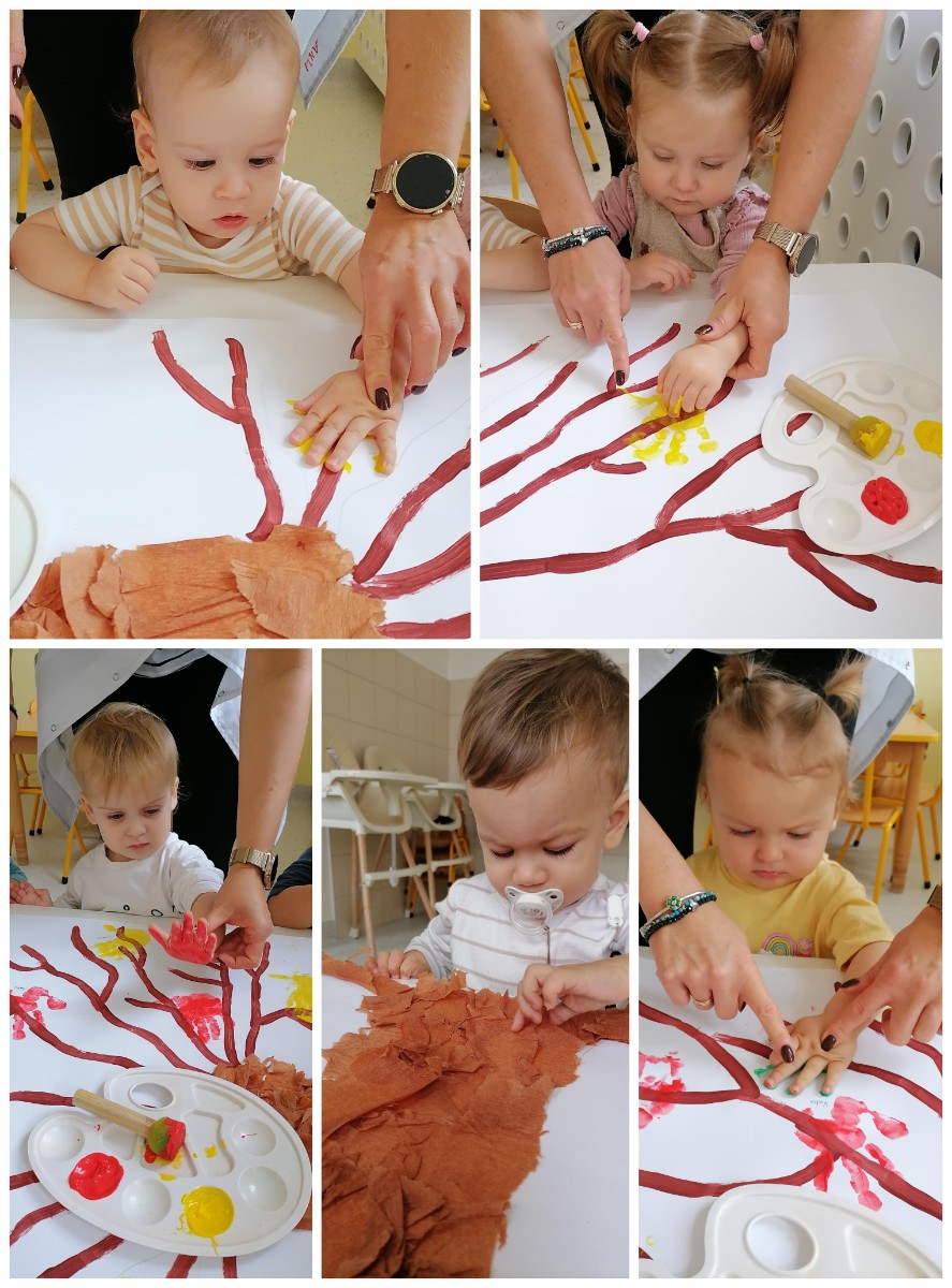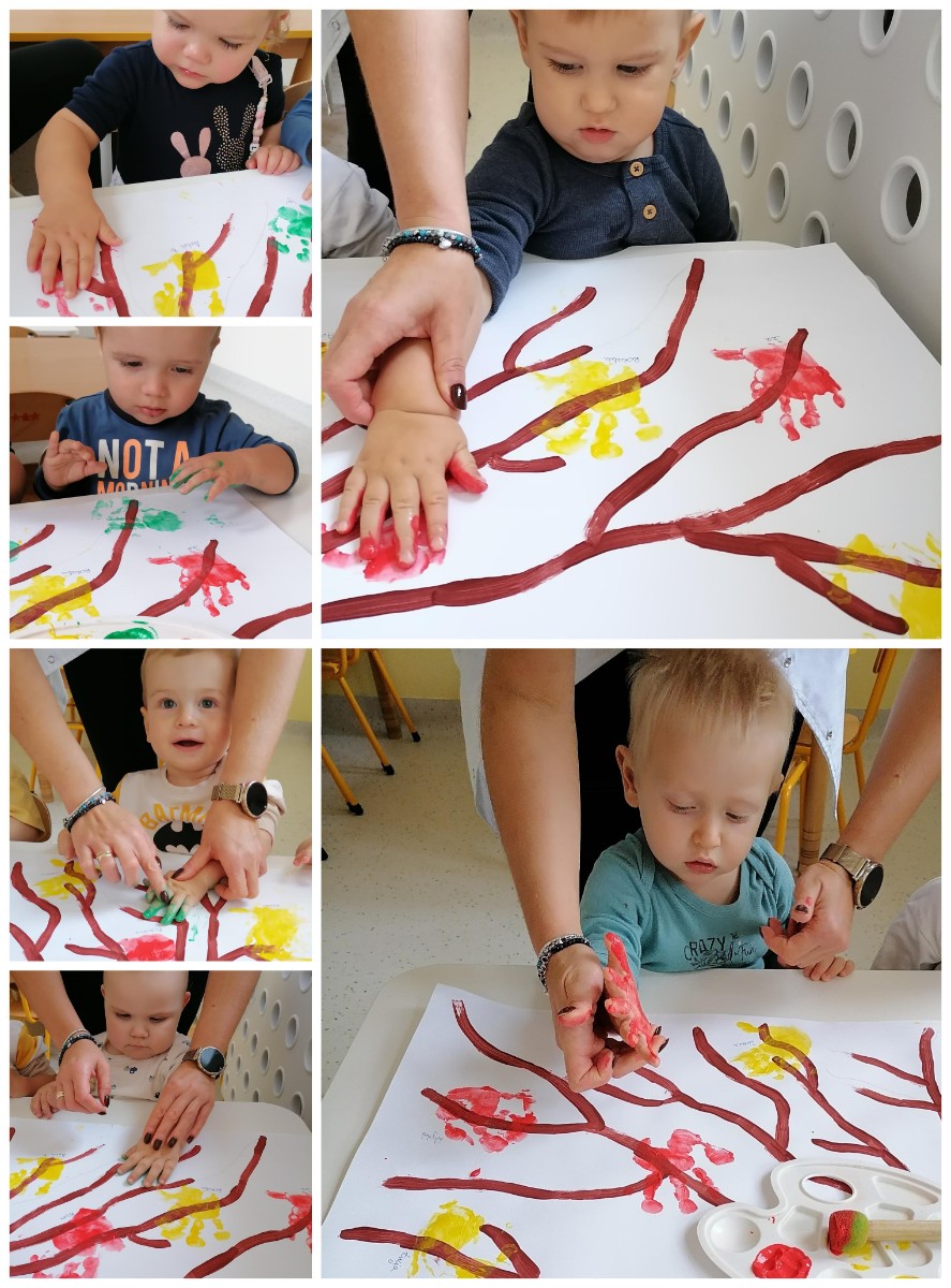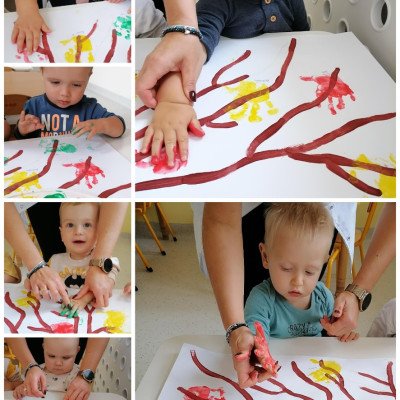 Później dzieci świetnie się bawiły wykonując pracę plastyczną mogły odbić swoją rączkę na drzewie.