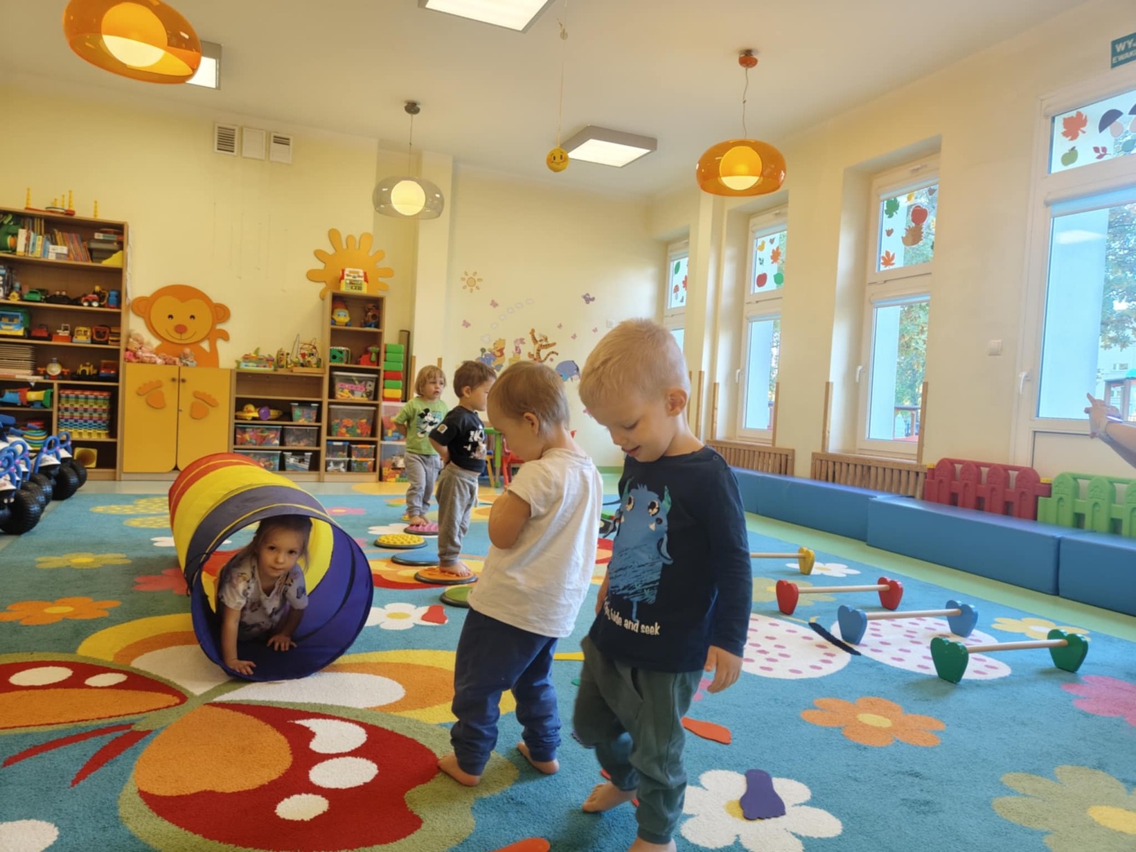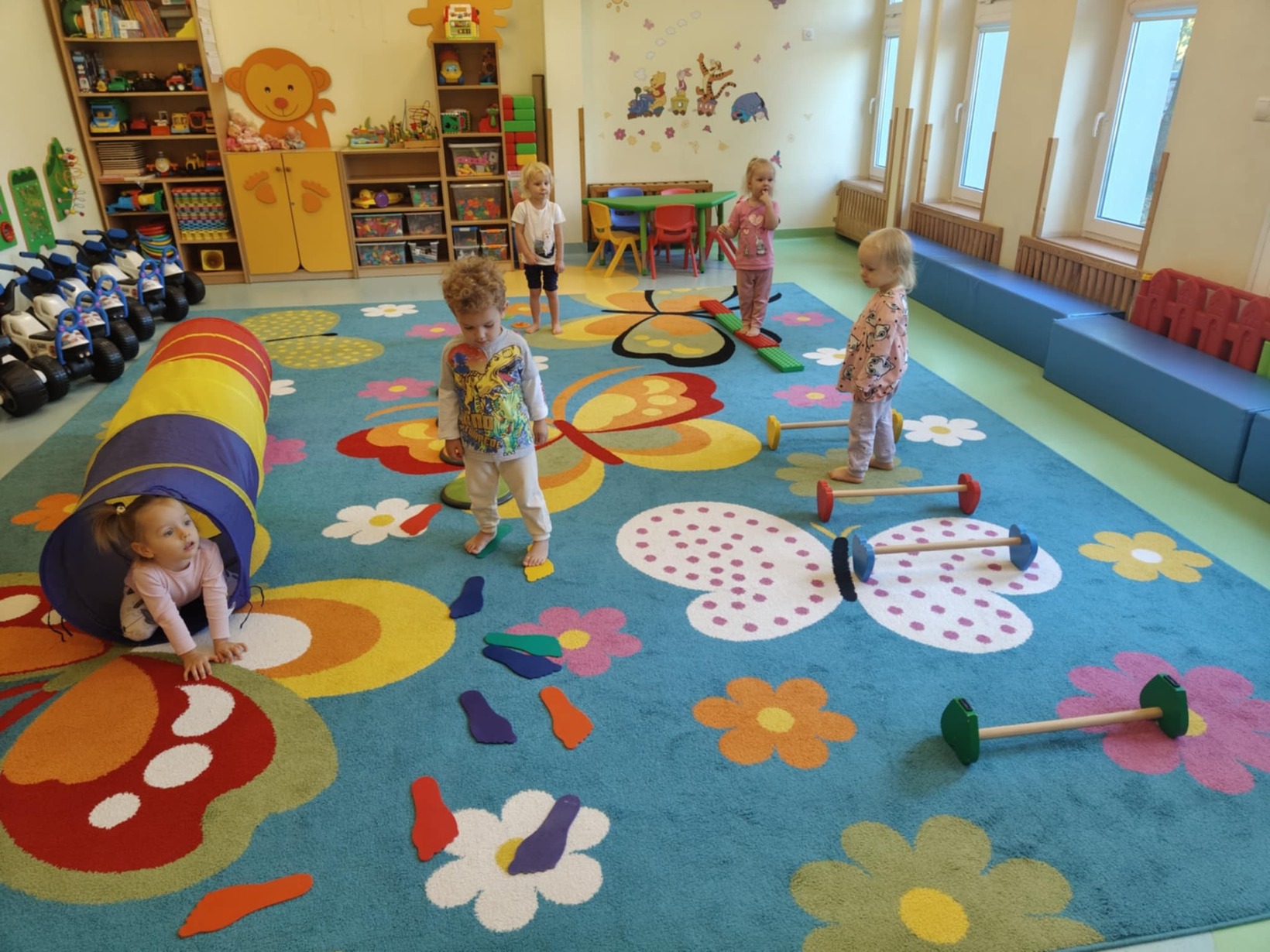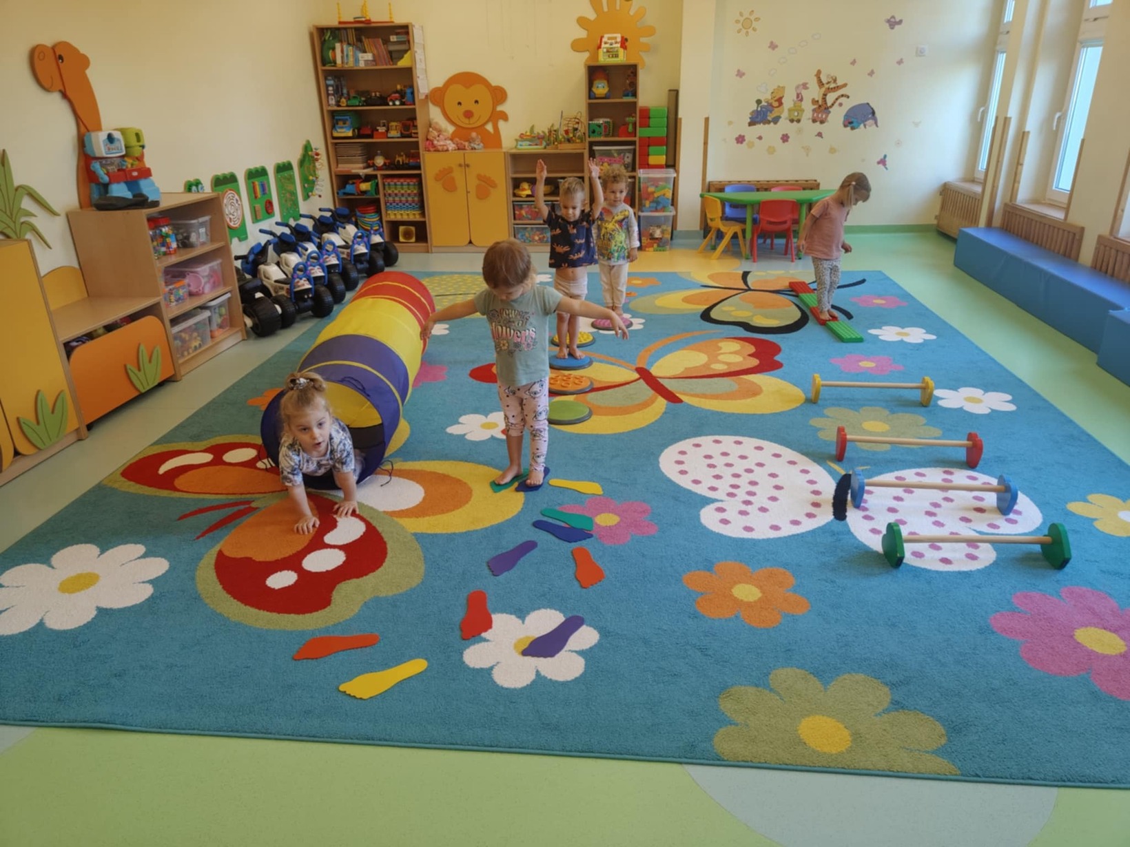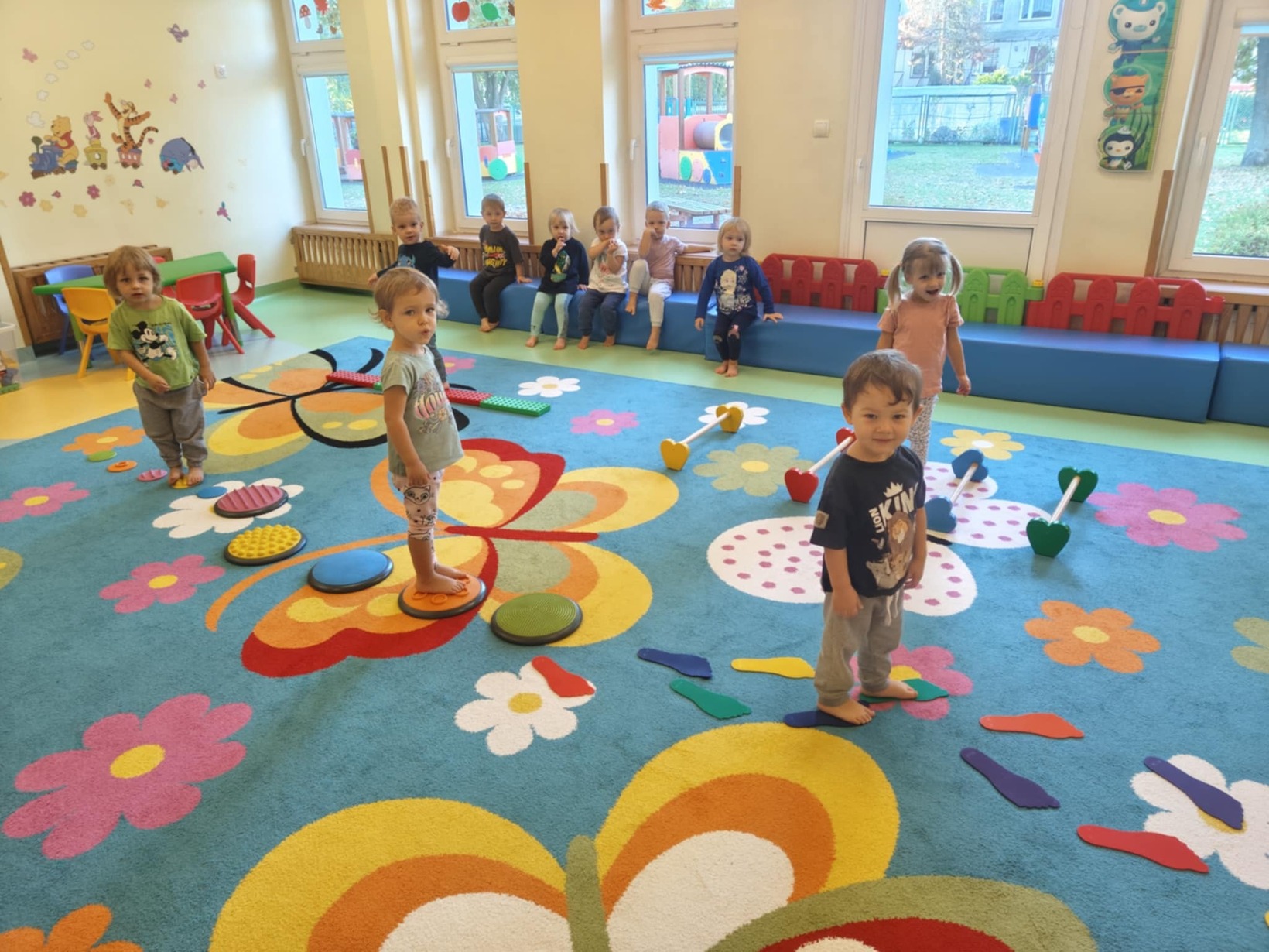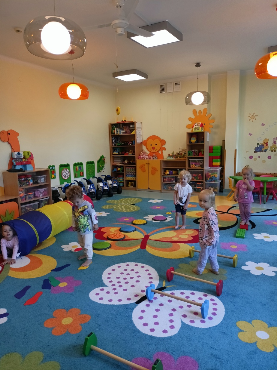 Dzieci miały okazję przyjrzeć się swoim stopom a podczas zabaw sensorycznych rozwijały zmysł równowagi, sprawność motoryczną i zmysł dotyku poprzez między innymi spacer ścieżką sensoryczną.