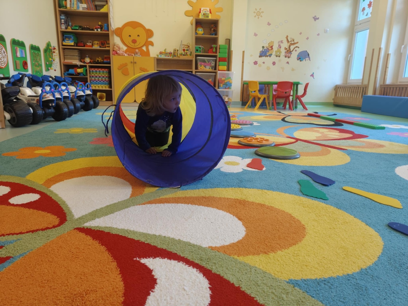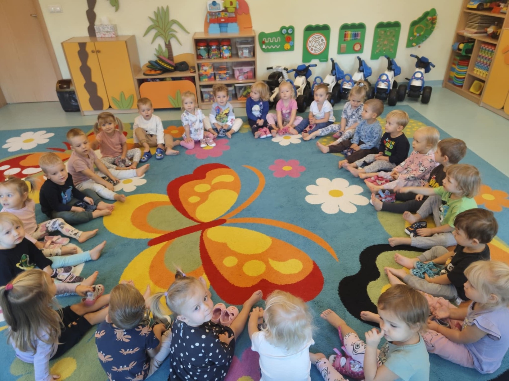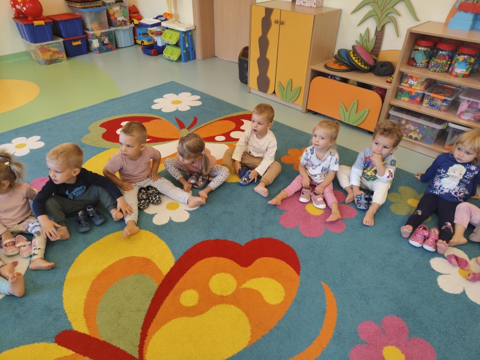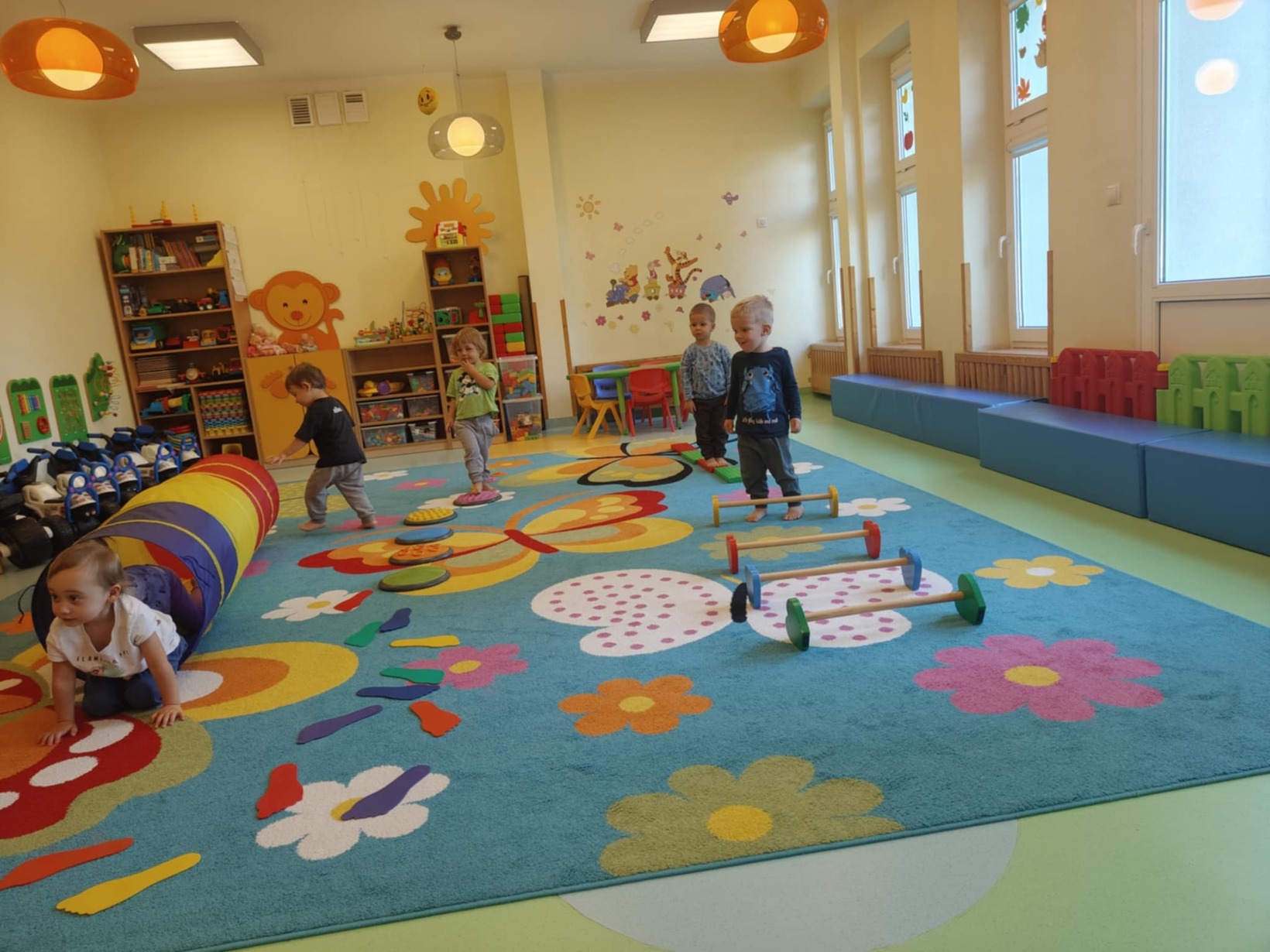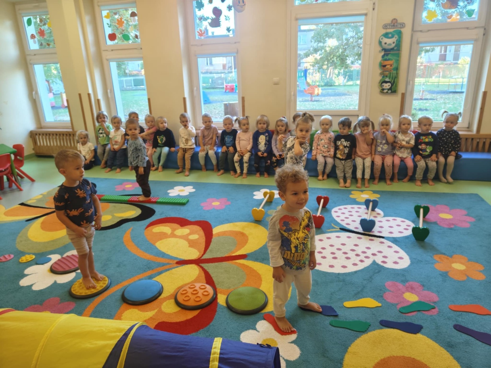 Dzieci miały okazję przyjrzeć się swoim stopom a podczas zabaw sensorycznych rozwijały zmysł równowagi, sprawność motoryczną i zmysł dotyku poprzez między innymi spacer ścieżką sensoryczną.