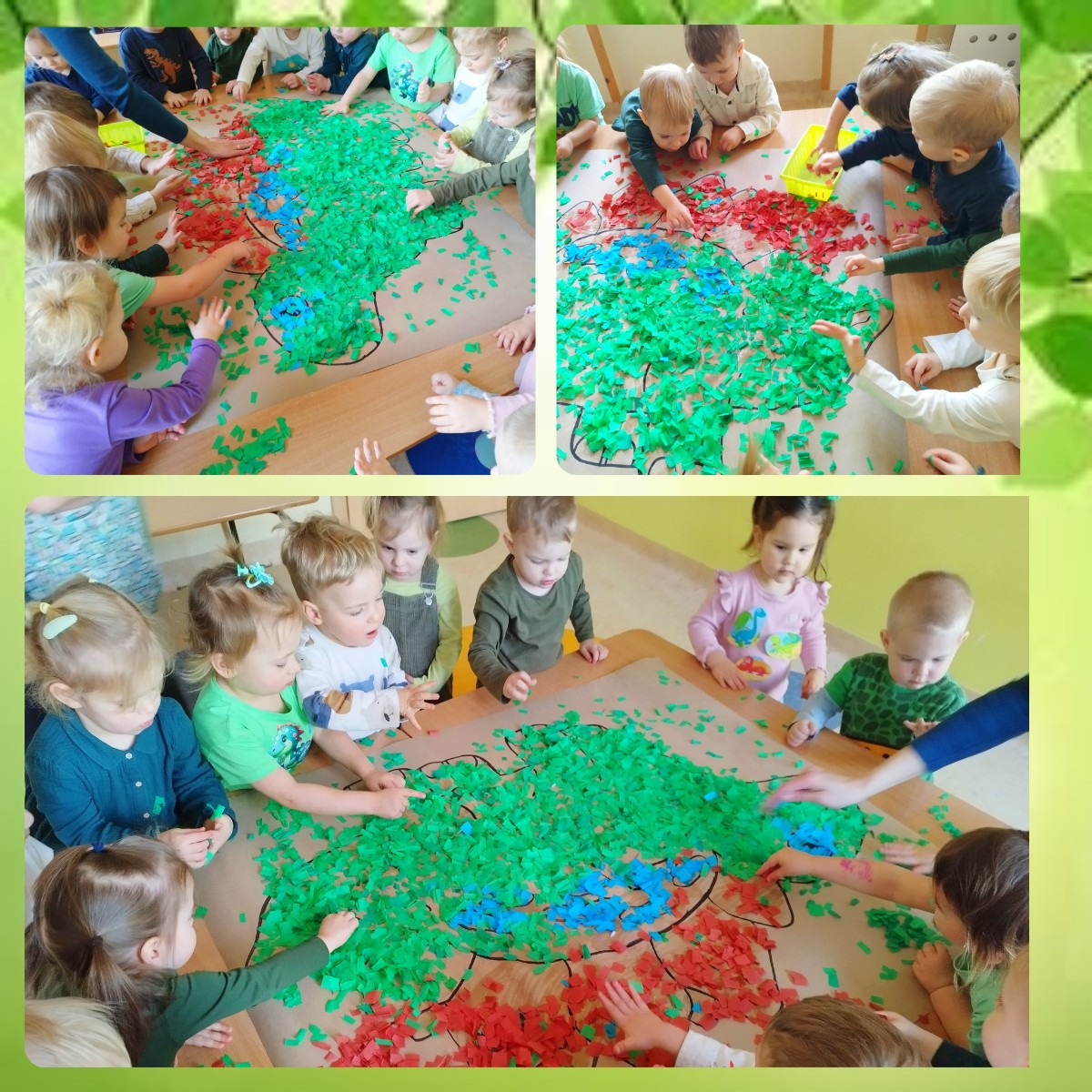 Na koniec zajęć wspólnie wykonaliśmy podobiznę wielkiego dinozaura z bibuły.