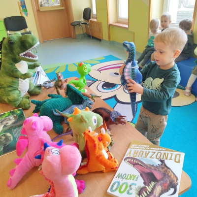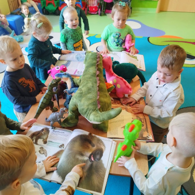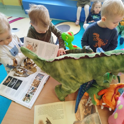 Dzieci poznały różne gatunki dinozaurów, jak wyglądały, co jadły oraz co się z nimi stało.