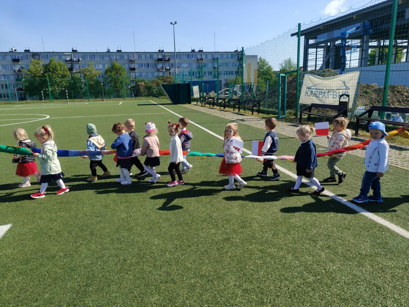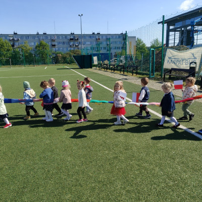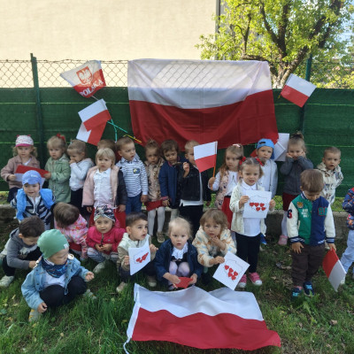 Podczas spaceru dzieci zaśpiewały hymn oraz odbyła się pogadanka na temat polskich symboli narodowych.
