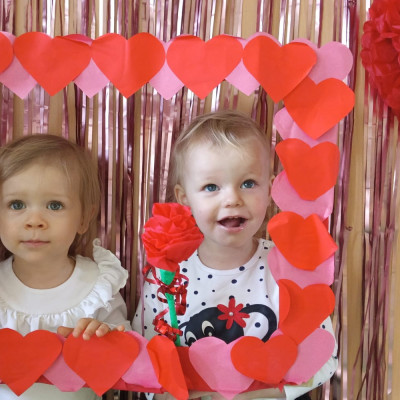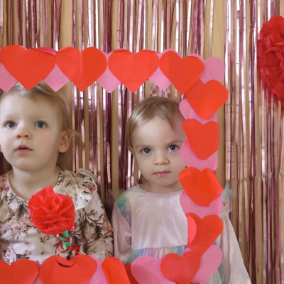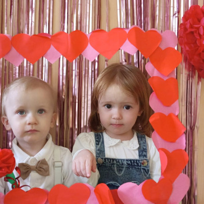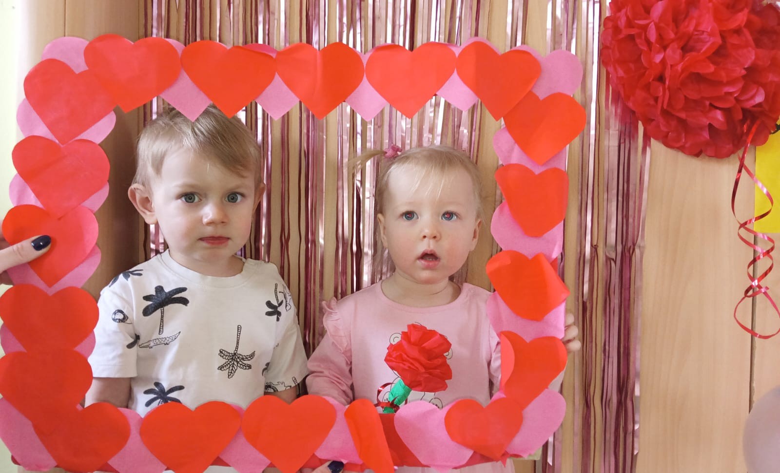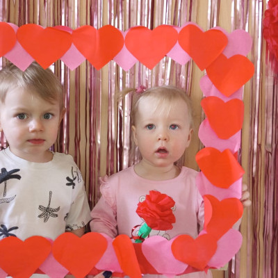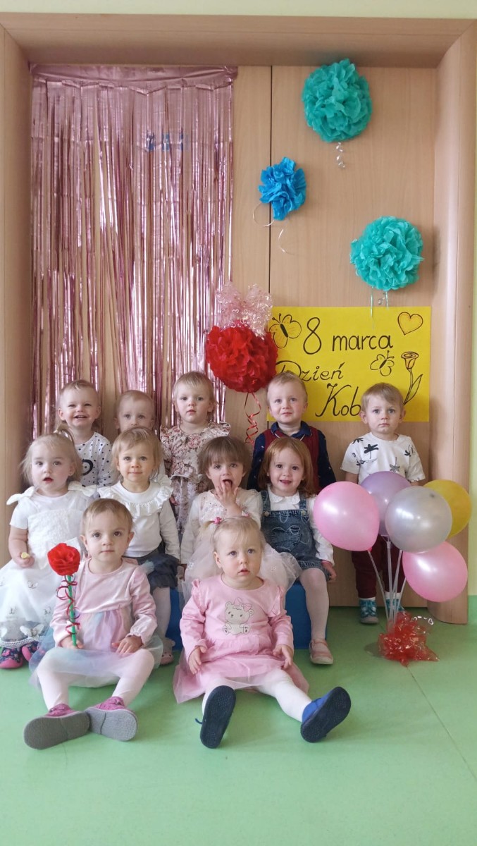 Zdjęcie przedstawia dzieci podczas sesji zdjęciowej z okazji Dnia Kobiet.