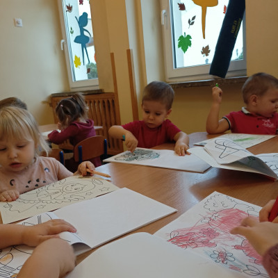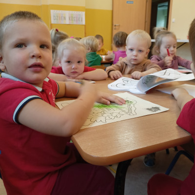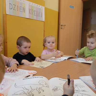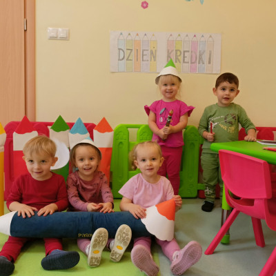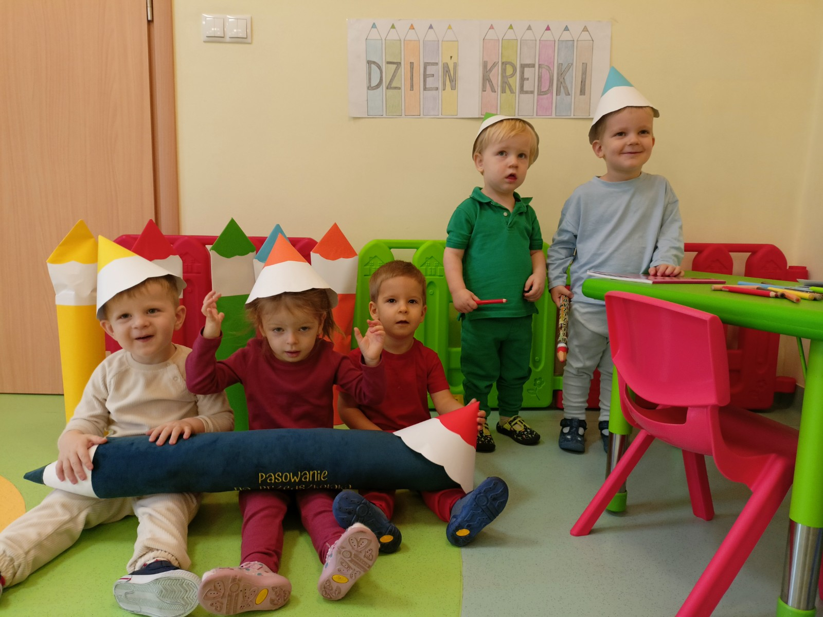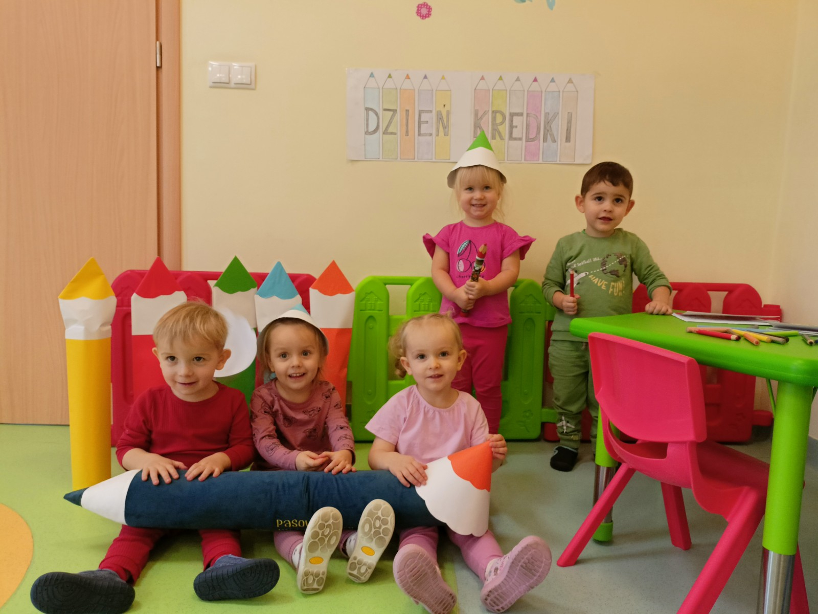 Dzień Kredki. W tym dniu odbyło się wspólne kolorowanie kredkami oraz zabawa i piosenki towarzyszyły nam przez cały dzień. Było bardzo ciekawe i kolorowo.Wszystkie dzieci były ubrane na swój ulubiony kolor.