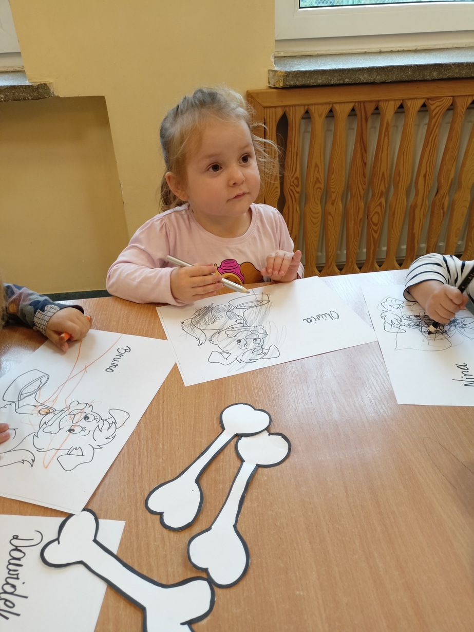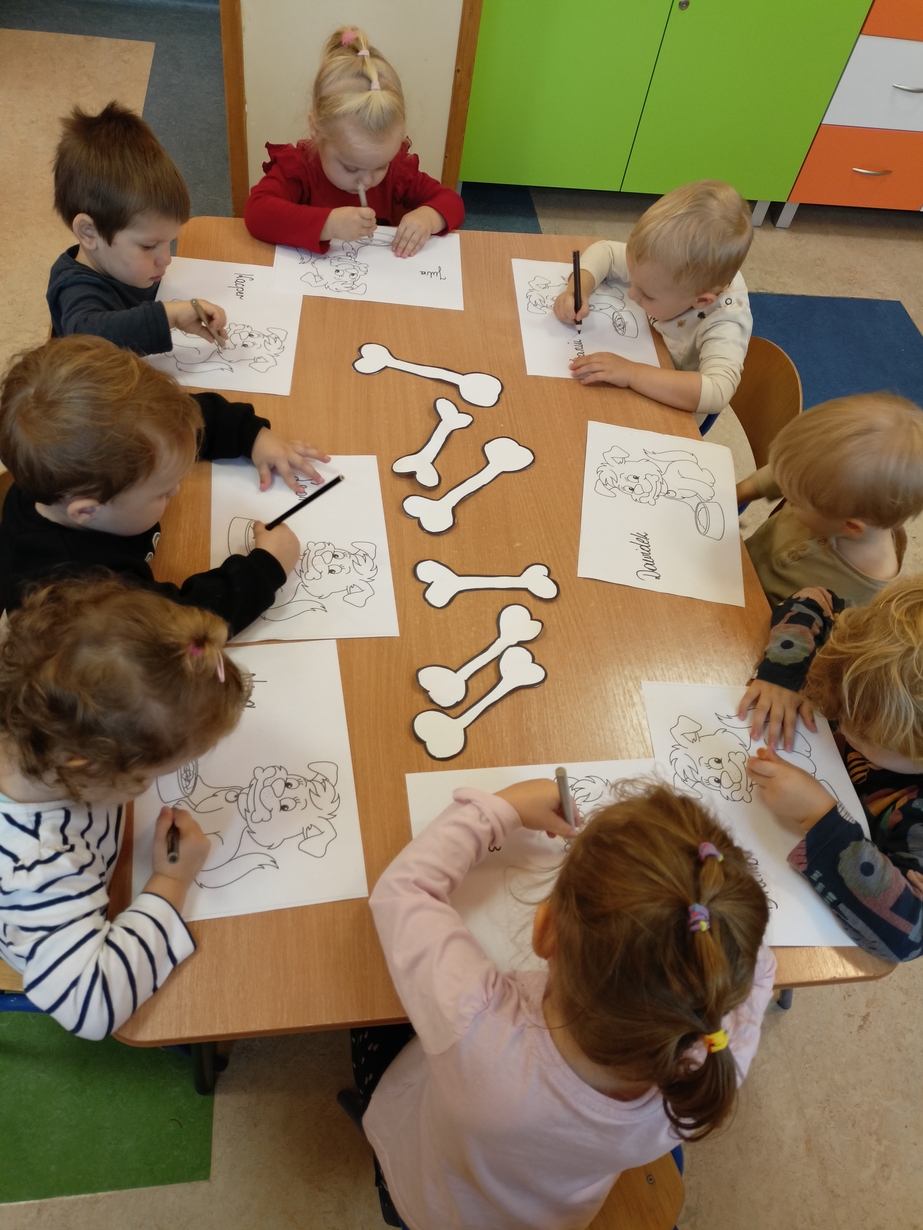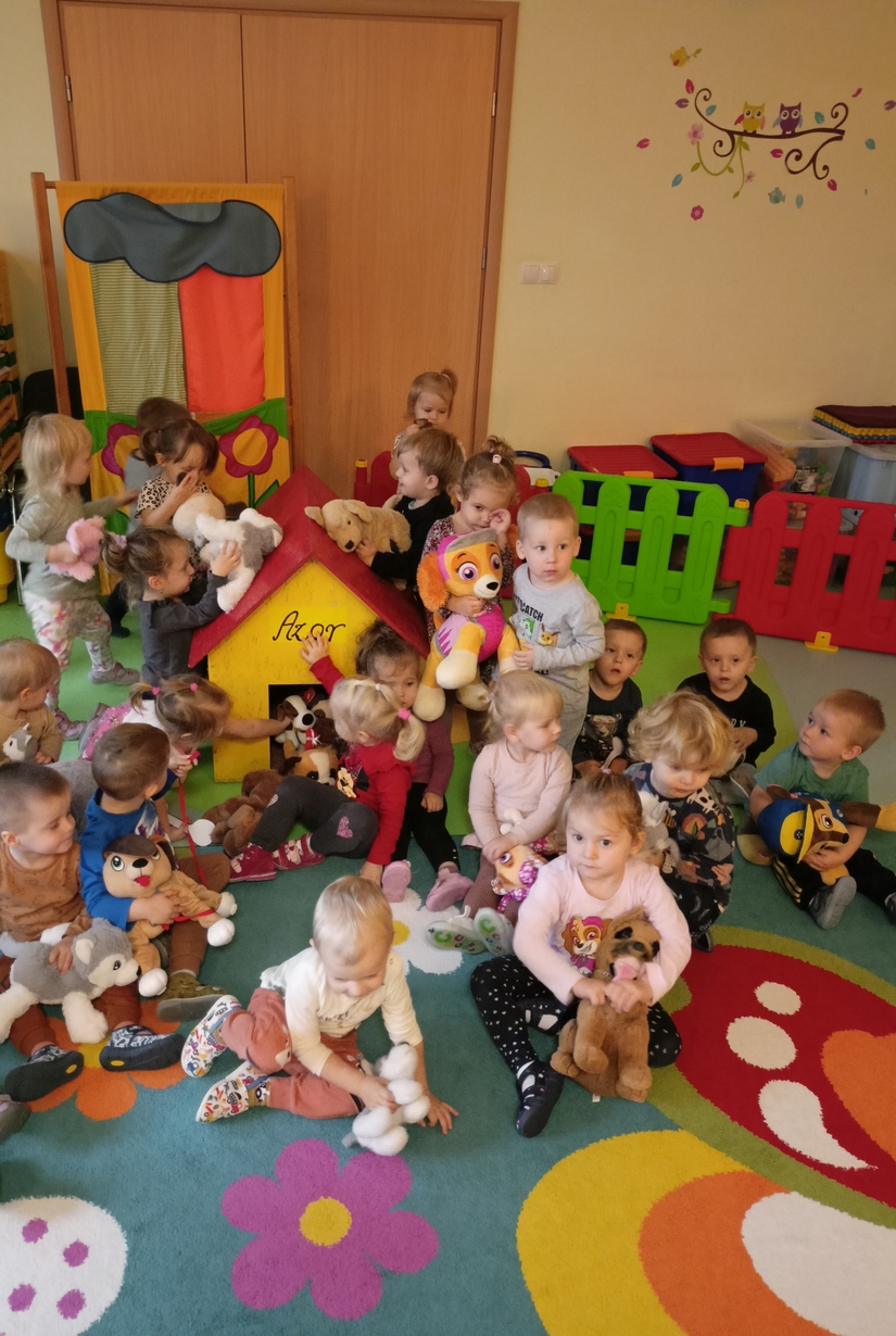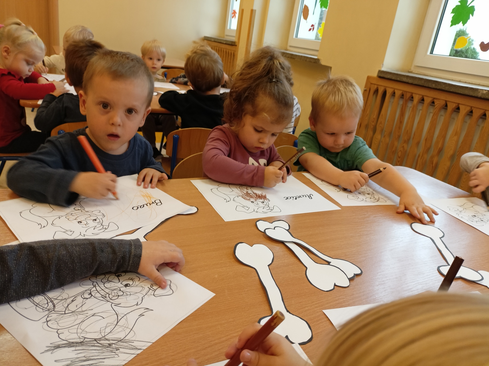 25 październik to Dzień Kundelka. Z tej okazji dzieci z grupy 4 przyniosły ze sobą swoje ulubione maskotki – pieski. Dzieci poznały gdzie pieski mieszkają i co jedzą. Były wspólne zabawy w naśladowanie piesków oraz śpiewanie piosenek o czworonogach. W dalszej części zajęć dzieci wykonały pracę plastyczną - kolorowankę. Na zakończenie dzieci pozowały do zdjęć przy budzie?.