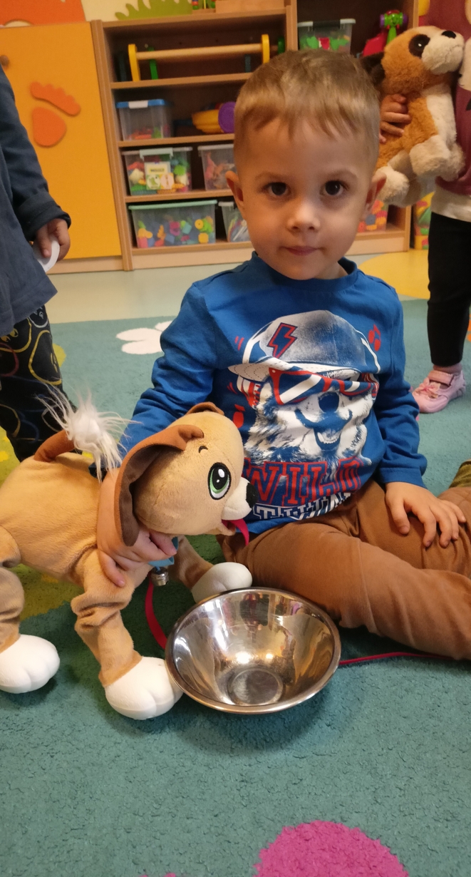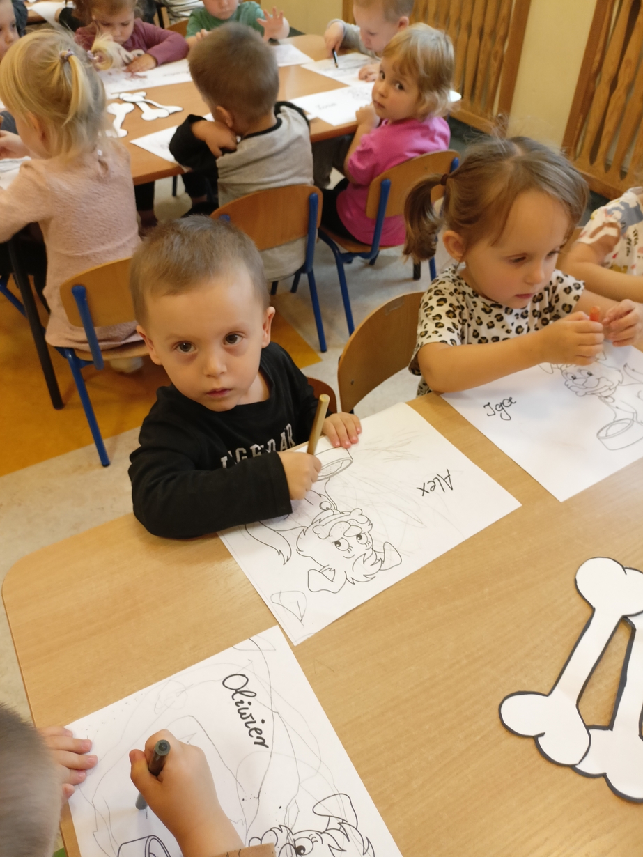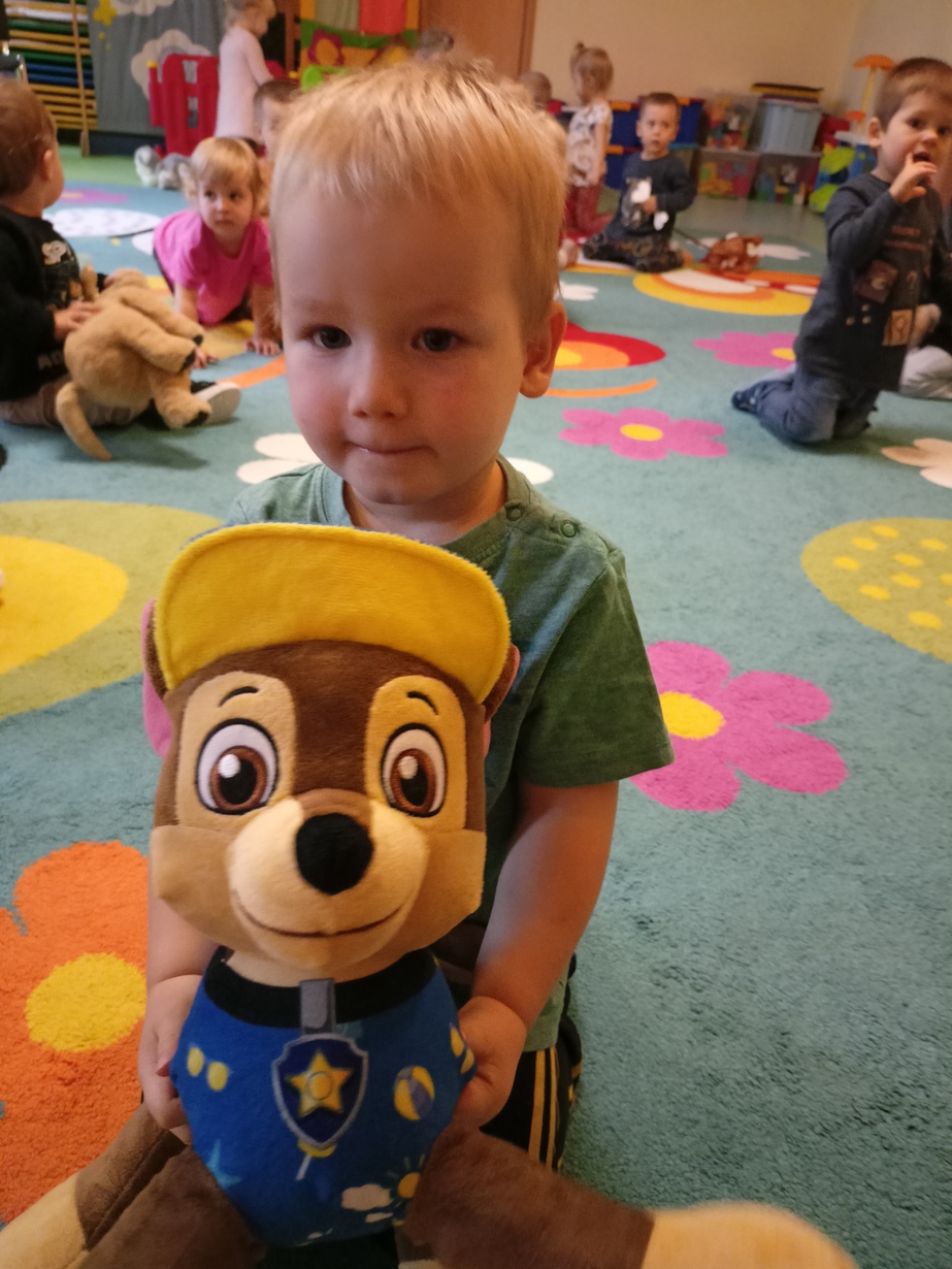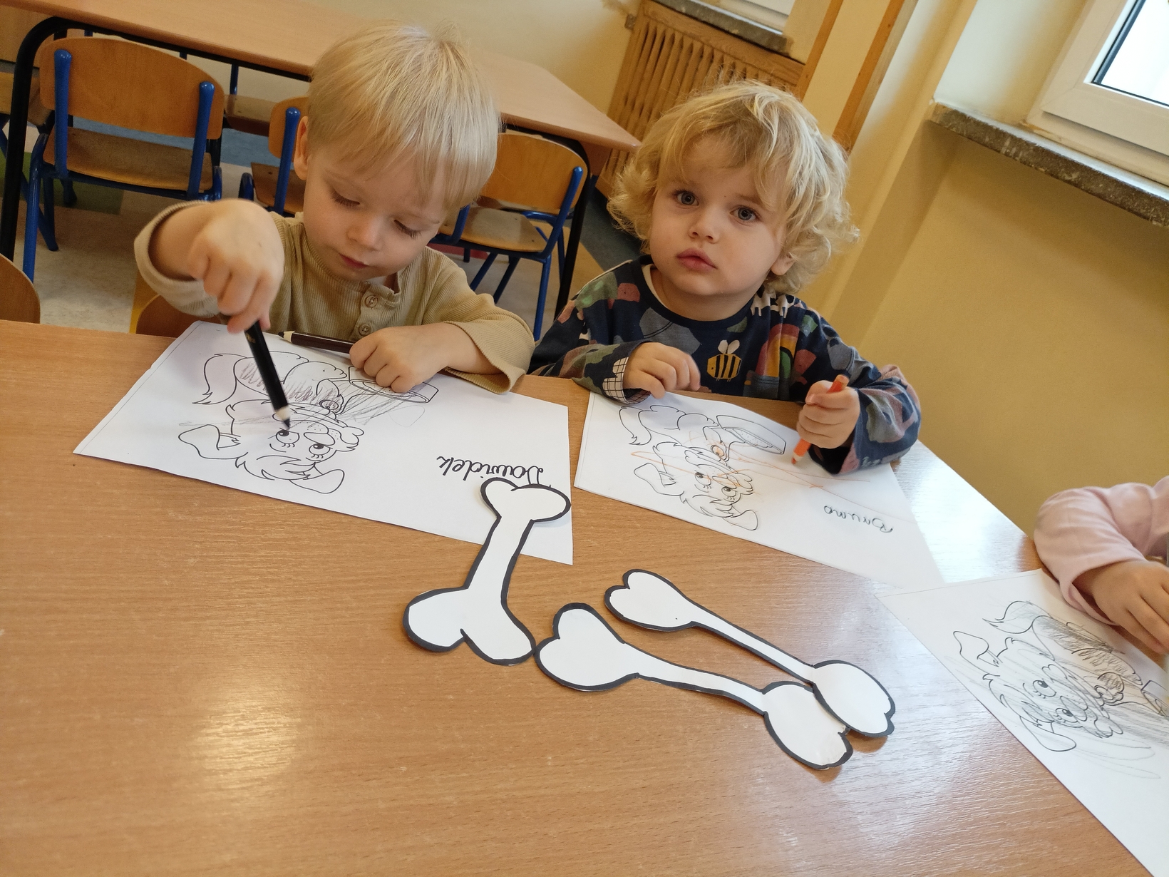 25 październik to Dzień Kundelka. Z tej okazji dzieci z grupy 4 przyniosły ze sobą swoje ulubione maskotki – pieski. Dzieci poznały gdzie pieski mieszkają i co jedzą. Były wspólne zabawy w naśladowanie piesków oraz śpiewanie piosenek o czworonogach. W dalszej części zajęć dzieci wykonały pracę plastyczną - kolorowankę. Na zakończenie dzieci pozowały do zdjęć przy budzie?.
