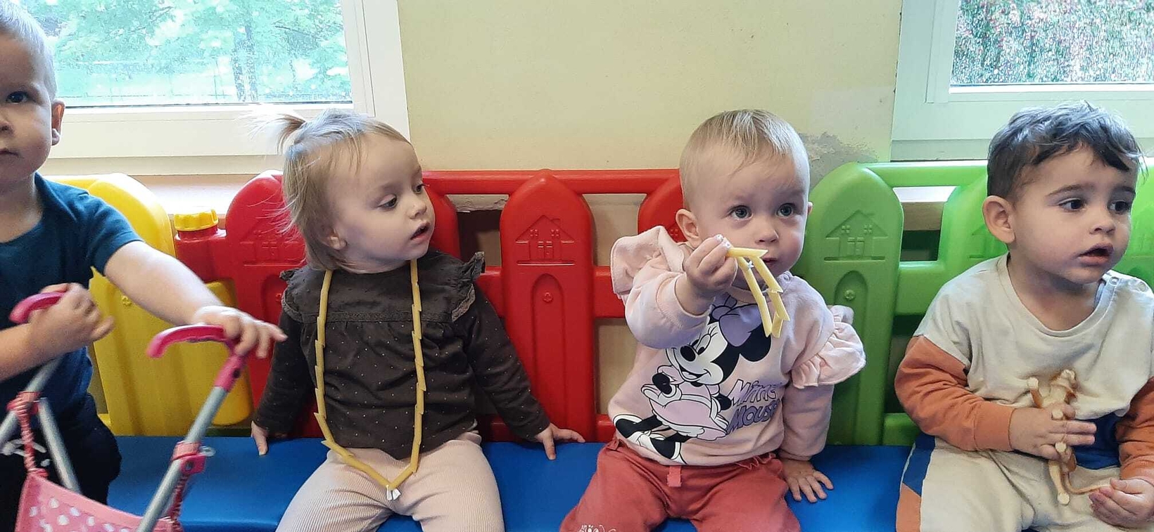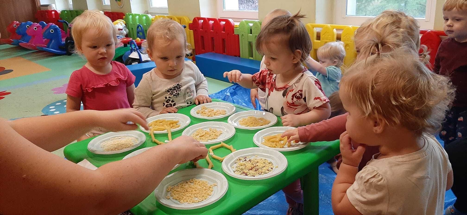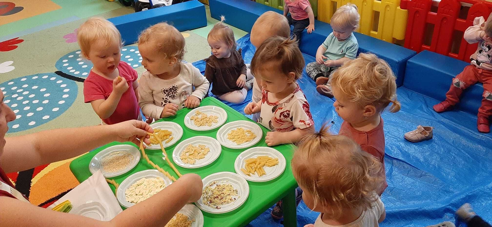 W dniu dzisiejszym tj.25.10.23. w naszej grupie 2 "Biedronki " odbył się Dzień Makaronu. Dzieci uczestniczyły w zajęciach podczas których poznały różne kształty i wielkości makaronów oraz ich przeznaczenie. Oprócz tego że makaron można zjeść, można go wykorzystać w formie zabawy np. robienie biżuterii. Dziewczynki mogły przymierzyć korale i bransoletkę z makaronu. Zajęcia sprawiły dzieciom dużo frajdy i uśmiechu.