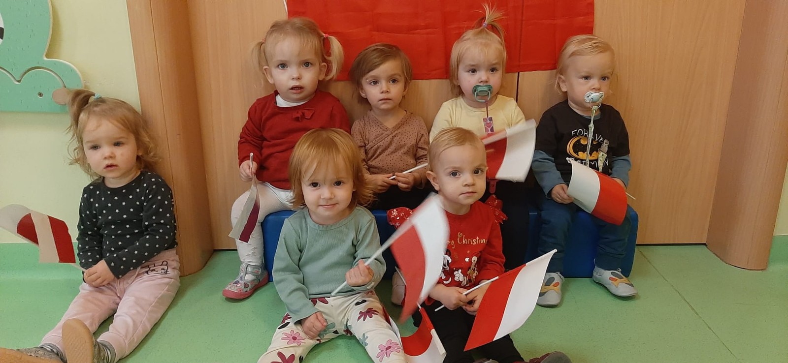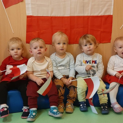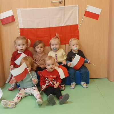 W dniu 08.11 na grupie biedronek był celebrowany DZIEŃ NIEPODLEGŁOŚCI. Dzieci pozowały do wspólnego zdjęcia w strojach biało - czerwonych symbolizujące barwy Polski. Razem z opiekunkami odsłuchały hymn Polski oraz wierszyk Polak mały. Dzieci miały dużo frajdy i radości.