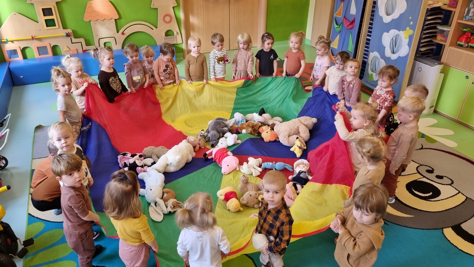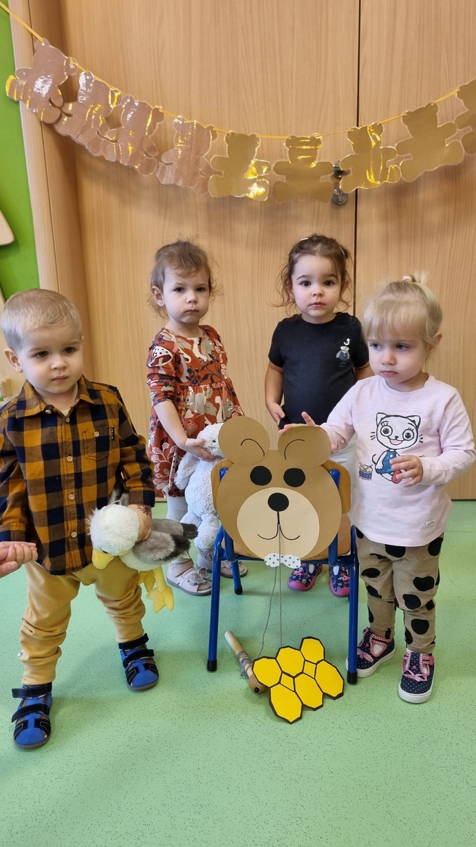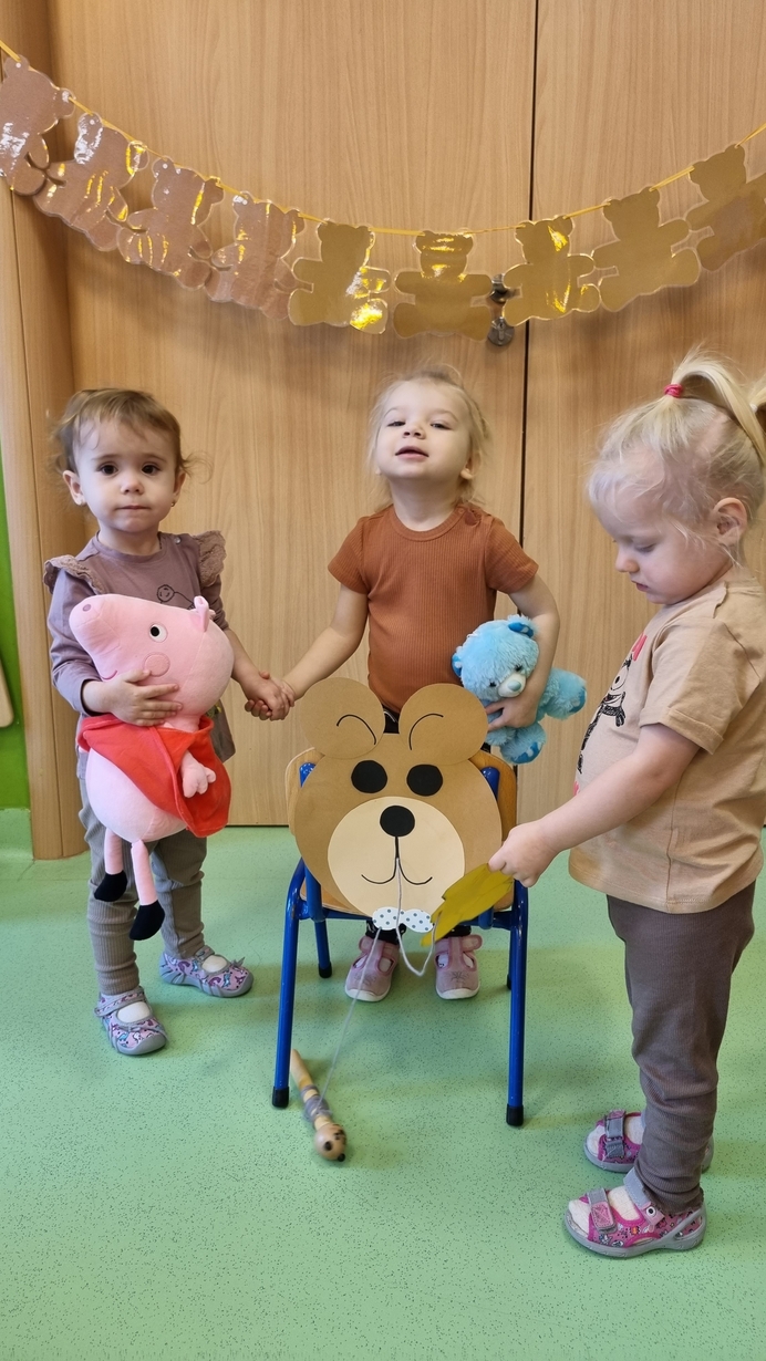 25 listopada swoje święto obchodzi najlepszy przyjaciel maluchów i najmilsza przytulanka przy zasypianiu - Pluszowy Miś. Z tej okazji dzieci z grupy Muchomorków przyniosły swoje ulubione misie, które towarzyszyły im przez cały dzień. Dzieci miały okazję poznać najpopularniejsze misie z bajek. Dzieci brały udział w zabawie pt. "Nakarm Misia" rozwijającą koordynację wzrokowo-ruchową. Nie zabrakło także zabaw i tańców z wykorzystaniem chusty animacyjnej przy piosenkach o tematyce związanej z misiami.