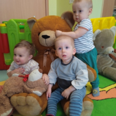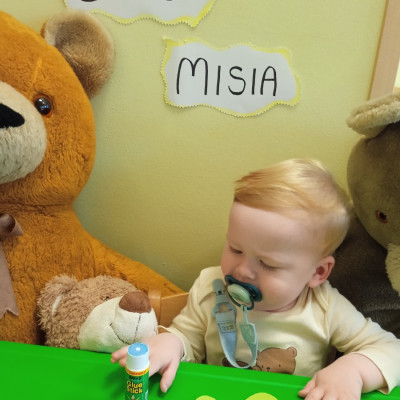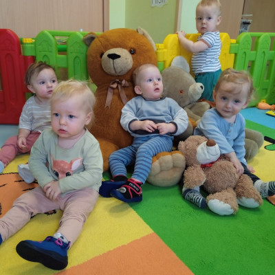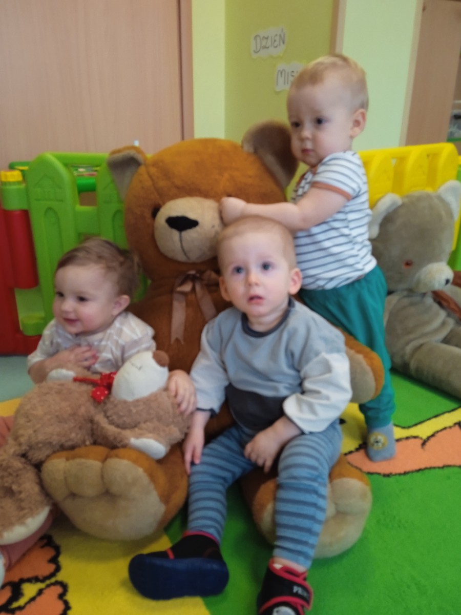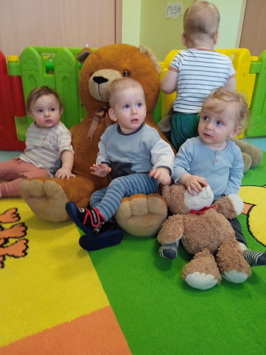 Zdjęcie przedstawia dzieci podczas jesiennych zabaw w żłobku