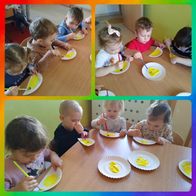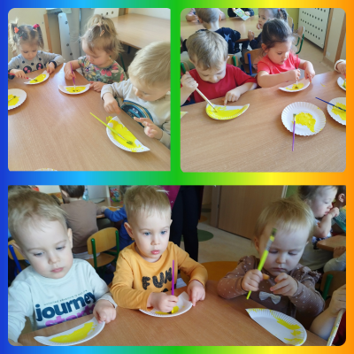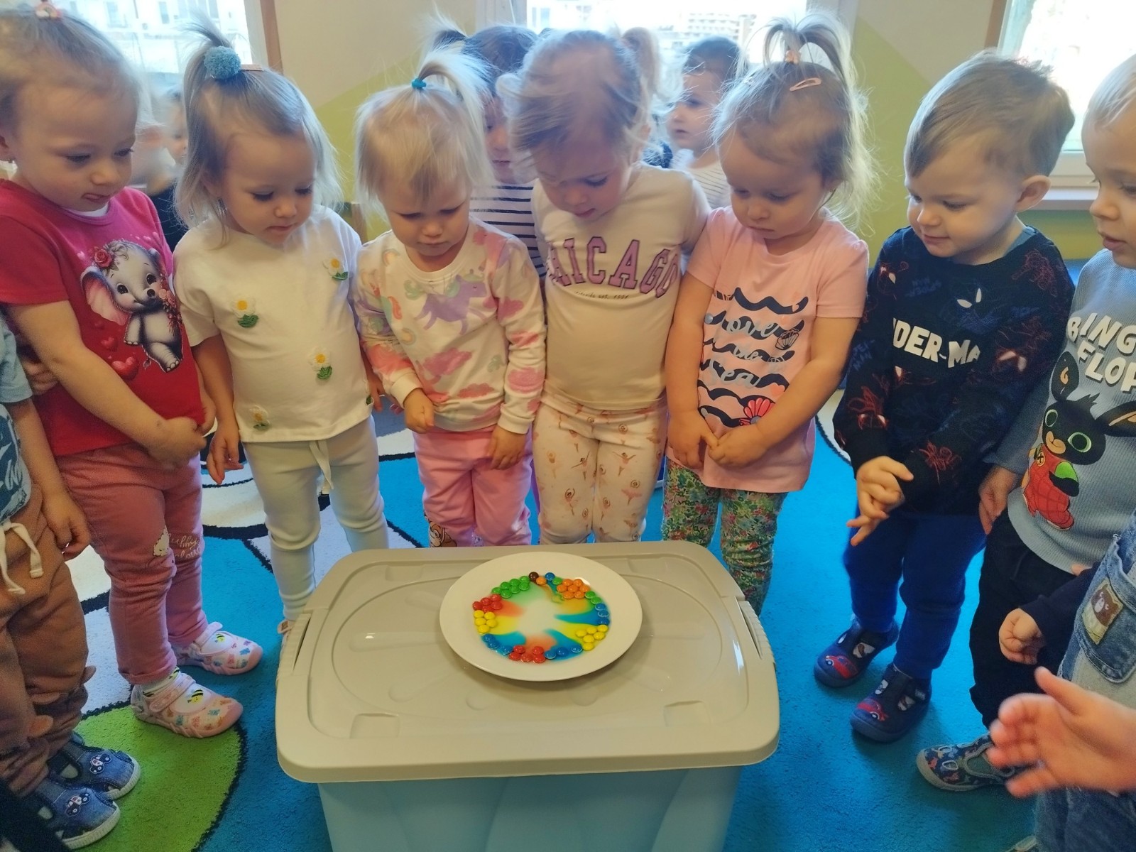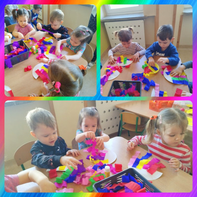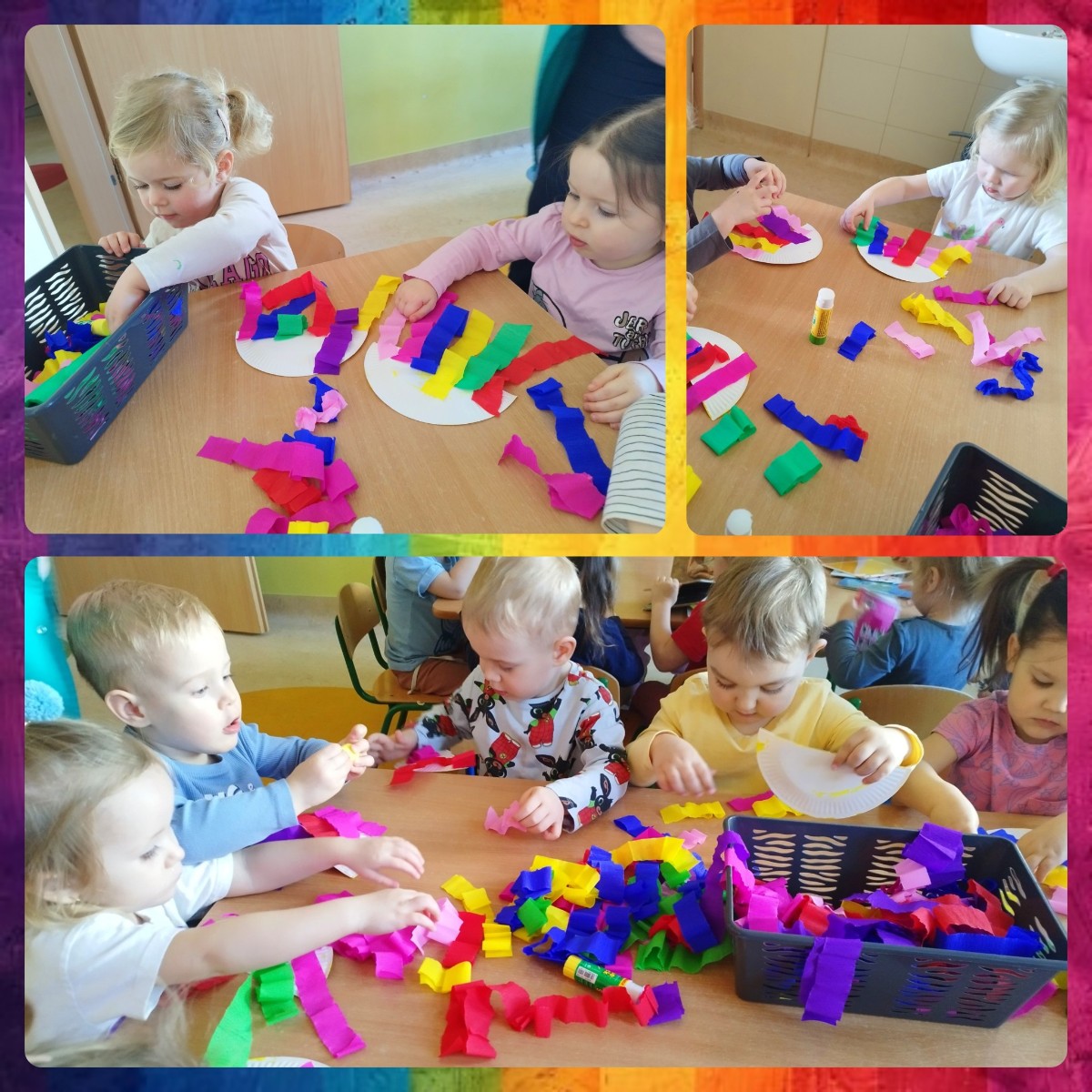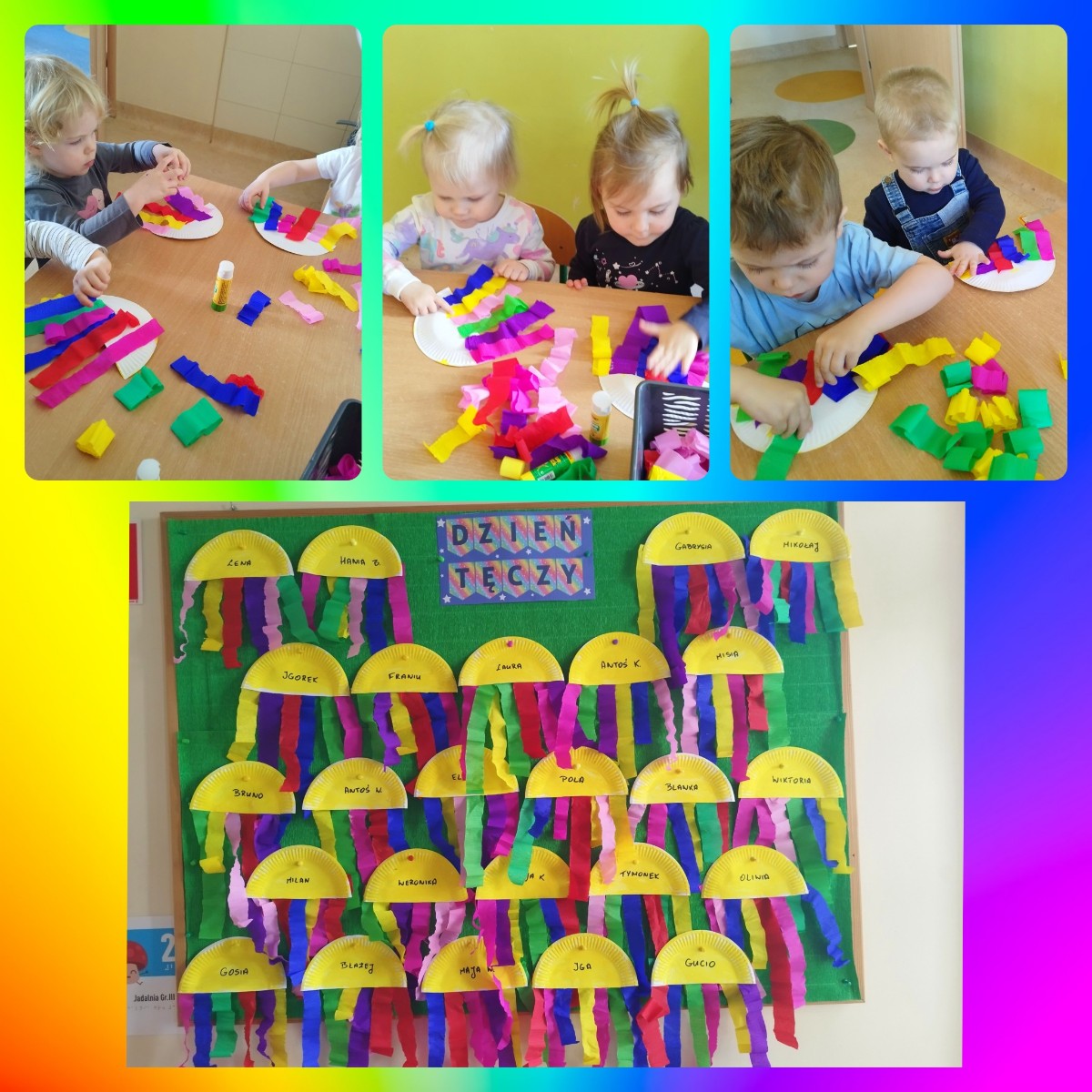 IZdjęcie przedstawia dzieci podczas zajęć tematycznych o tęczy