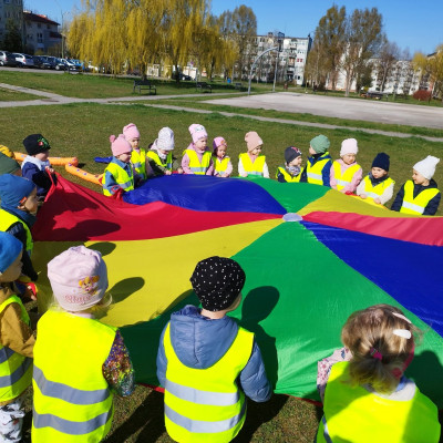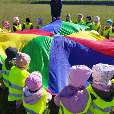 W tym tygodniu Muchomorki obchodziły na grupie kolorowy tydzień z okazji Dnia Tęczy. W specjalnych zajęciach tematycznych dotyczących wszystkiego co łączy się w tęczą, dzieci dowiedziały się jak powstaje tęcza i kiedy można ją zaobserwować, przeprowadzaliśmy eksperymenty z kolorami, uczyliśmy się wierszyka o kolorach tęczy, utrwalając przy okazji nazwy kolorów. Dzieci wykonały piękną pracę plastyczną przedstawiająca tęczę oraz świetnie bawiliśmy się na świeżym powietrzu z wykorzystaniem chusty animacyjnej. To był tydzień pełen radości i kolorów.