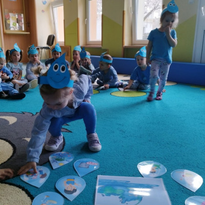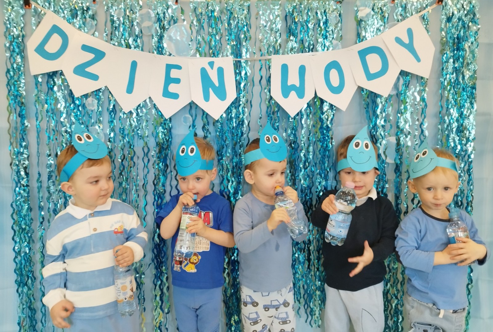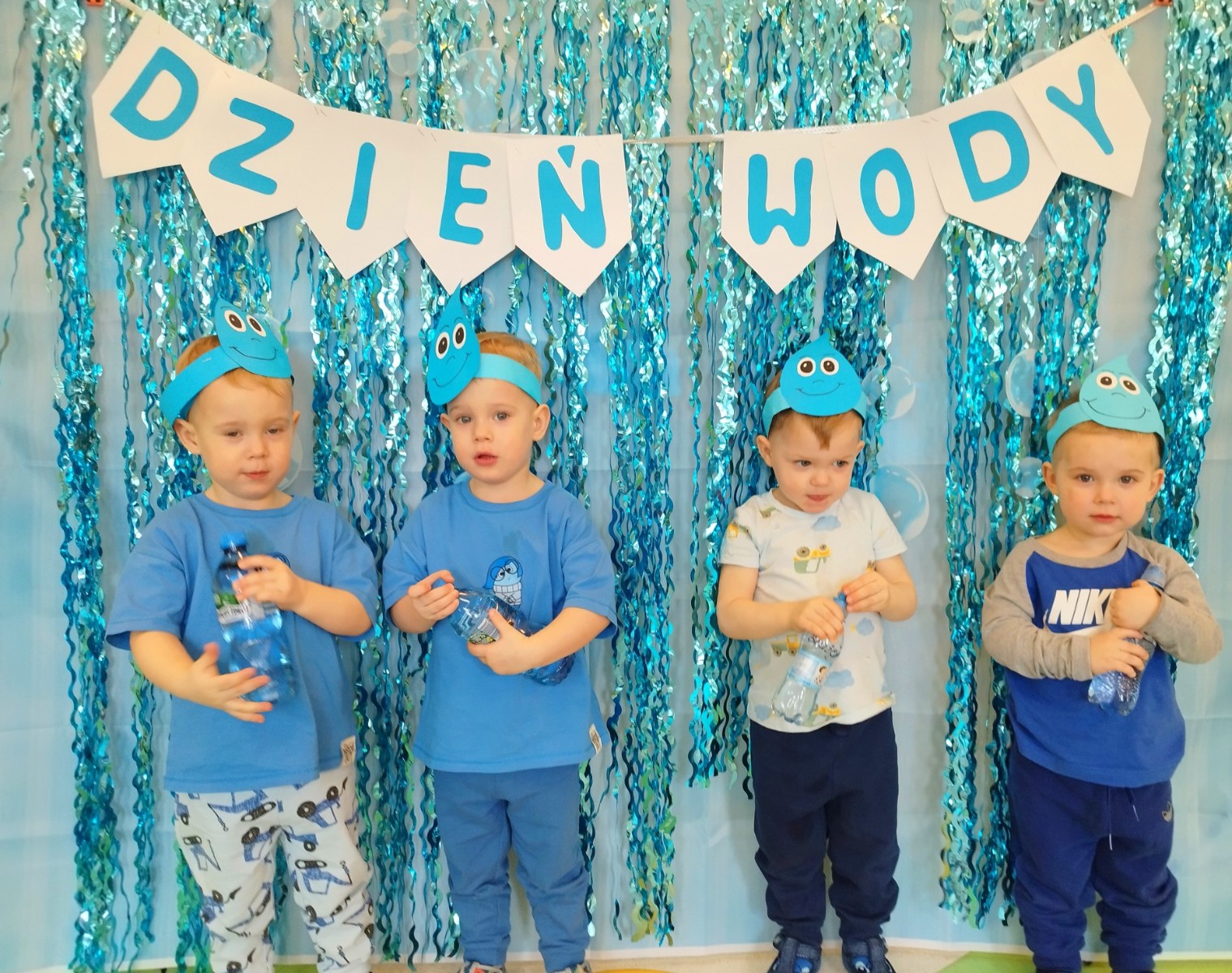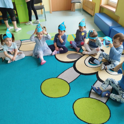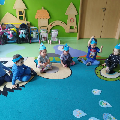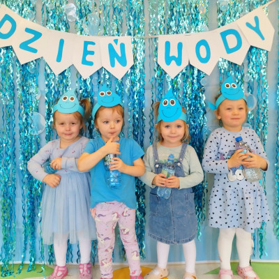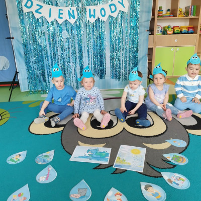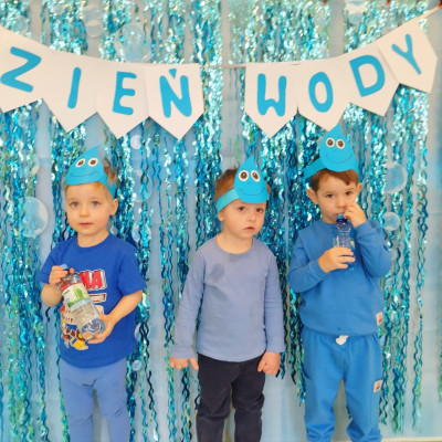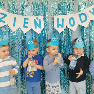 Tego dnia dzieci wystroiły się w kolory wody -we wszystkie jej odcienie, a także przyniosły butelkę swojej ulubionej wody. Podczas zajęć tematycznych żłobkowicze dowiedzieli się do czego wykorzystujemy wodę - do picia, gotowania, mycia, prania i sprzątania, gaszenia pożaru czy podlewania. Poznali również zasady oszczędzania wody i dbania o jej czystość, gdyż jest to bardzo ważne dla całej planety i przyszłych pokoleń.