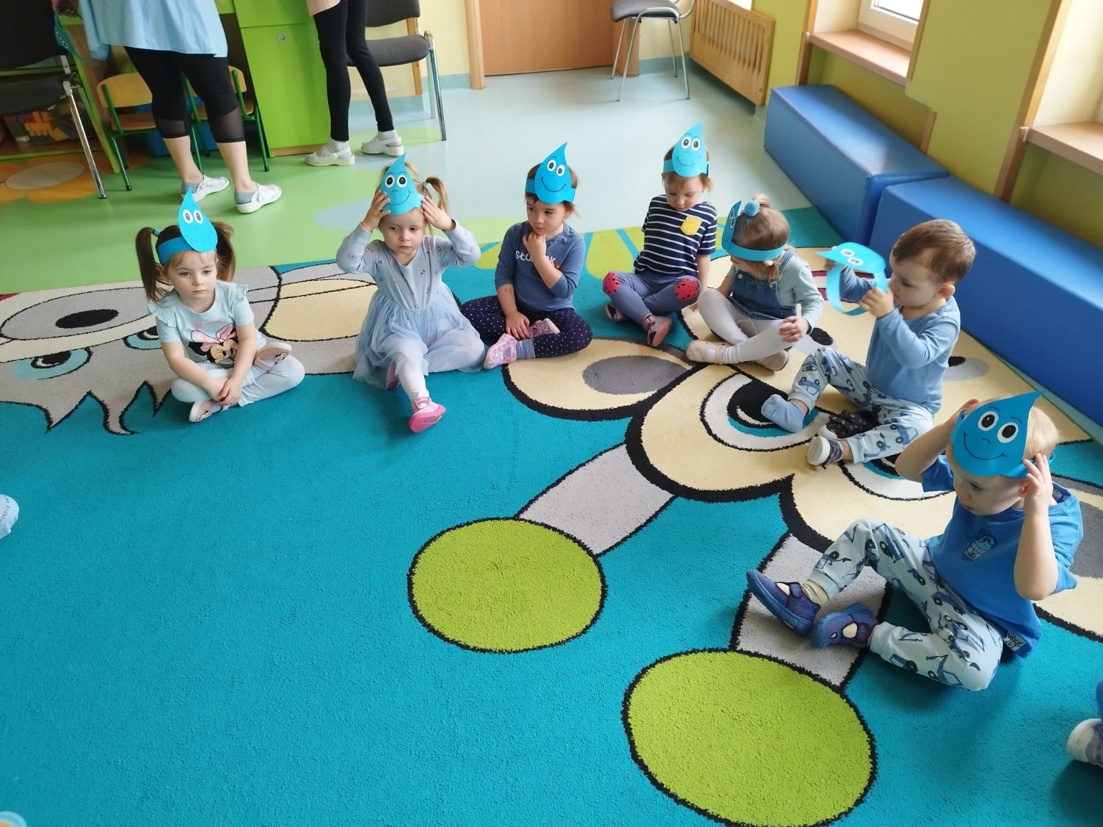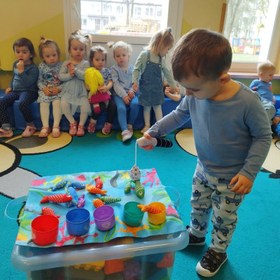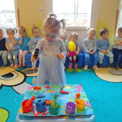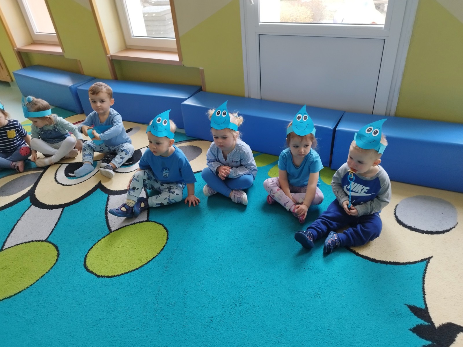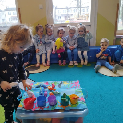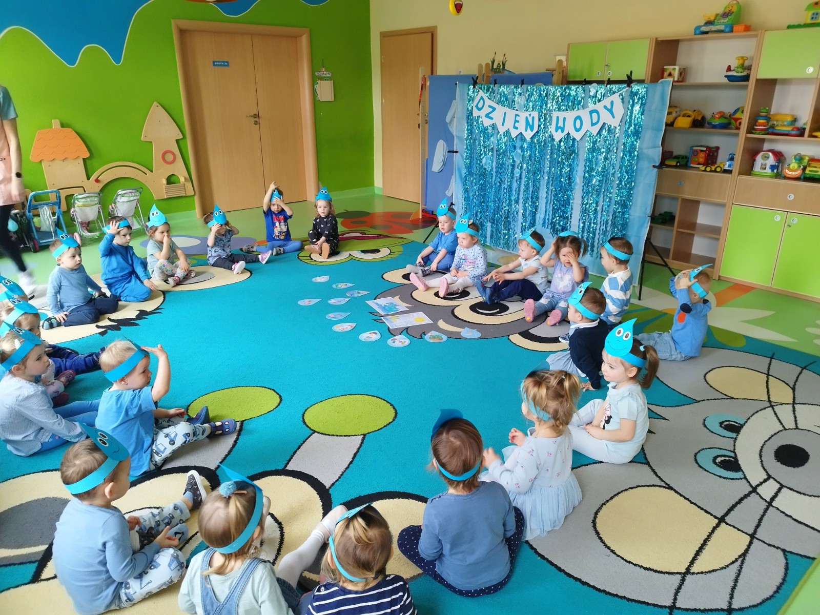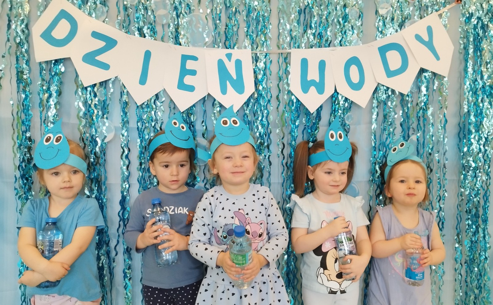 Tego dnia dzieci wystroiły się w kolory wody -we wszystkie jej odcienie, a także przyniosły butelkę swojej ulubionej wody. Podczas zajęć tematycznych żłobkowicze dowiedzieli się do czego wykorzystujemy wodę - do picia, gotowania, mycia, prania i sprzątania, gaszenia pożaru czy podlewania. Poznali również zasady oszczędzania wody i dbania o jej czystość, gdyż jest to bardzo ważne dla całej planety i przyszłych pokoleń.