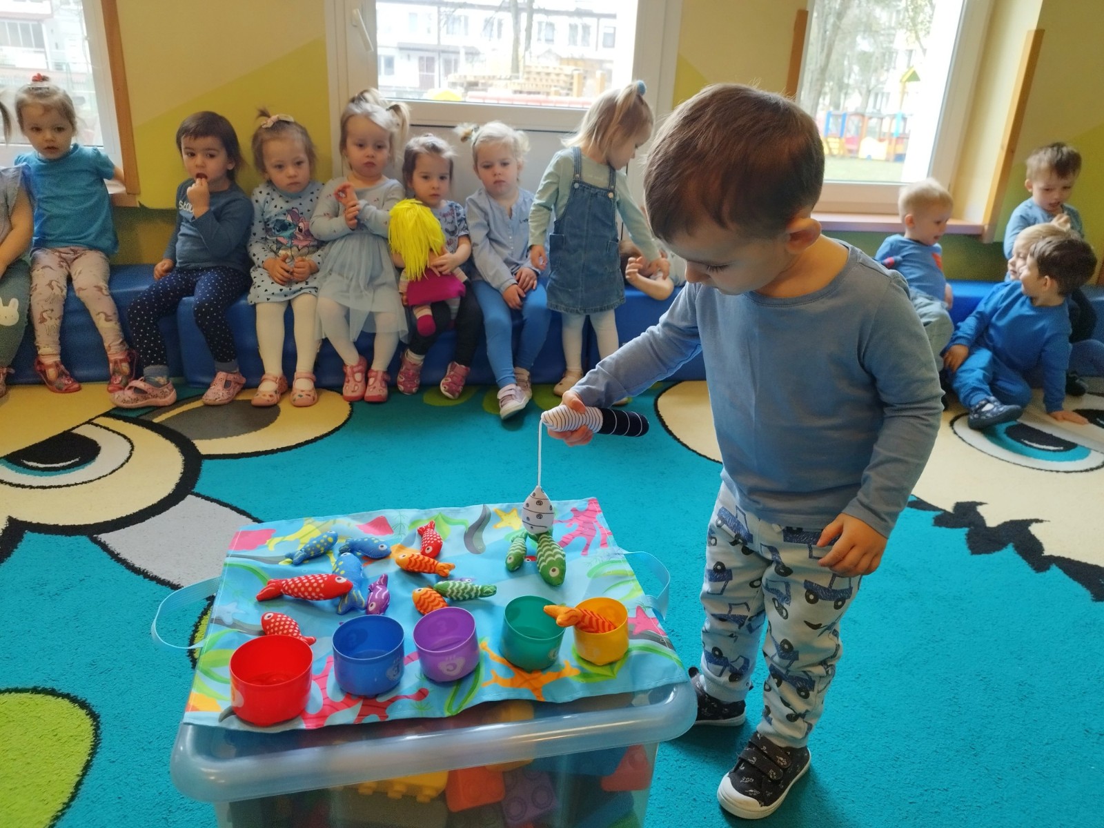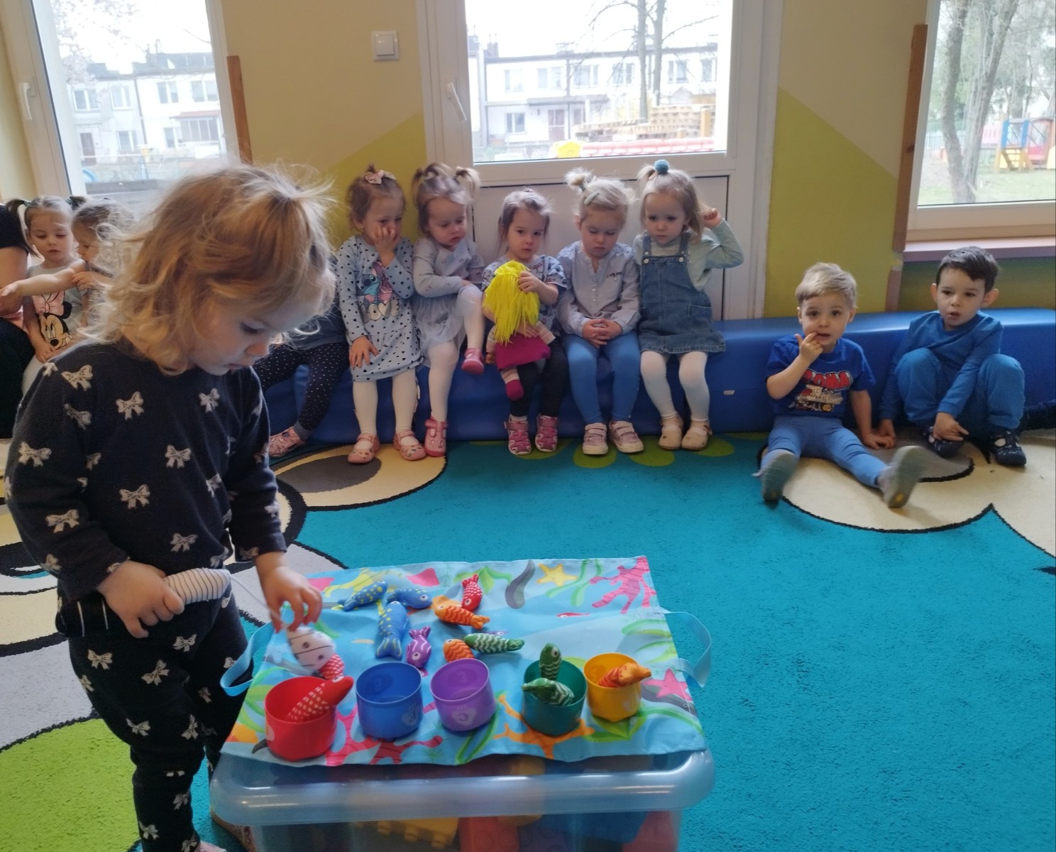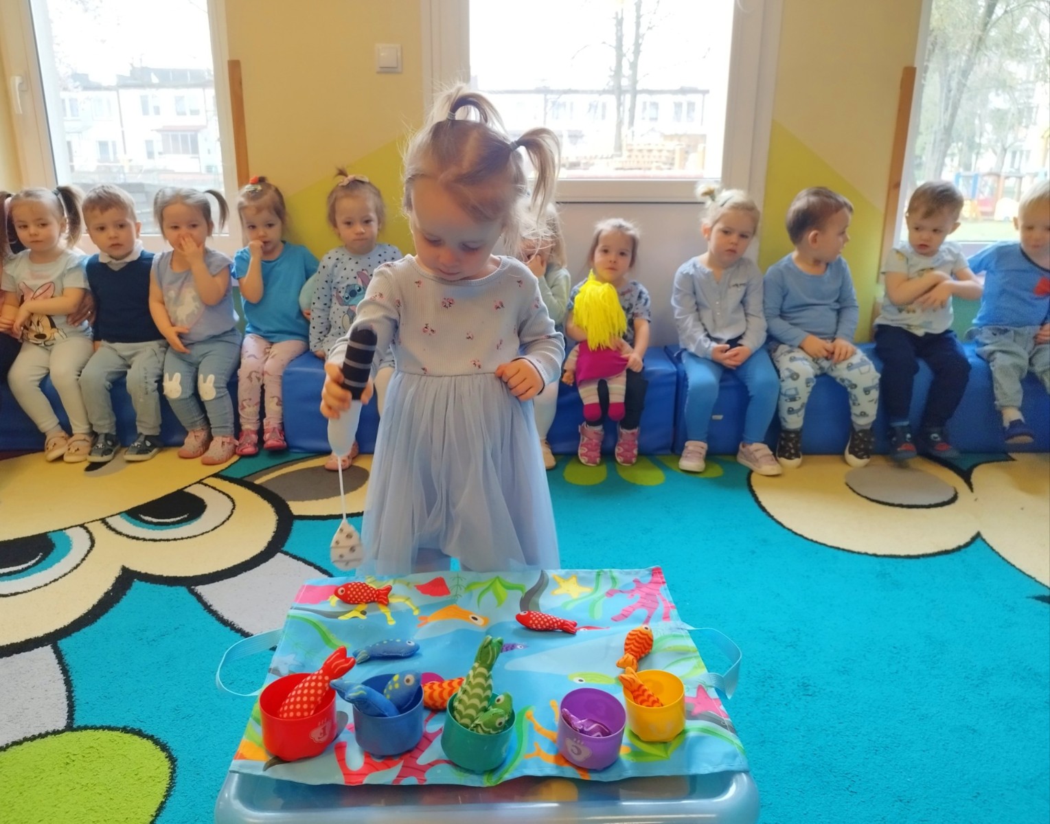 Tego dnia dzieci wystroiły się w kolory wody -we wszystkie jej odcienie, a także przyniosły butelkę swojej ulubionej wody. Podczas zajęć tematycznych żłobkowicze dowiedzieli się do czego wykorzystujemy wodę - do picia, gotowania, mycia, prania i sprzątania, gaszenia pożaru czy podlewania. Poznali również zasady oszczędzania wody i dbania o jej czystość, gdyż jest to bardzo ważne dla całej planety i przyszłych pokoleń.