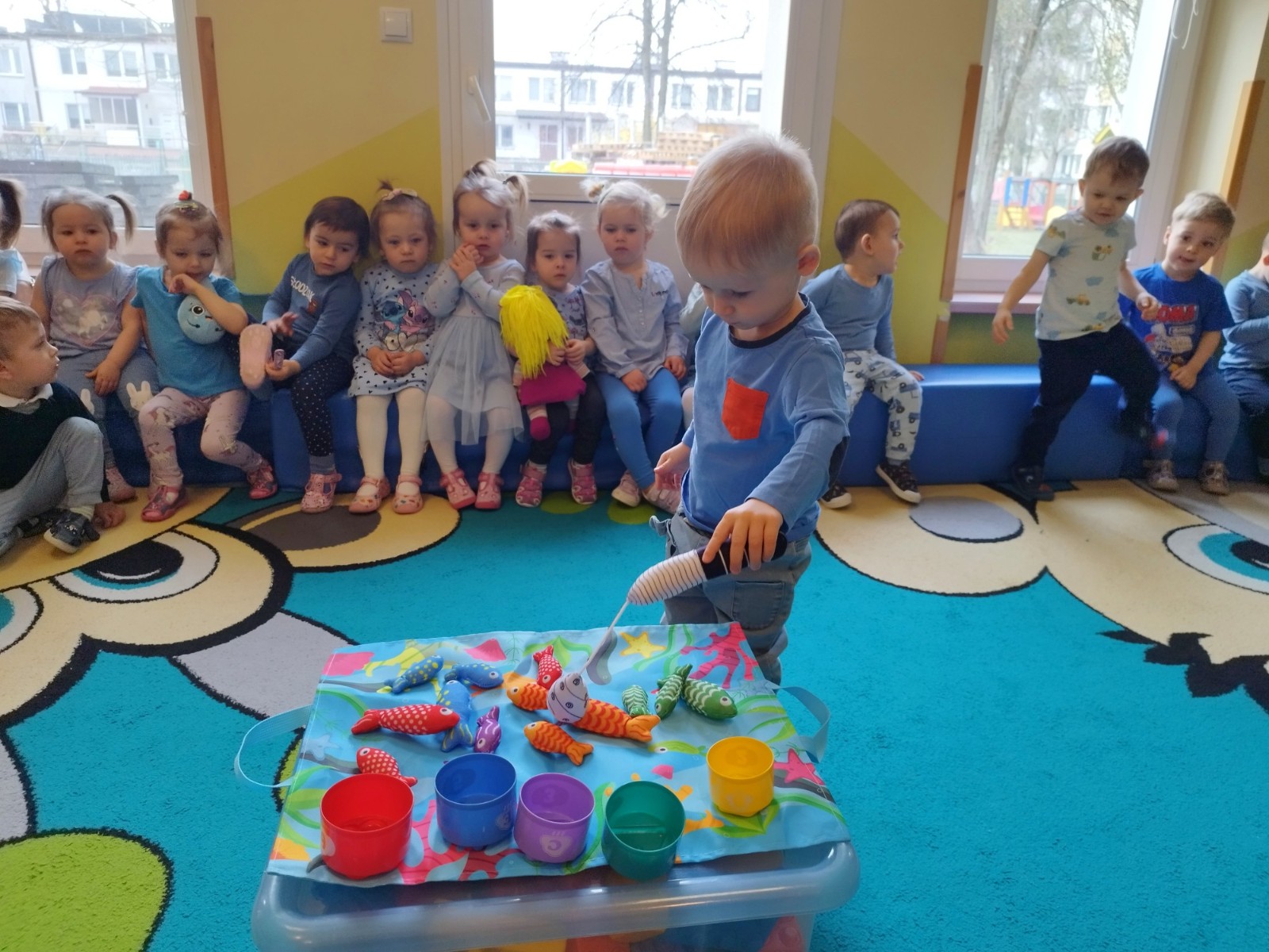 IZdjęcie przedstawia dzieci podczas zajęć tematycznych z okazji Dnia Wody