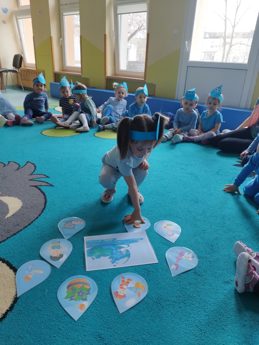 Zdjęcie przedstawia dzieci podczas zajęć tematycznych z okazji Dnia Wody