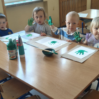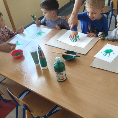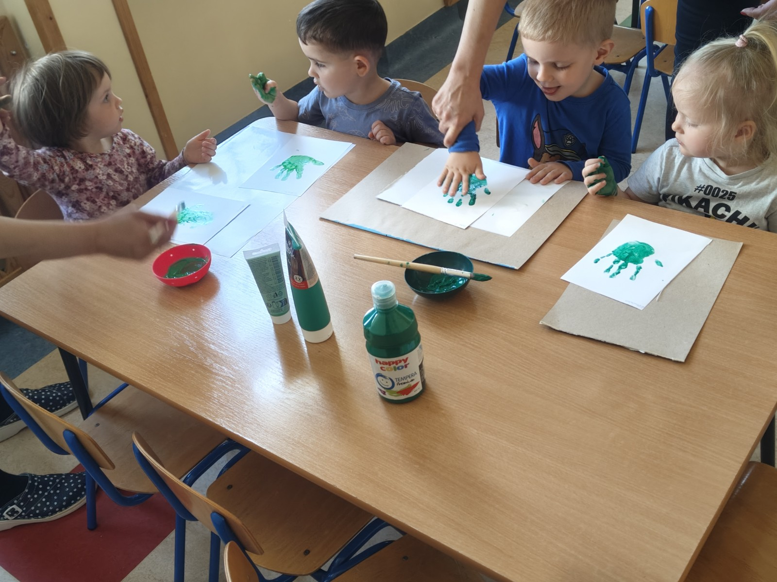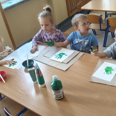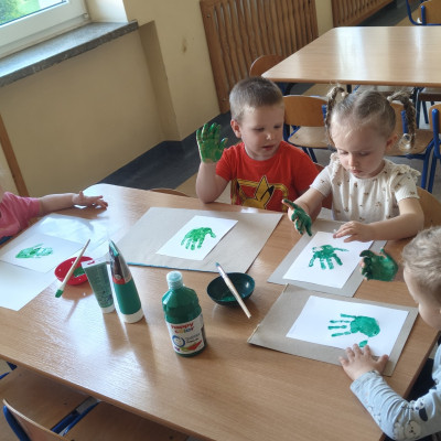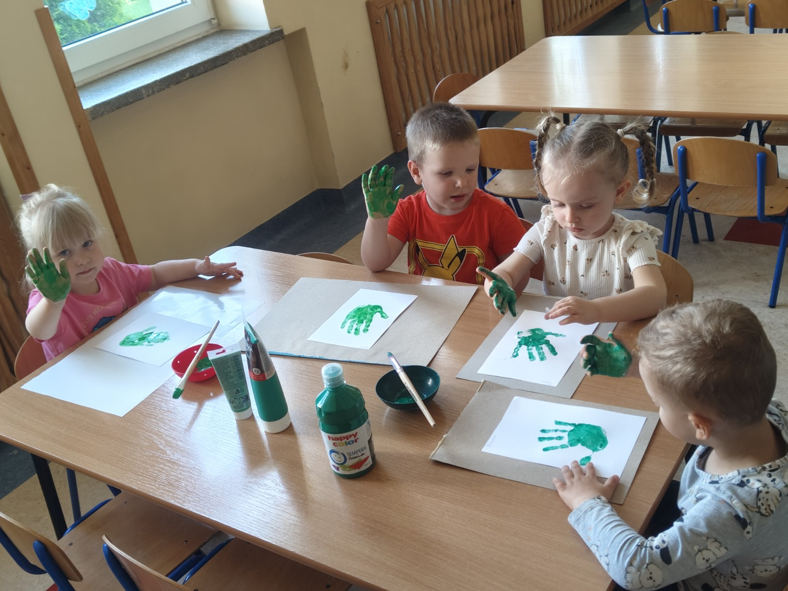 Zdjęcie przedstawia dzieci wykonujące pracę plastyczną
