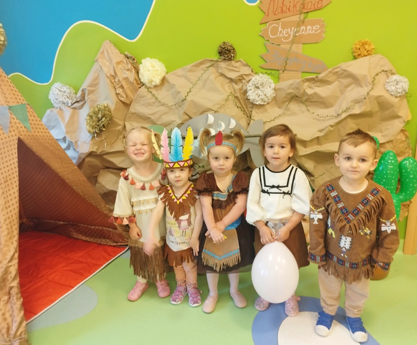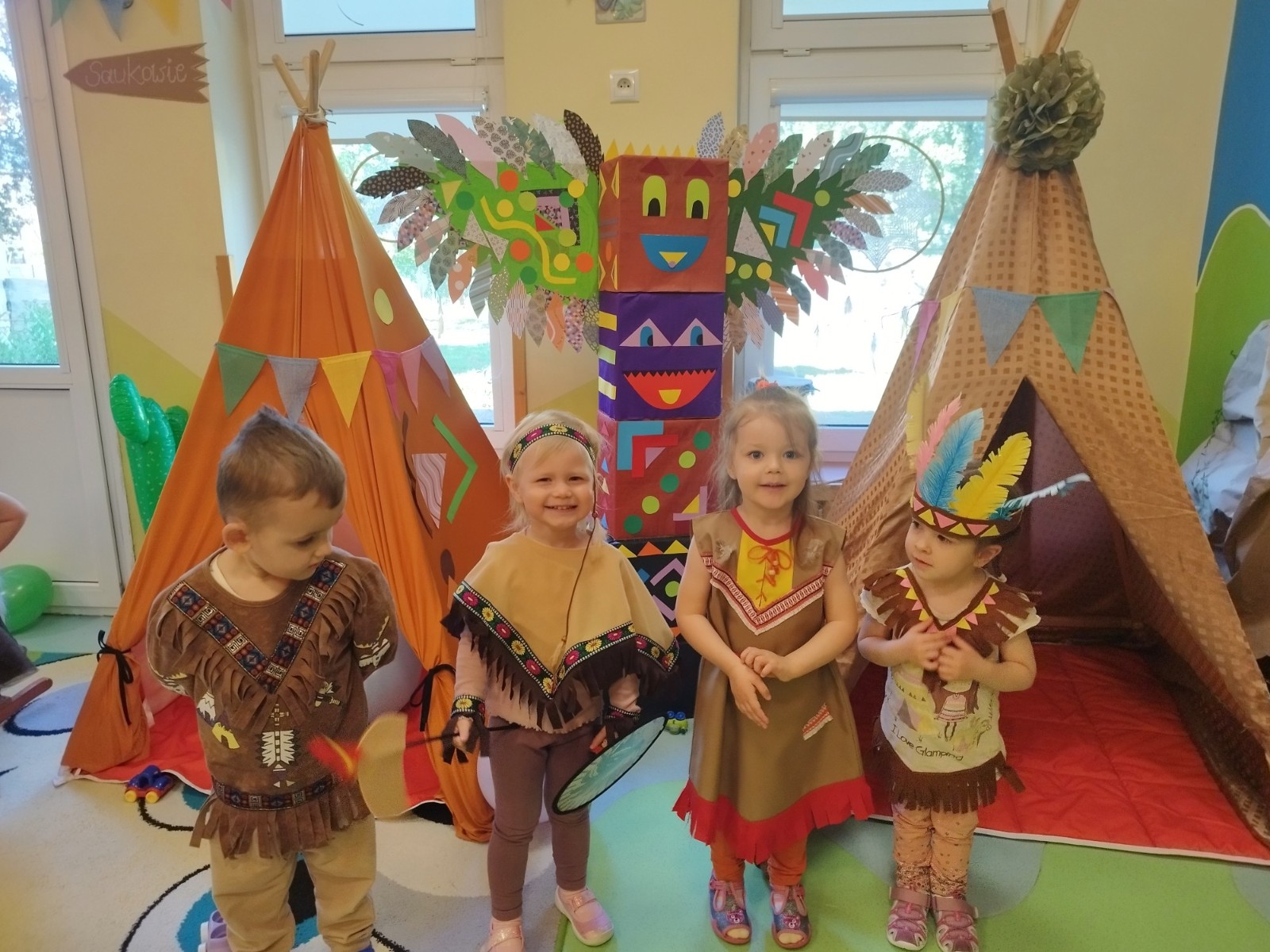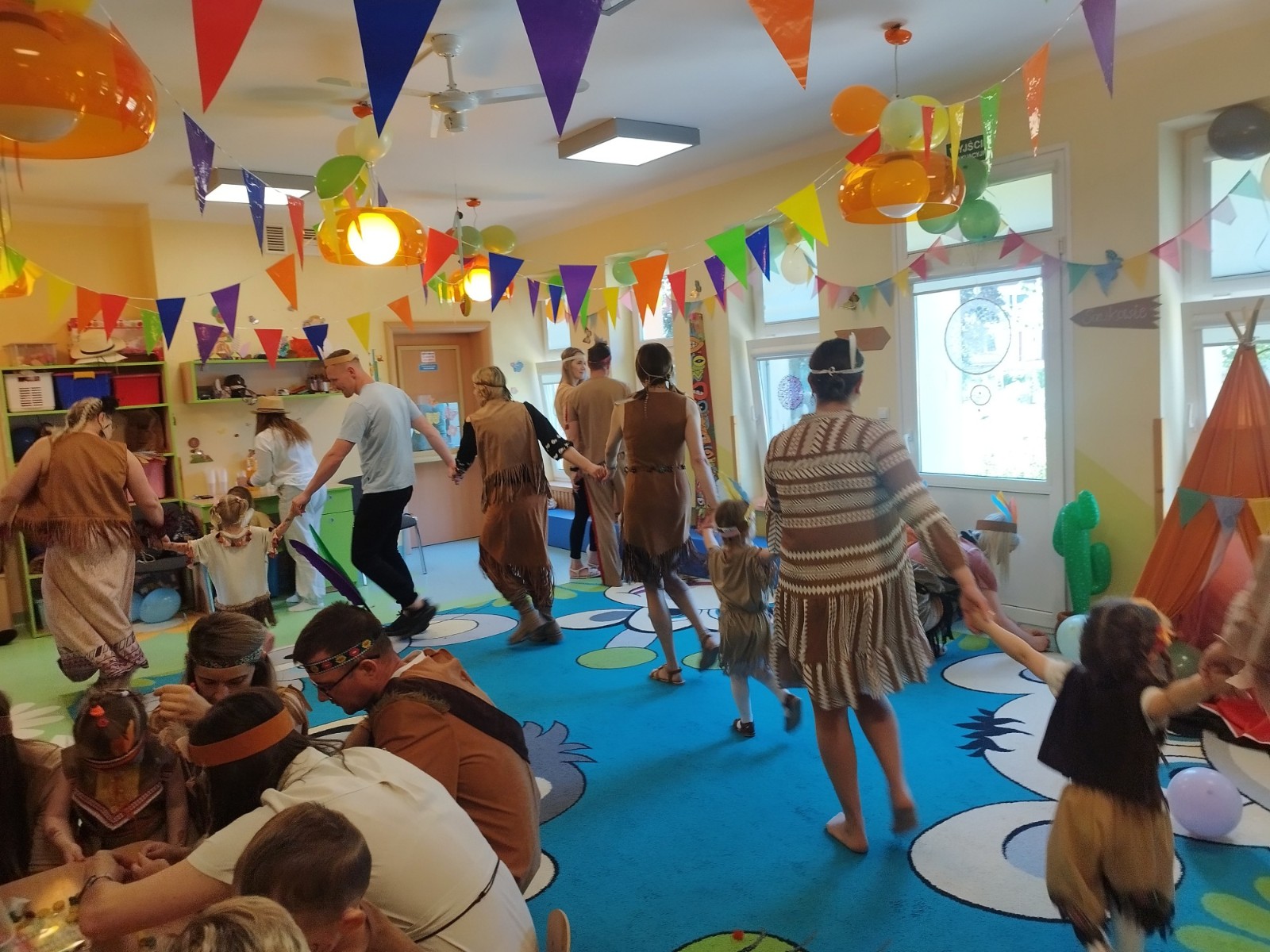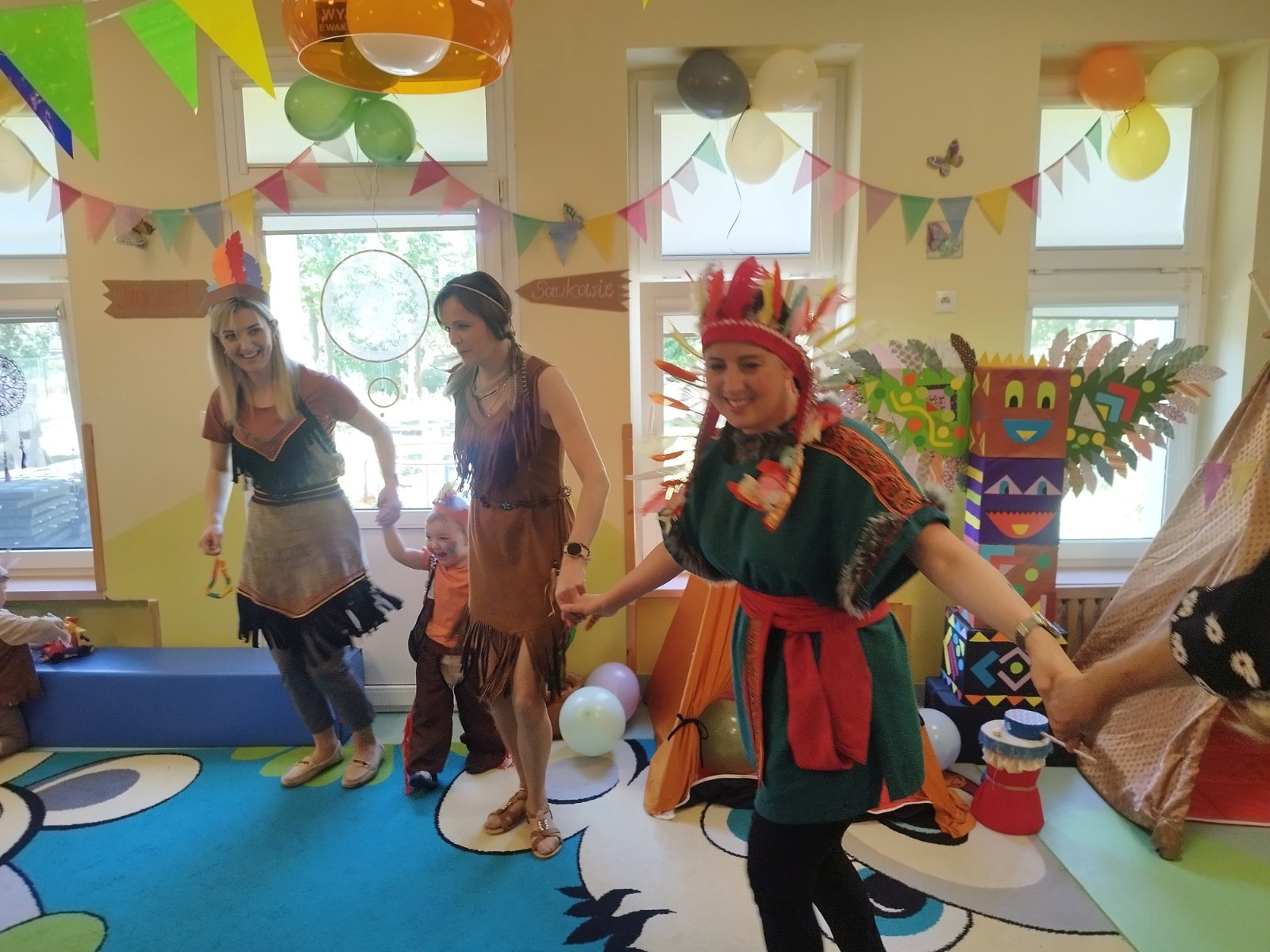 Dzień Dziecka to wielkie święto wszystkich dzieci i tych małych i tych dużych. Z tej okazji w grupie Muchomorki odbyła się wielka, wspaniała impreza, której tematem przewodnim była Indiańska wioska. Tego dnia wszyscy przenieśliśmy się do niezwykłego świata indiańskich plemion. Pośród tańców, dzieci mogły brać udział w różnych przygotowanych atrakcjach. We wspólnej zabawie wzięli udział rodzice naszych milusińskich, którzy także tego wyjątkowego dnia mogli poczuć się jak dzieci, bawiąc się wspólnie i zakładając stroje tematyczne. W końcu w Dzień Dziecka wszyscy jesteśmy dziećmi. To był dzień pełen wesołej zabawy, muzyki i śmiechu.