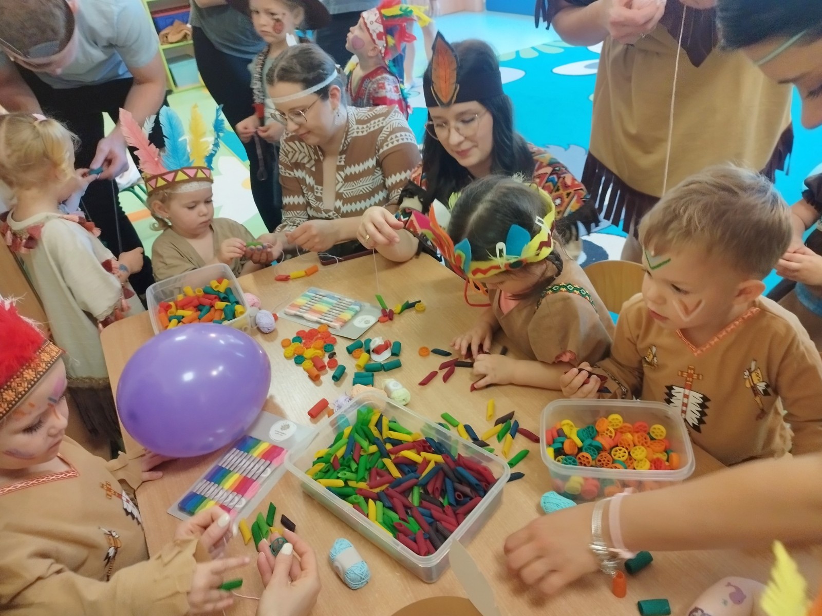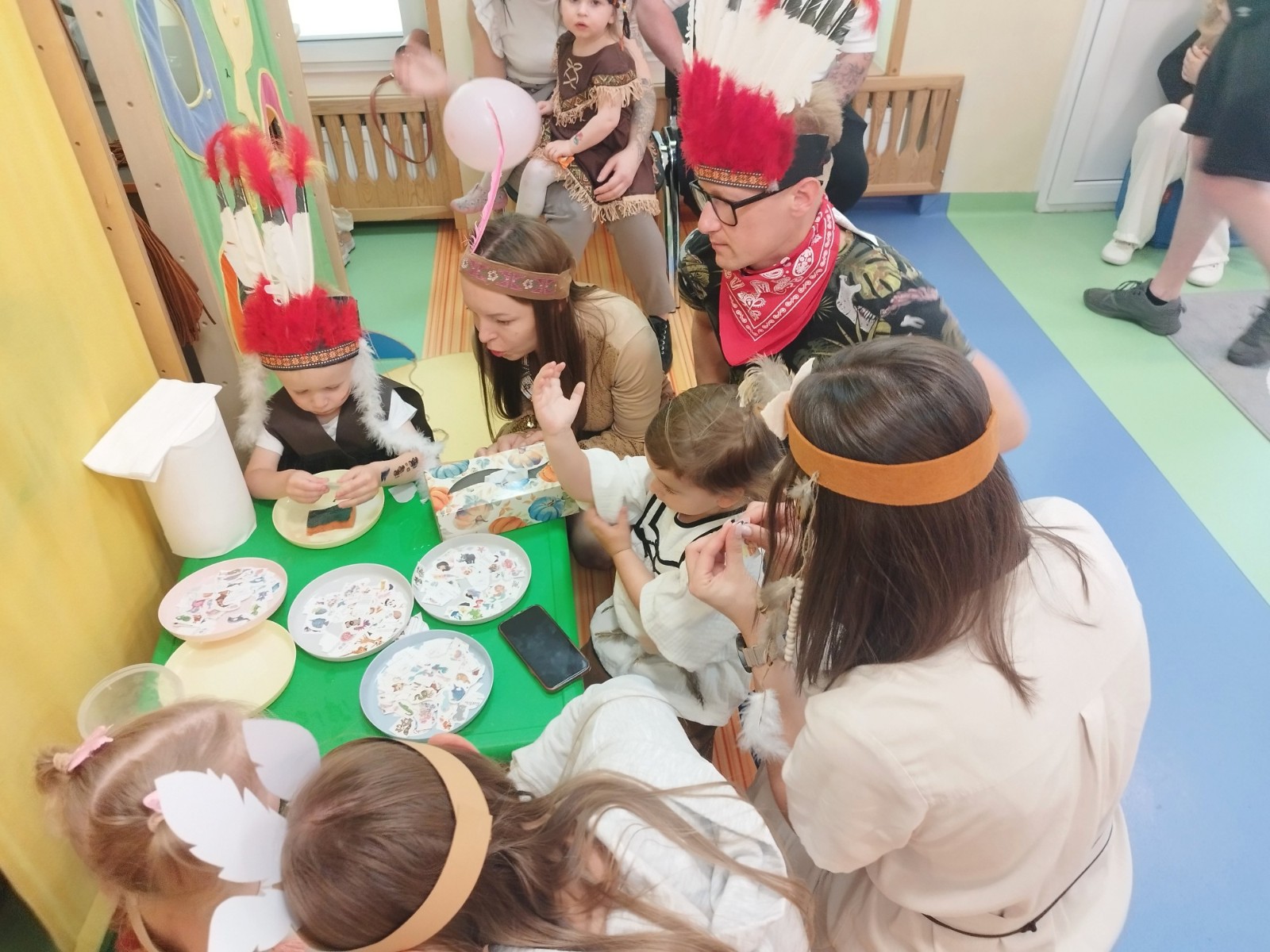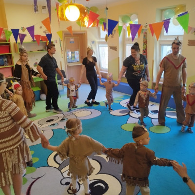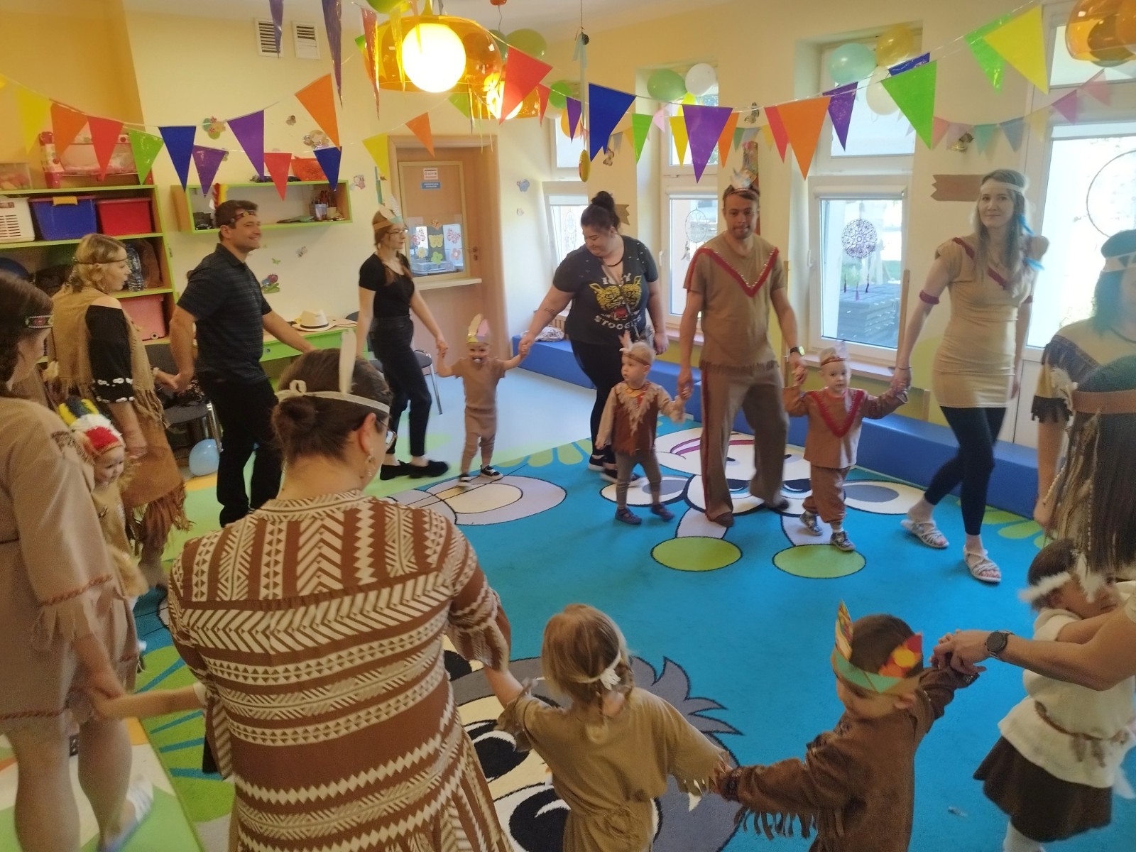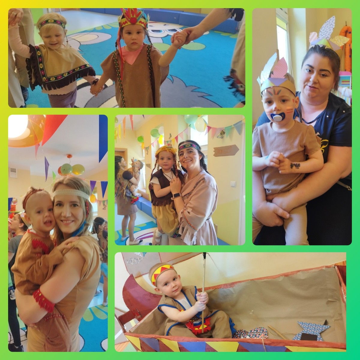 Dzień Dziecka to wielkie święto wszystkich dzieci i tych małych i tych dużych. Z tej okazji w grupie Muchomorki odbyła się wielka, wspaniała impreza, której tematem przewodnim była Indiańska wioska. Tego dnia wszyscy przenieśliśmy się do niezwykłego świata indiańskich plemion. Pośród tańców, dzieci mogły brać udział w różnych przygotowanych atrakcjach. We wspólnej zabawie wzięli udział rodzice naszych milusińskich, którzy także tego wyjątkowego dnia mogli poczuć się jak dzieci, bawiąc się wspólnie i zakładając stroje tematyczne. W końcu w Dzień Dziecka wszyscy jesteśmy dziećmi. To był dzień pełen wesołej zabawy, muzyki i śmiechu.