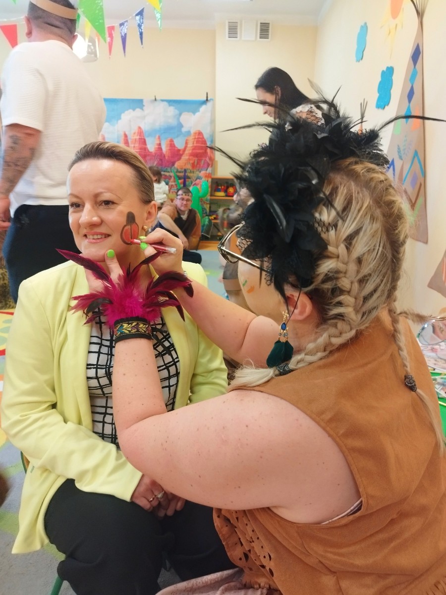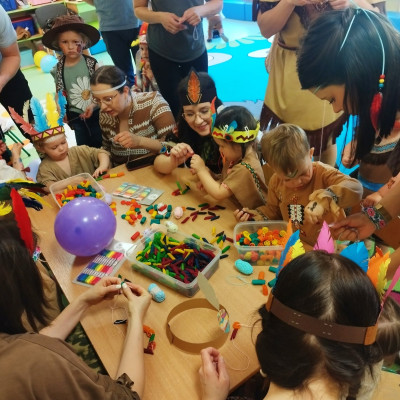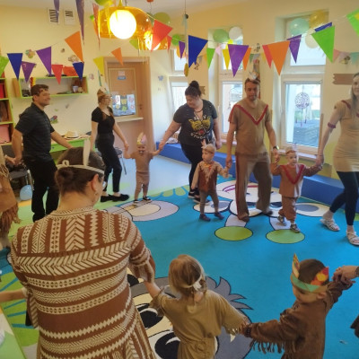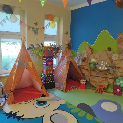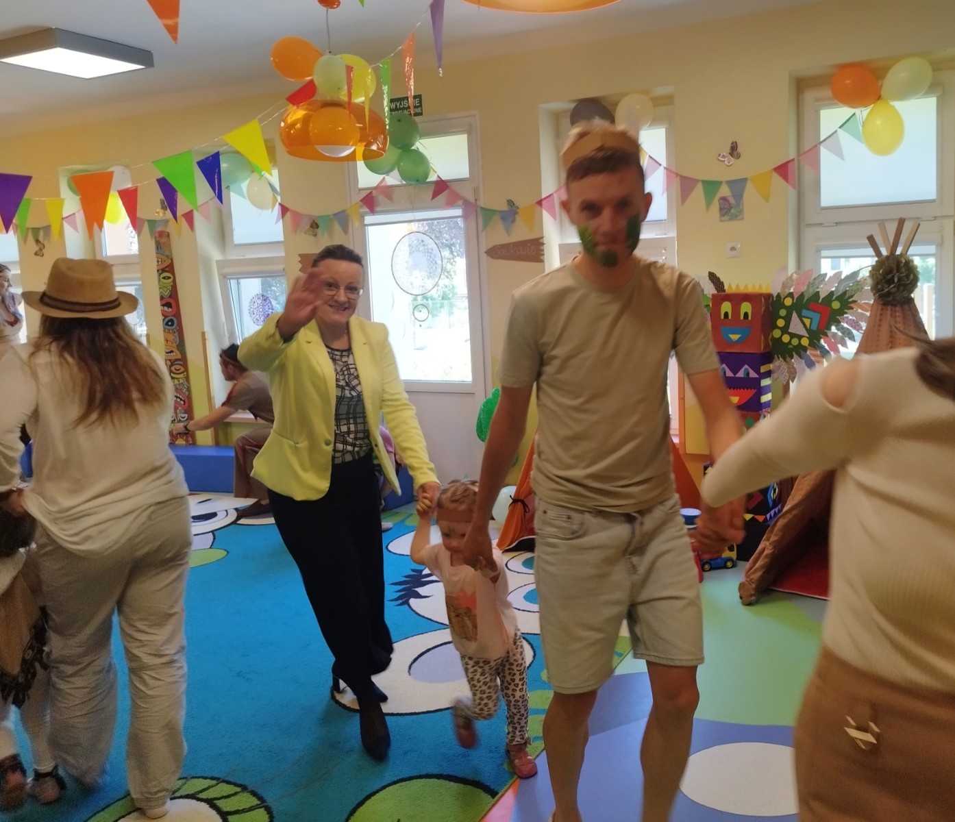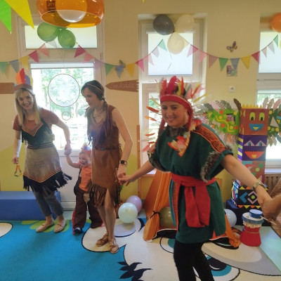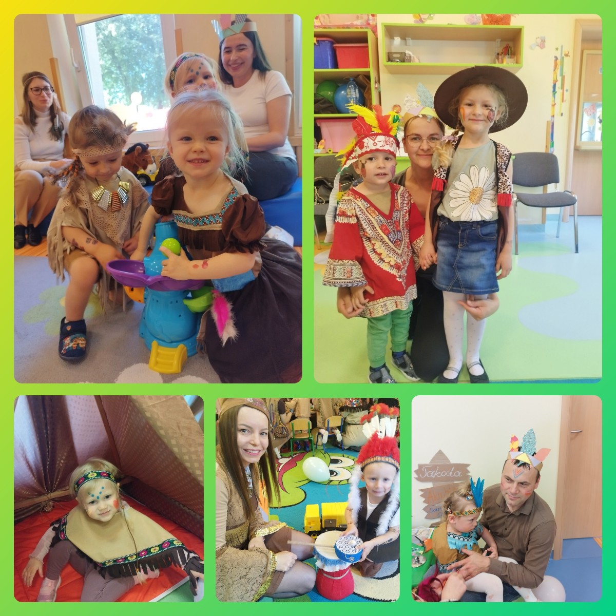 Dzień Dziecka to wielkie święto wszystkich dzieci i tych małych i tych dużych. Z tej okazji w grupie Muchomorki odbyła się wielka, wspaniała impreza, której tematem przewodnim była Indiańska wioska. Tego dnia wszyscy przenieśliśmy się do niezwykłego świata indiańskich plemion. Pośród tańców, dzieci mogły brać udział w różnych przygotowanych atrakcjach. We wspólnej zabawie wzięli udział rodzice naszych milusińskich, którzy także tego wyjątkowego dnia mogli poczuć się jak dzieci, bawiąc się wspólnie i zakładając stroje tematyczne. W końcu w Dzień Dziecka wszyscy jesteśmy dziećmi. To był dzień pełen wesołej zabawy, muzyki i śmiechu.