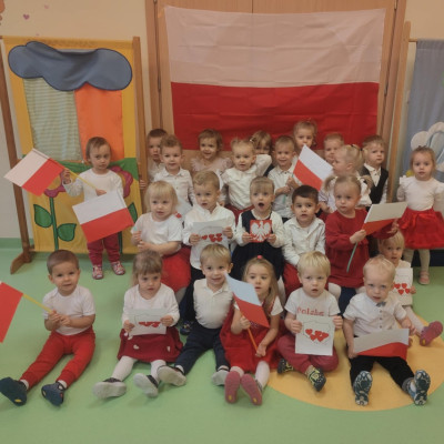 W naszym żłobku od najmłodszych lat uczymy dzieci patriotyzmu, przywiązana do Ojczyzny, wspieramy szacunek dla polskich symboli. Wszystkie dzieci uroczyście ubrane świętowały ten wyjątkowy dla Nas - Polaków dzień.