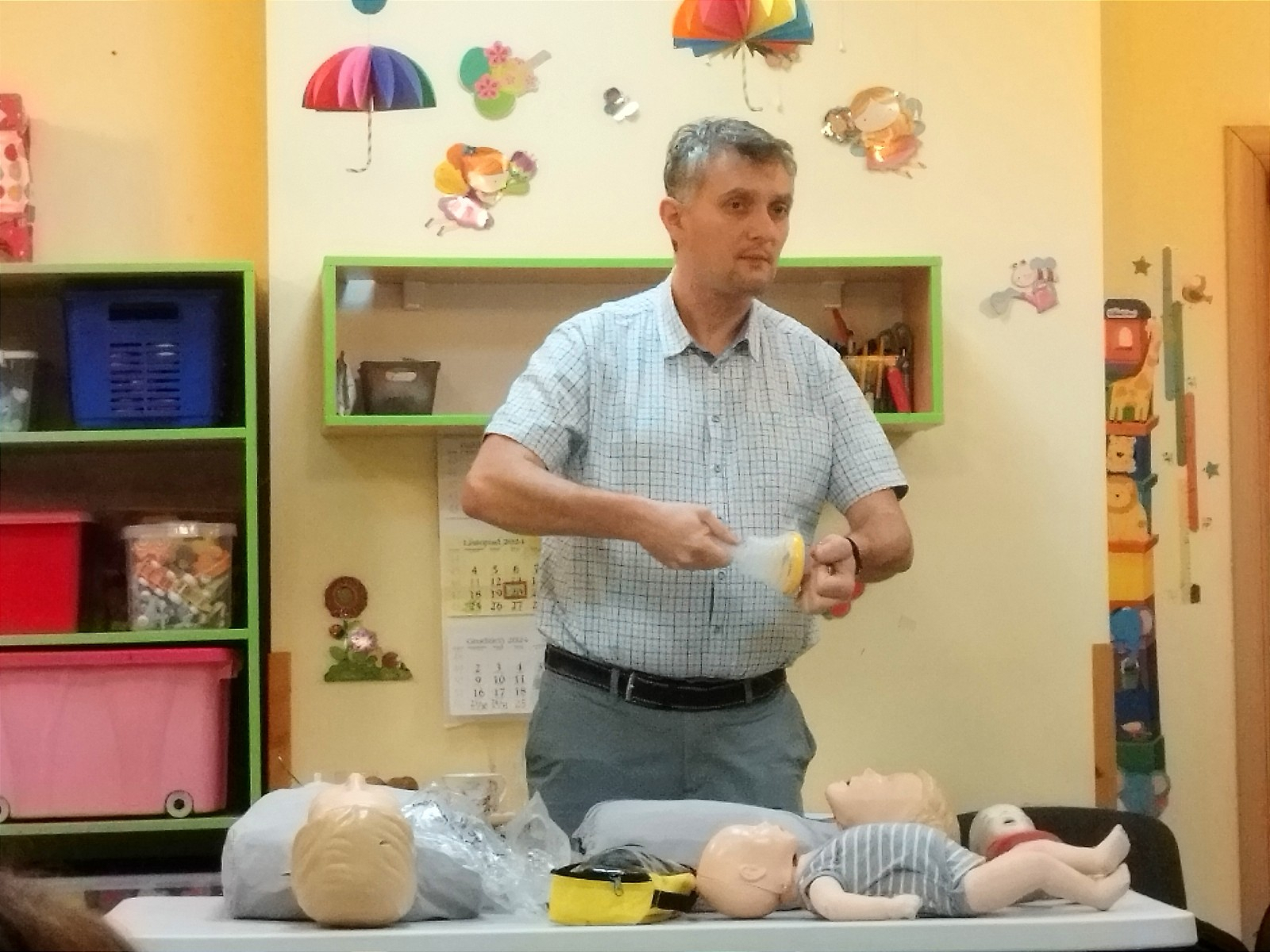 W ostatnim czasie w żłobkach odbywały się szkolenia przypominające z zakresu pierwszej pomocy, mające na celu nauczenie naszego personelu umiejętności niezbędnych do działania w sytuacji awaryjnej z udziałem dzieci i dorosłych. Szczególny nacisk był kładziony na umiejętność posługiwania się urządzeniem LiveVac, w które wyposażone są wszystkie nasze placówki. Szkolenie prowadził doświadczony instruktor- lekarz, anestezjolog pracujący na oddziale anestezjologii i intensywnej terapii w jednym ze szpitali, w Krakowie.