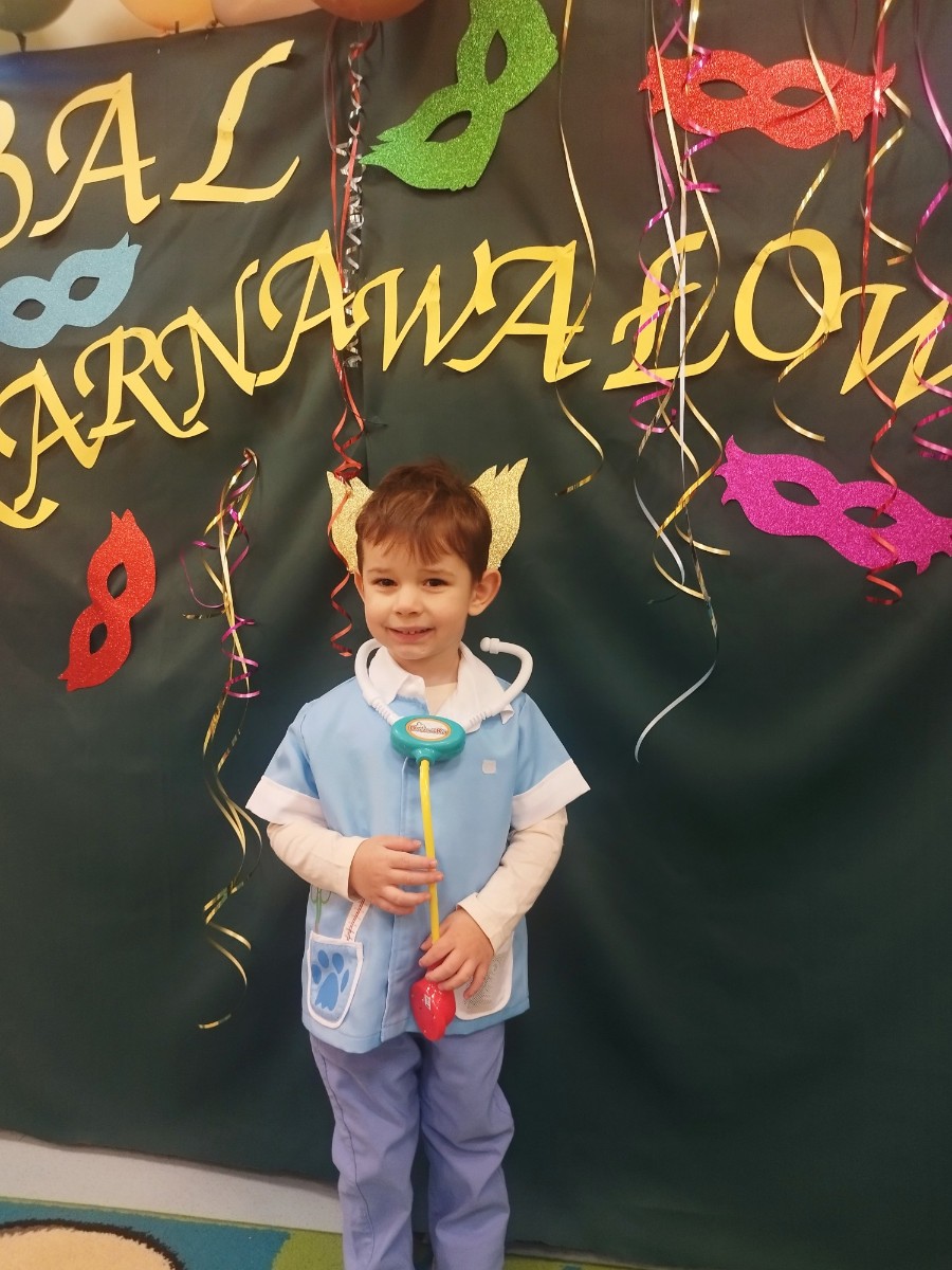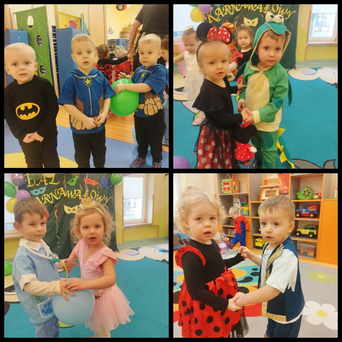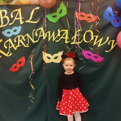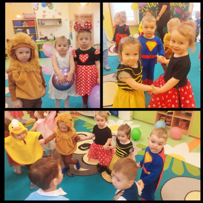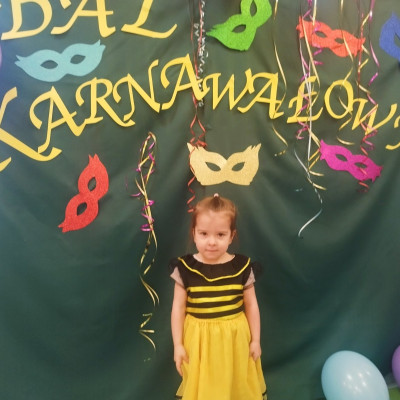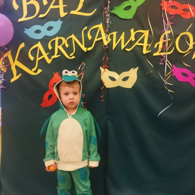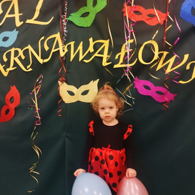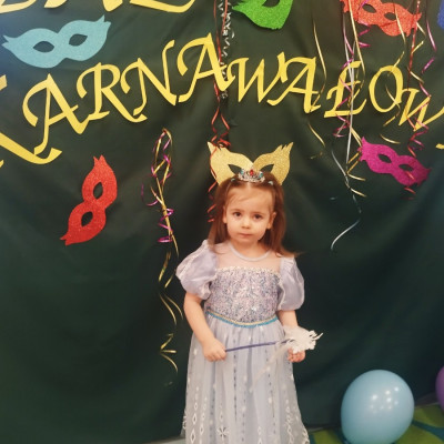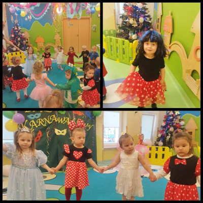 Zdjęcie przedstawia dzieci bawiące się na balu karnawałowym