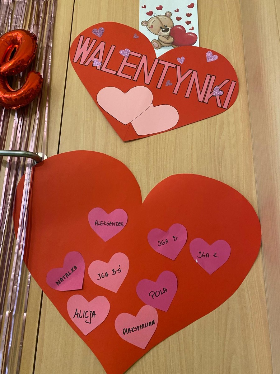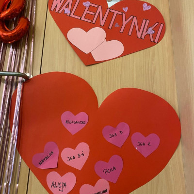 Zdjęcie przedstawia dzieci świętujące Walentynki