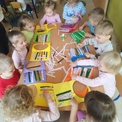 Poznaliśmy także nowy wierszyk pt. " Wielkanocny koszyczek" oraz wykonaliśmy pracę plastyczną - wielkanocną pisankę.