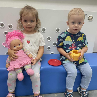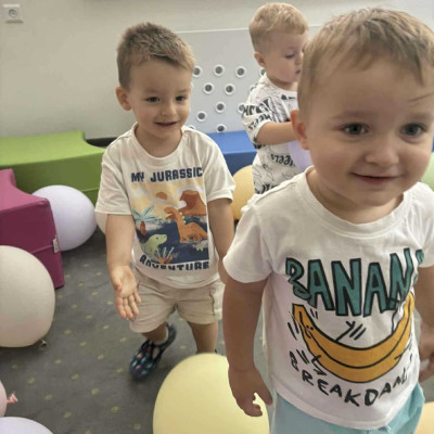 Zdjęcie przedstawia dzieci podczas zabaw w żłobku w czasie adaptacji