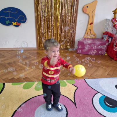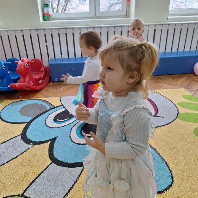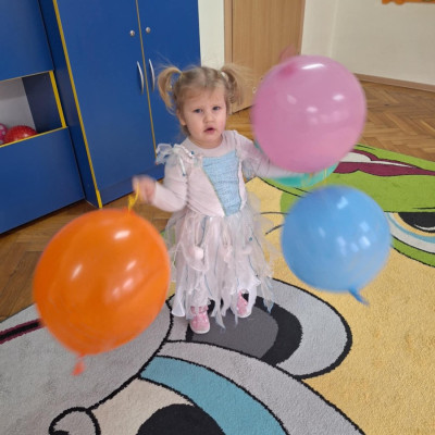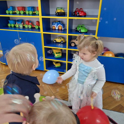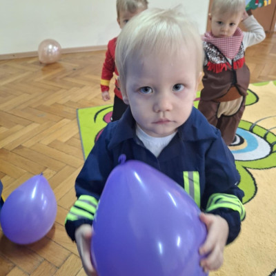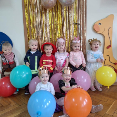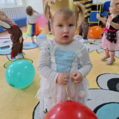 Zdjęcia przedstawiają dzieci podczas balu karnawałowego.