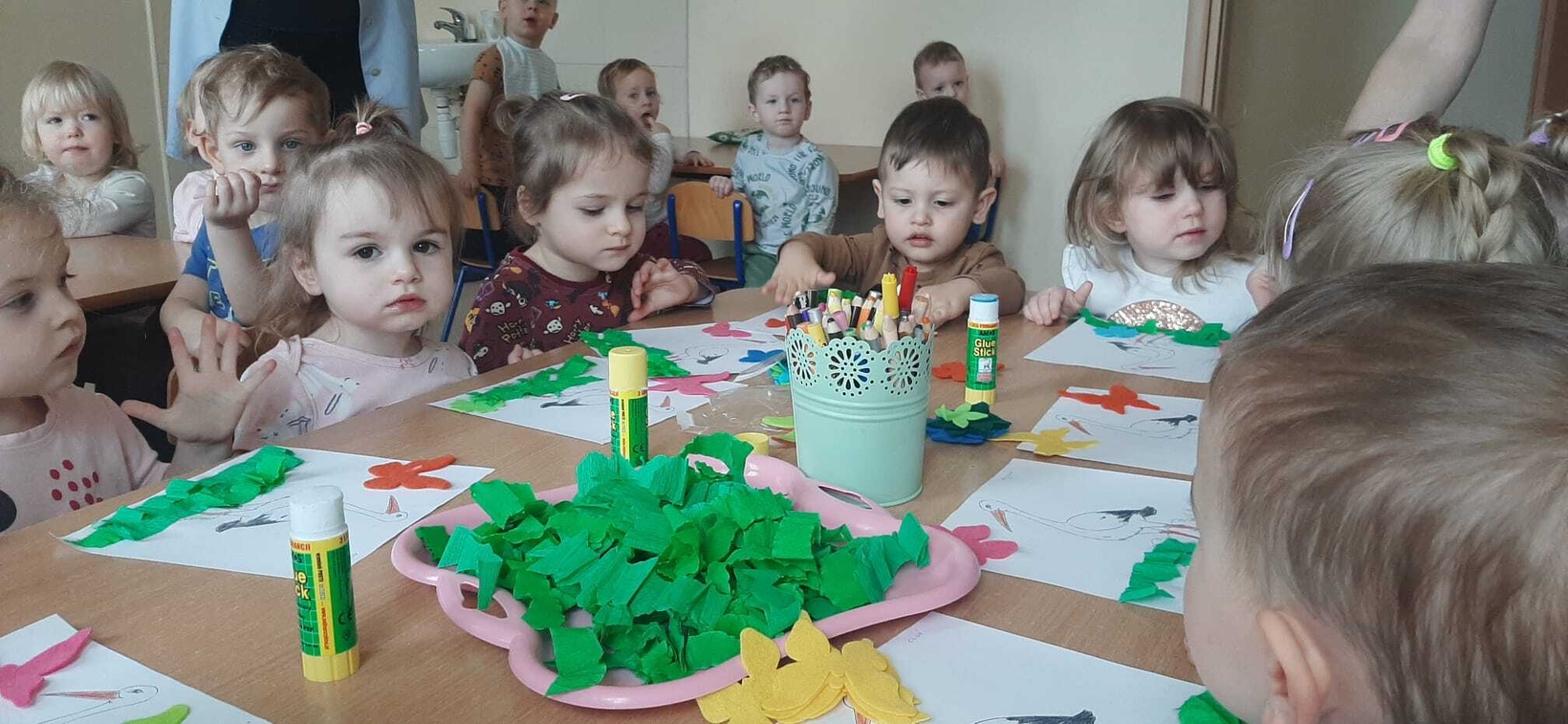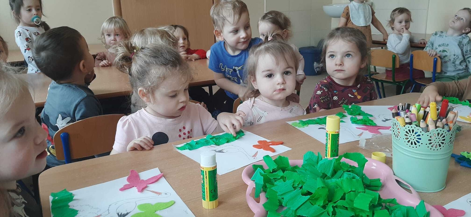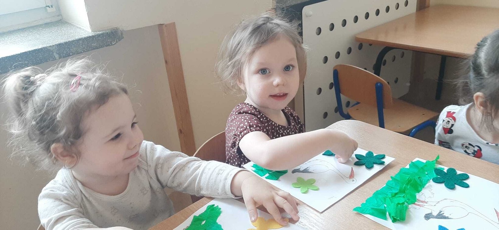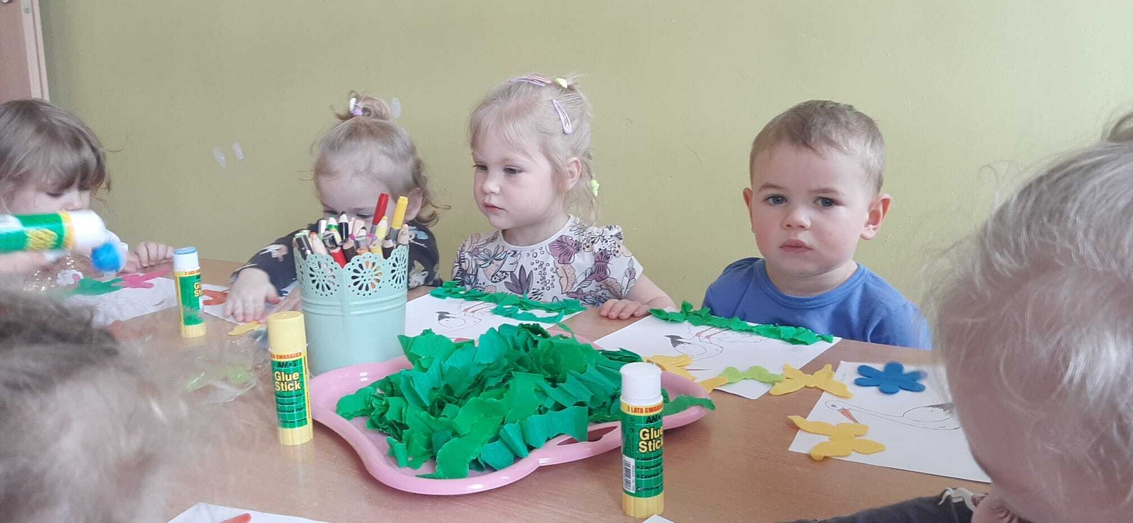 Nadeszła już długo wyczekiwana wiosna ,wszystko budzi się do życia. A jak wszyscy wiemy przylot bocianów jest jednym ze zwiastunów nadchodzącej pory roku.Dlatego nasze muchomorki wykonywały dziś pracę plastyczne ,kolorowały kredkami nogi , dziób i skrzydło bociana oraz naklejaly trawkę,kolorowe motylki i kwiatuszki.