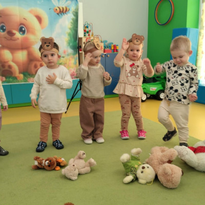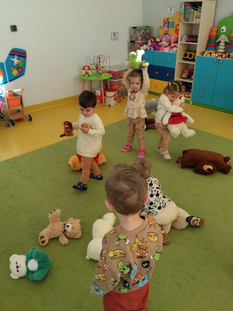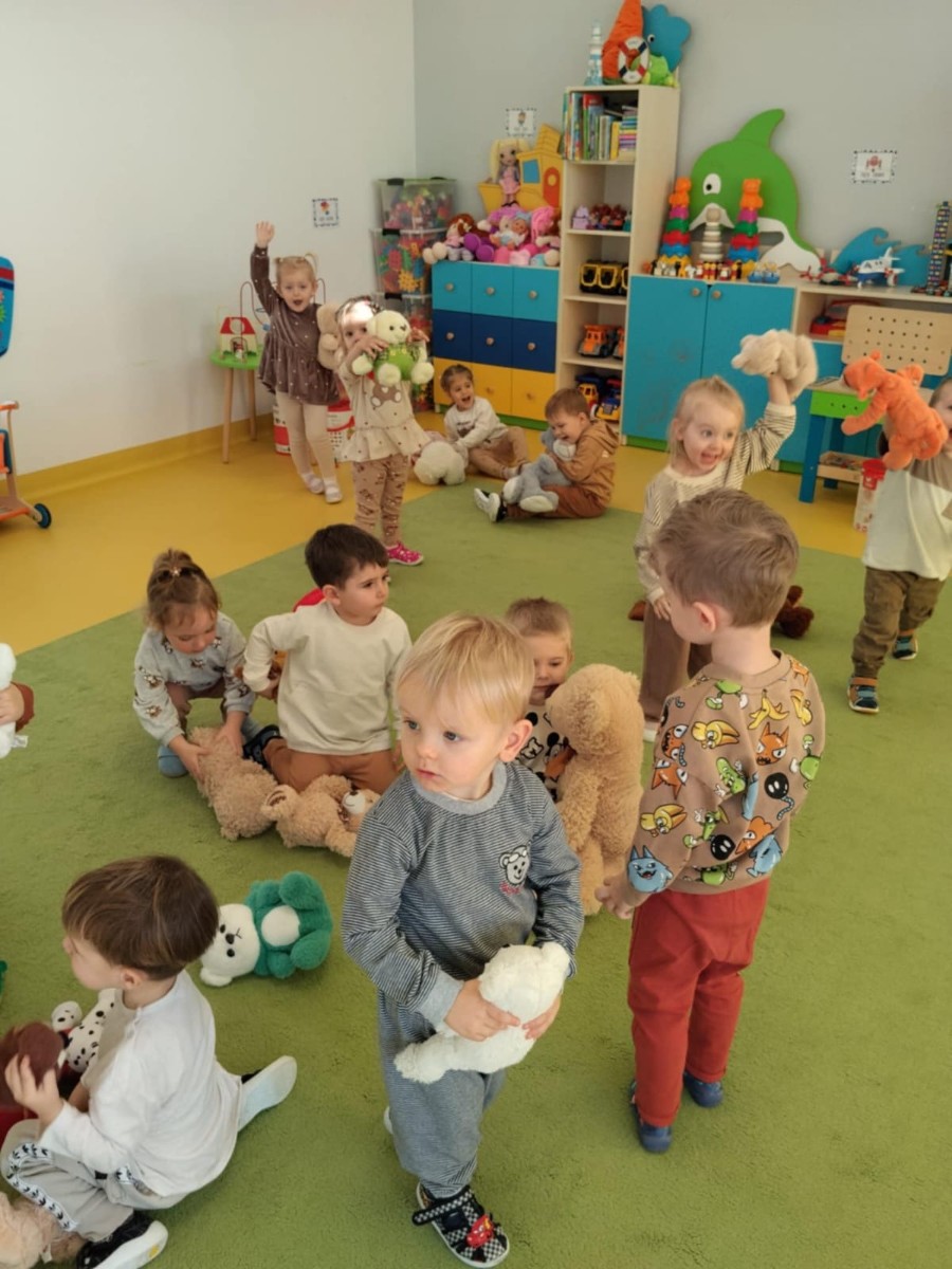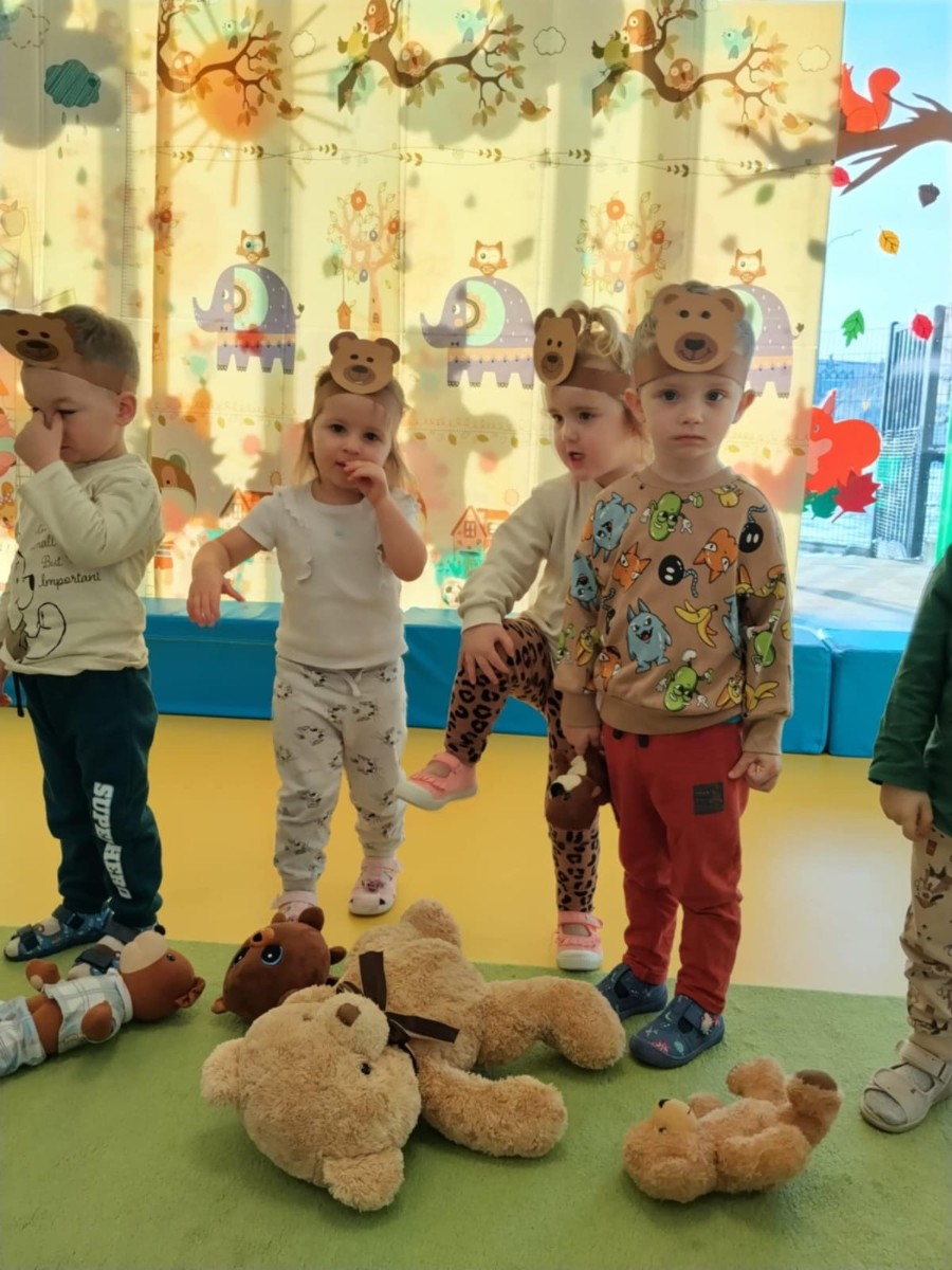 Zdjęcia przedstawiają dzieci świętujące Dzień Pluszowego Misia.