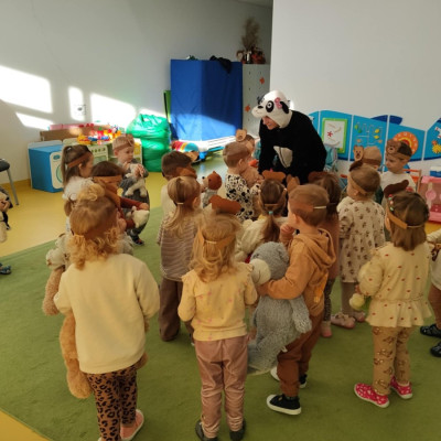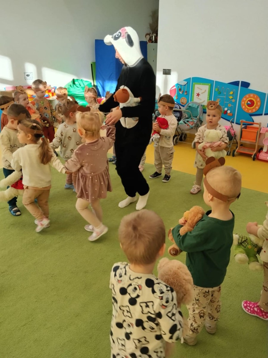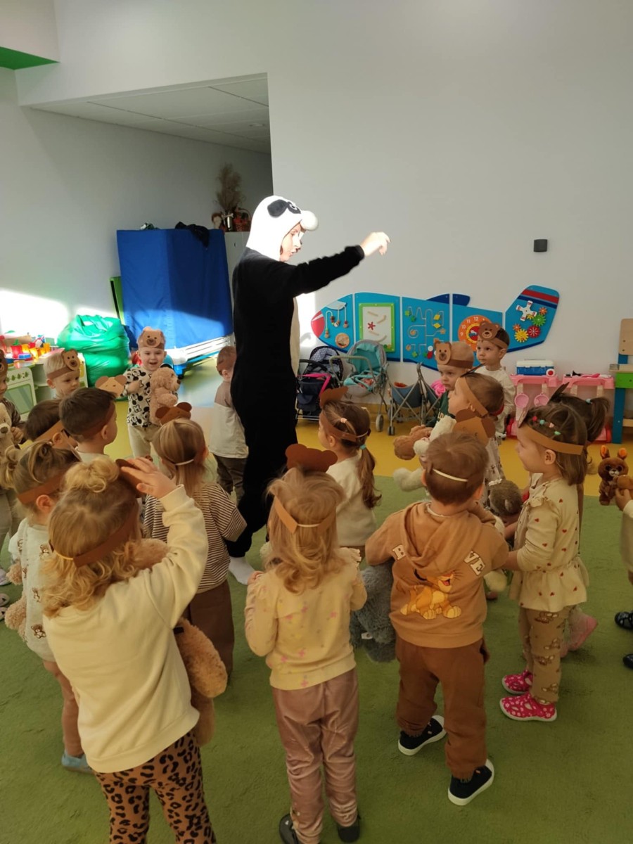 Z okazji Międzynarodowego Dnia PLUSZOWEGO MISIA do grupy Rybek zawitała Misia Pandzia 🐼 W tym dniu każde dziecko przyniosło swojego ukochanego misia by wspólnie świętować te radosne chwile . Na dzieci i misie czekało wiele atrakcji ; bawiły się przy misiowych piosenkach, uczestniczyły w zabawach i sesji zdjęciowej . Dzieci również wykonały pracę plastyczne pt.