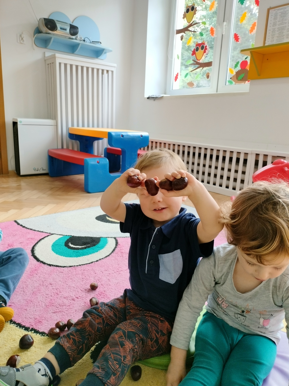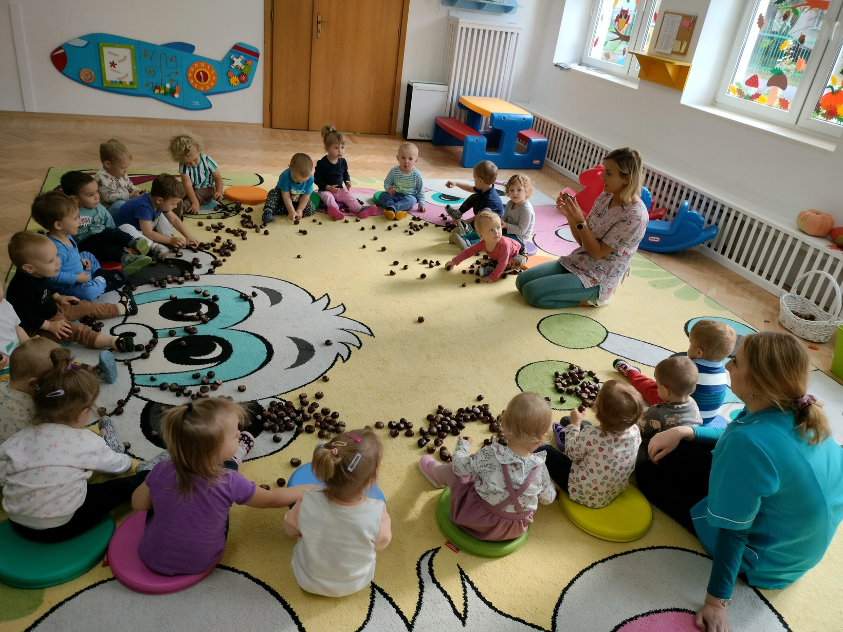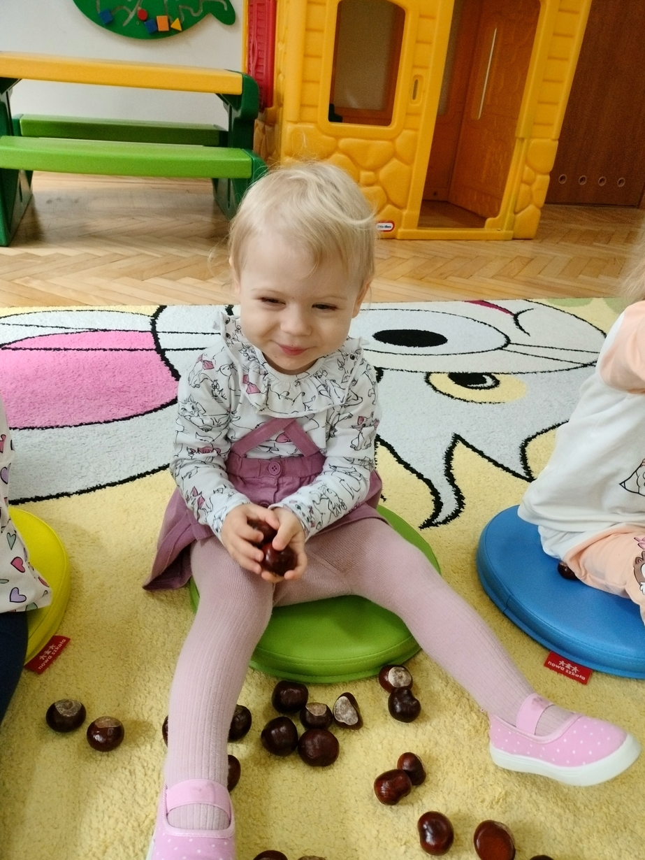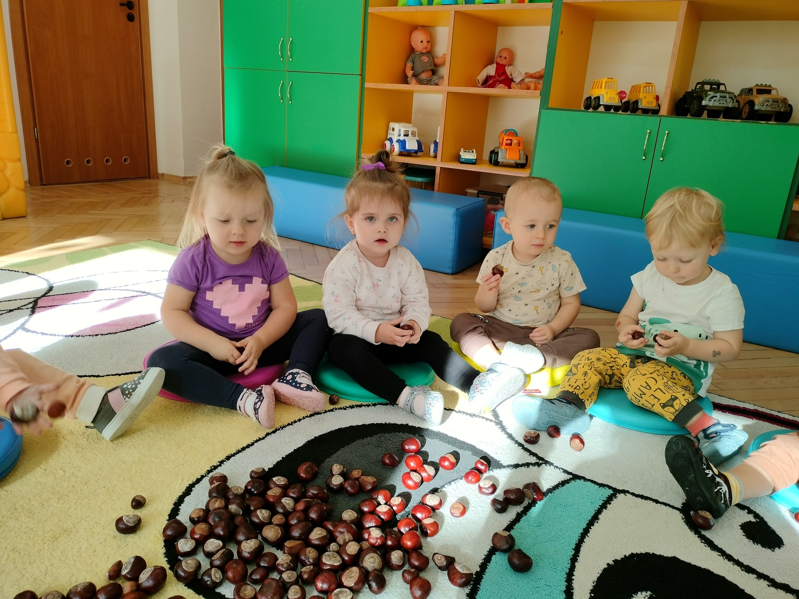 U Misiów jesień zagościła już na dobre. W sali możemy znaleźć mnóstwo kolorowych liści??, kasztanów oraz innych darów jesieni, z którymi dzieci bawią się i uczą na przeróżne sposoby.